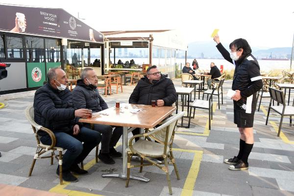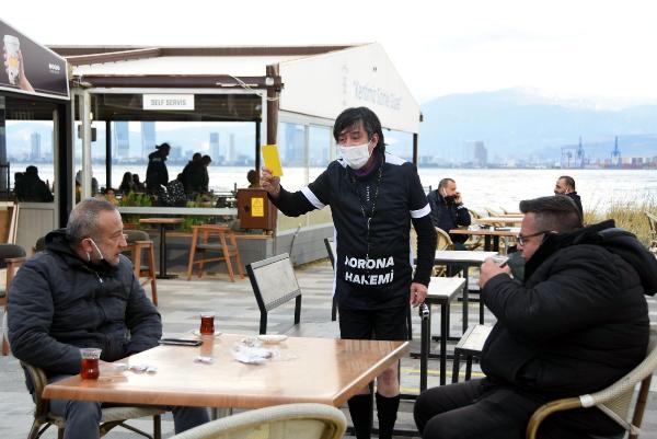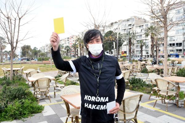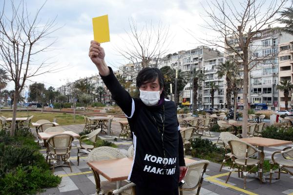 Karşıyaka ilçesinde Kent A.Ş.'ye bağlı Tersane, Denizkent, Gondol, Park, Dino ve Taypark adlı 6 kafe koronavirüs tedbirleri kapsamında alınan kurallara uygun kapılarını açtı. Pandemi sürecinin bitmediği ve devam ettiğini hatırlatmak için de ilginç bir yol bulundu. Haftanın 3 günü 'Korona Hakemi' uygulaması başlatıldı. Hakem kılığına giren Yeşilçam oyuncularından Osman Cavcı, maske ve mesafe kurallarına uymayan müşterileri düdük çalıp, sarı kart göstererek uyarıyor. Cebinden çıkarttığı mezura ile mesafeyi ölçüyor.