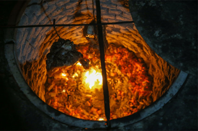 İş yerlerini gece saat 02.00'de açtıklarını, kuyuya attıkları meşe odunlarını tutuşturduktan sonra üzerine bakır kazanın içinde pirinçli su koyduklarını belirten Babaoğlu, ateşin kor haline gelmesi sonrası kazanı kuyunun içine indirdiklerini, kuzu etlerini de kancalarla üzerine astıklarını dile getirdi.