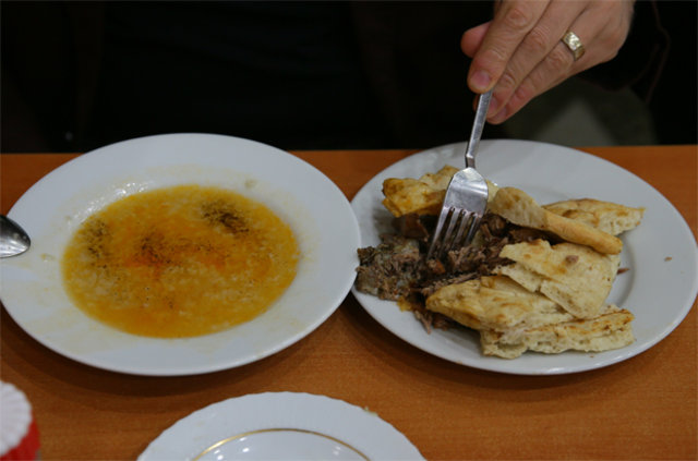 Sabah ezanıyla birlikte müşterilerin lokantaya gelmeye başladığını anlatan Babaoğlu, yine gelenek olarak çorba ve kebabın birlikte yendiğine işaret etti.