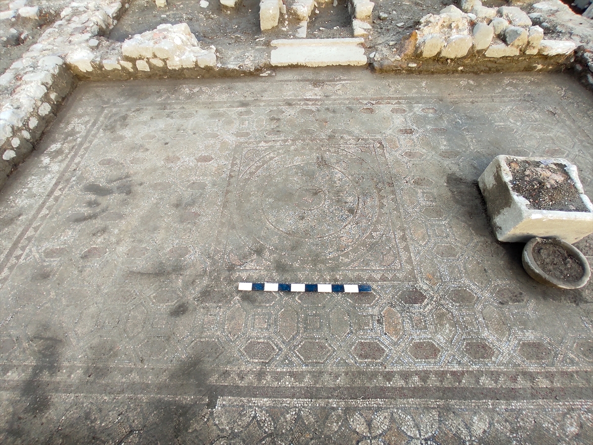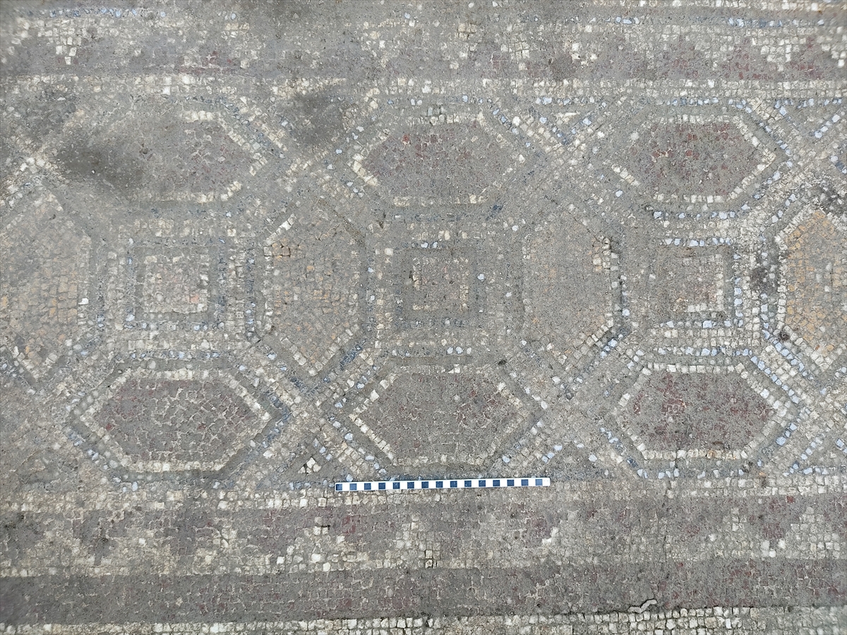 Geometrik desenlerle süslü mozaikler, Bergama Müze Müdürlüğü uzmanlarının ayrıntılı çalışmasının ardından koruma altına alındı.