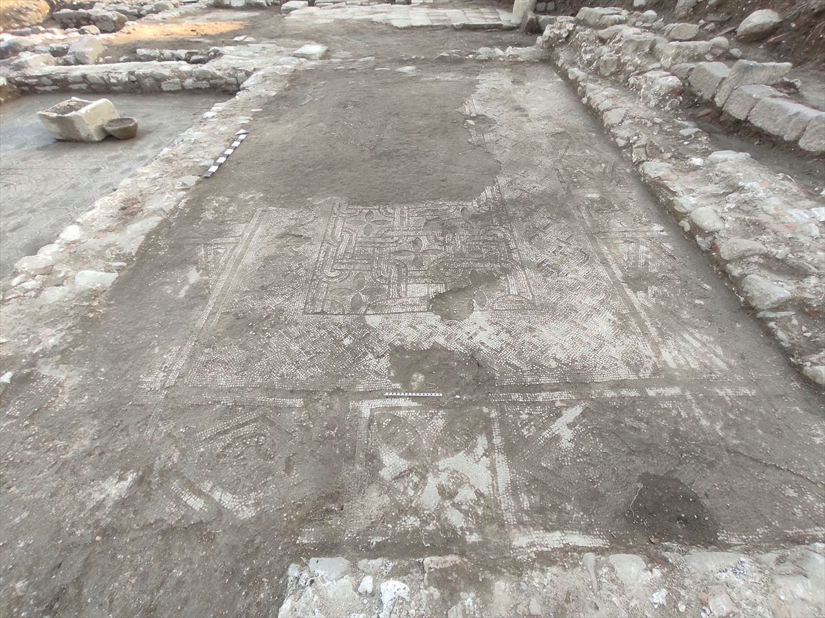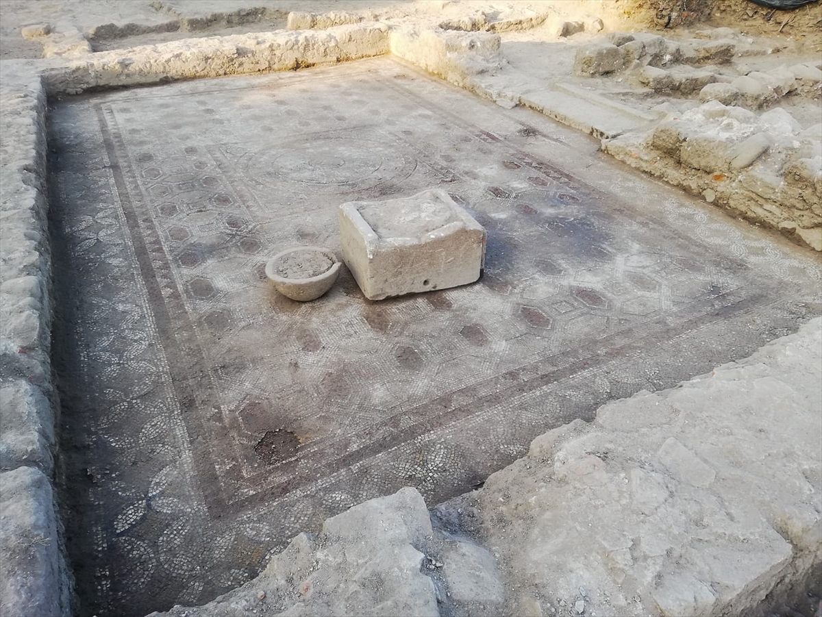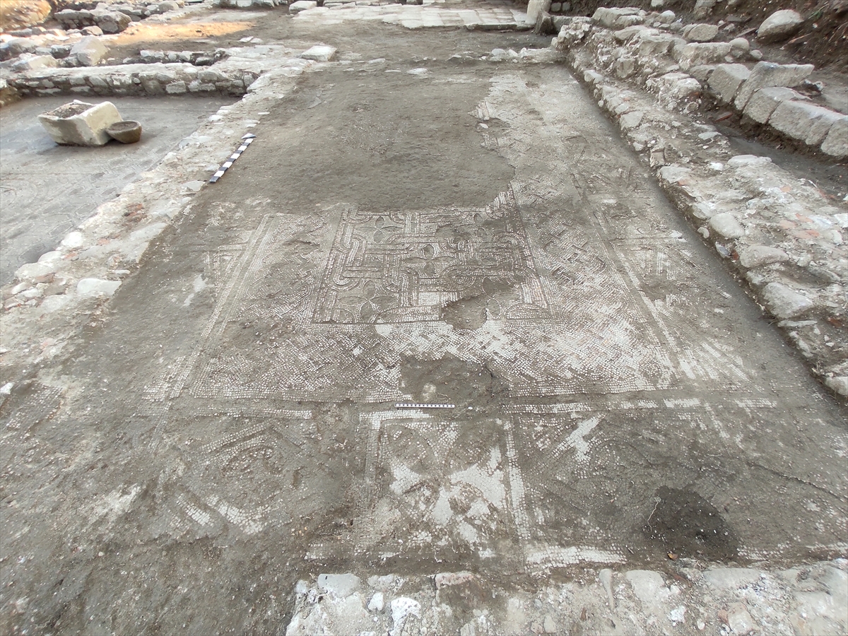 Müze Müdürlüğünün çalışmalarıyla açığa çıkarılan buluntulara, Kızıl Avlu çevresindeki bir dini alana ait olduğu tahmin edilen yapının tabanındaki mozaikler de eklendi.