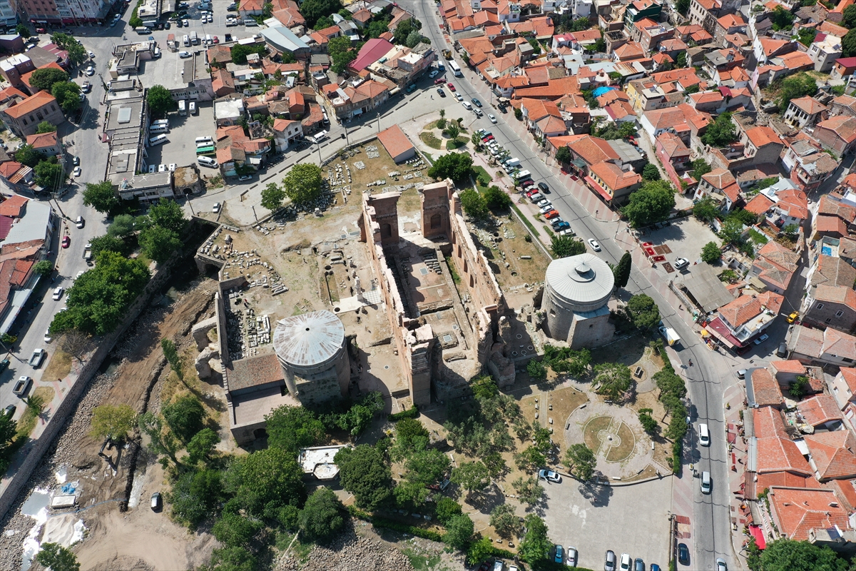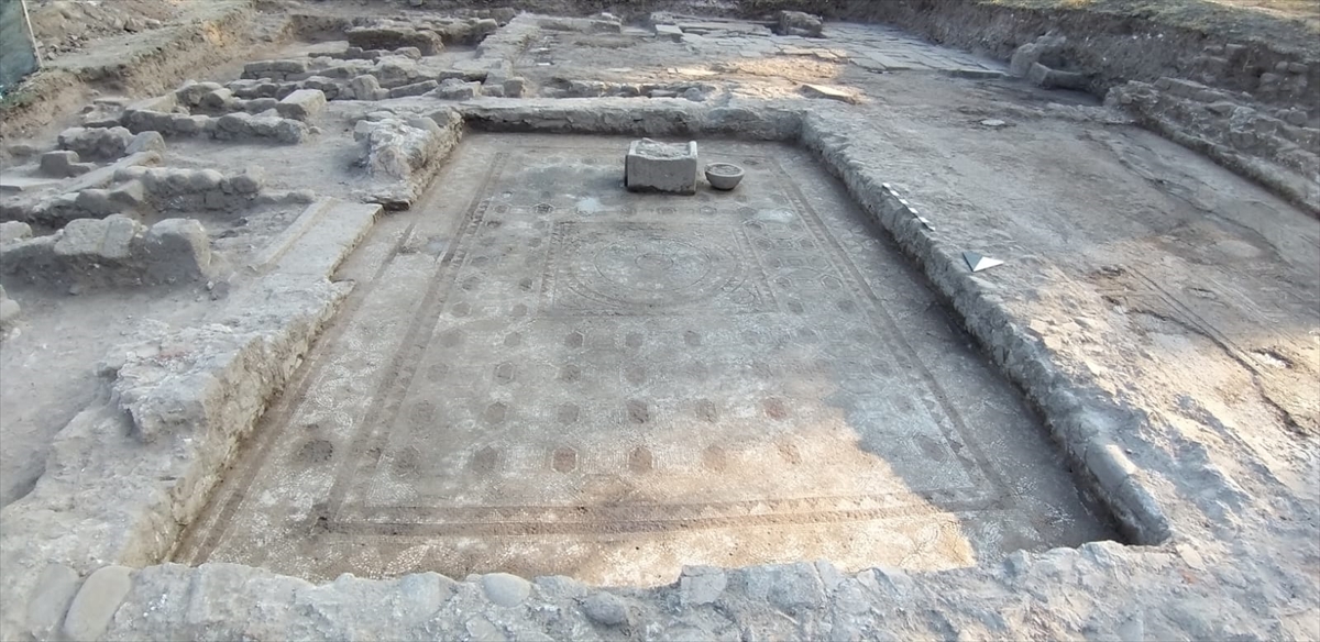 UNESCO Dünya Miras Listesi'nde yer alan Bergama'daki Kızıl Avlu çevresinde yapılan kazılarda, milattan sonra 2-3'üncü yüzyıllarda yapıldığı değerlendirilen geometrik desenli taban mozaiği bulundu.