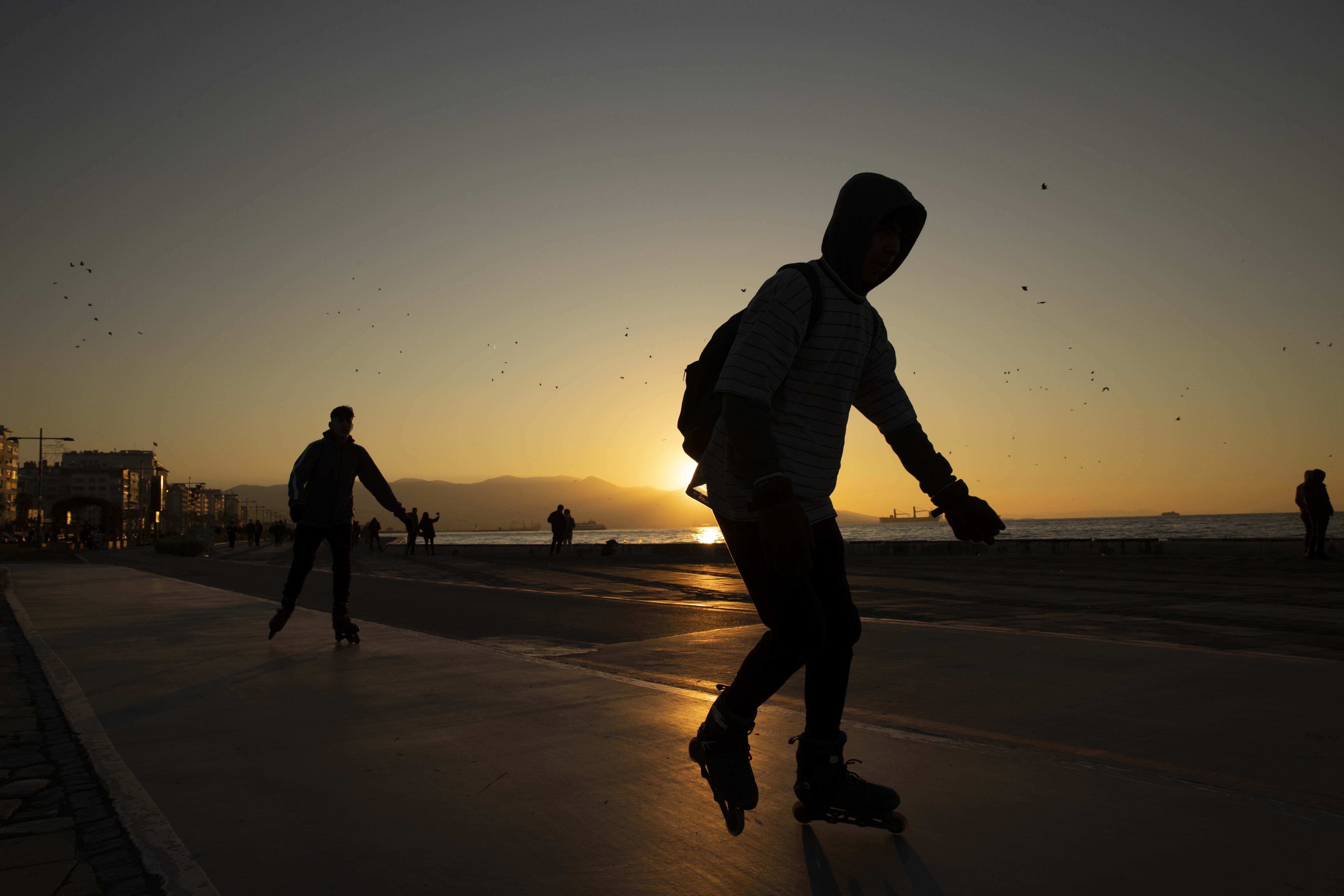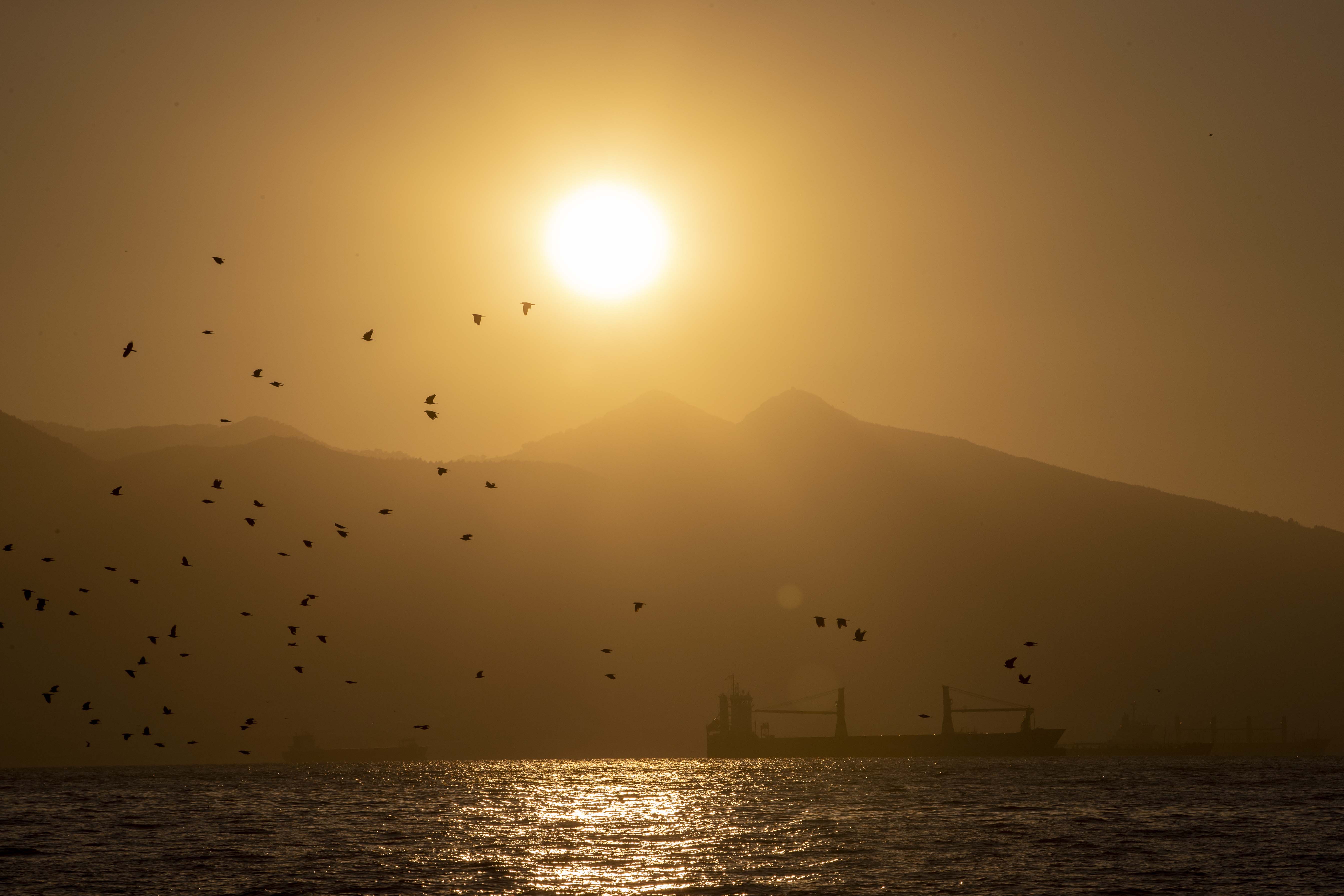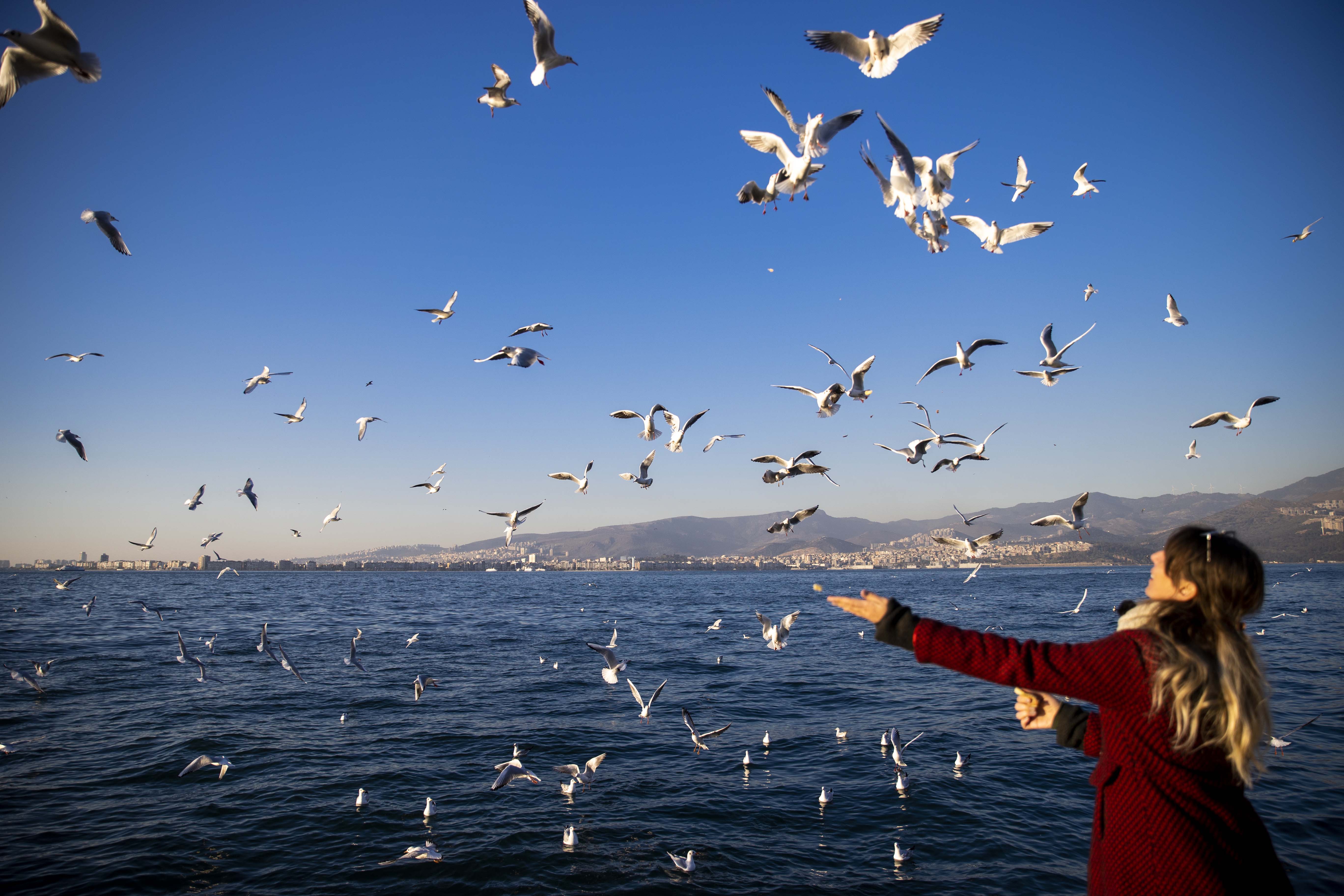 İzmir'de gün batımında gökyüzünde oluşan kızıllık güzel görüntüler oluşturdu.