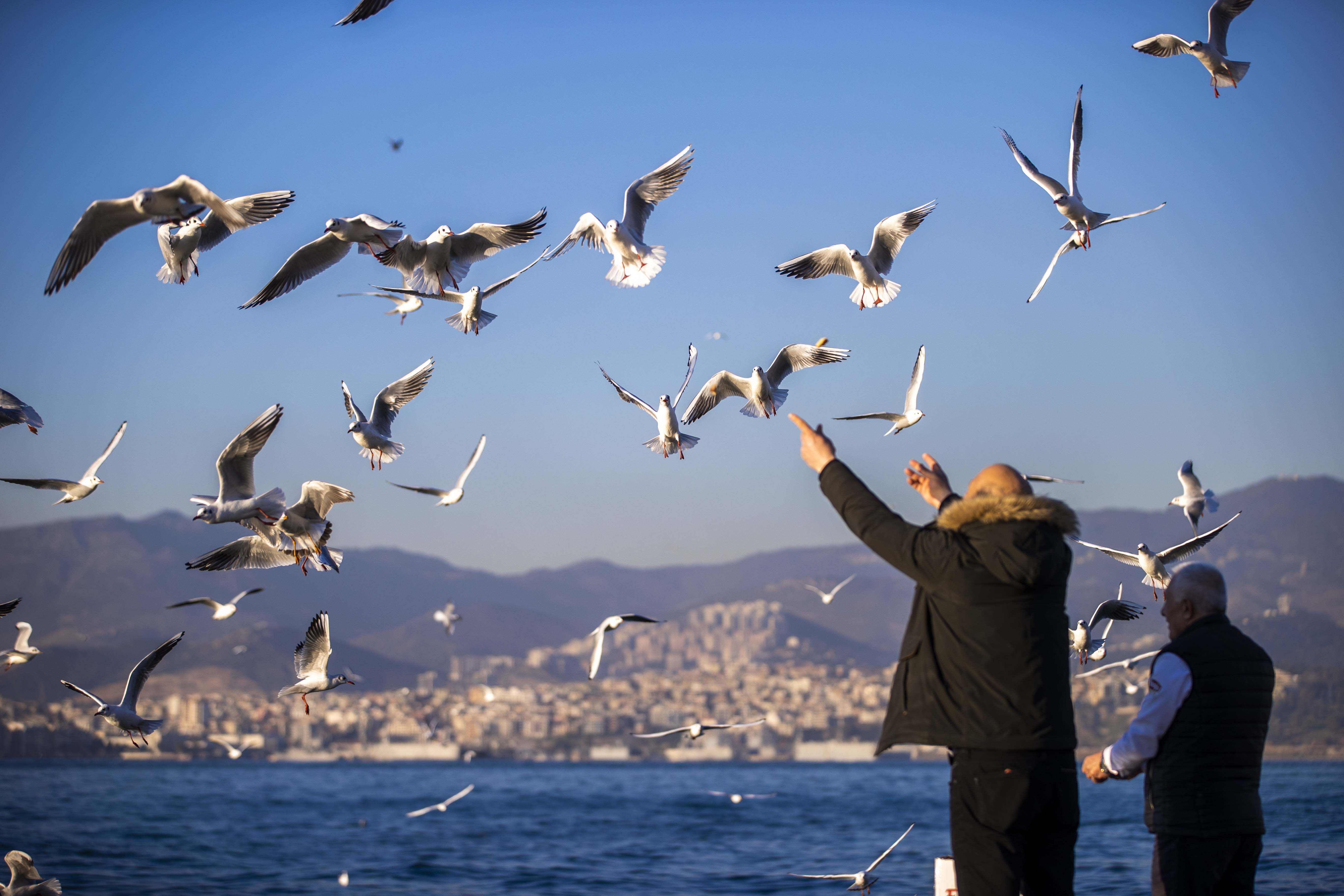 Güneşi fırsat bilen vatandaşların, soğuk havada sahillere akın ettiği görüldü.