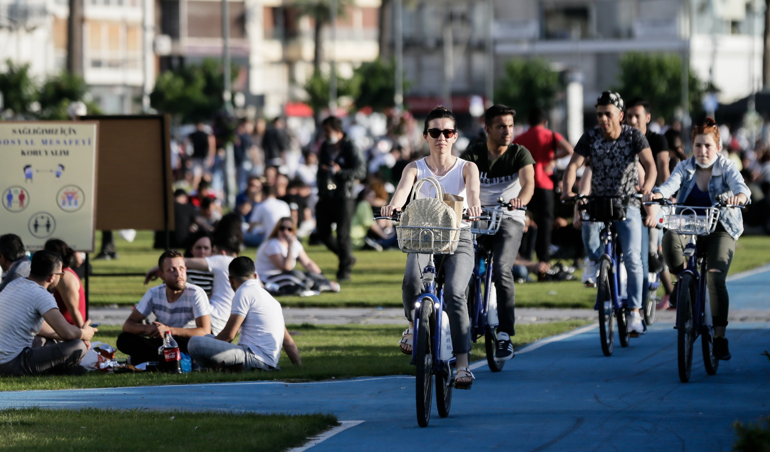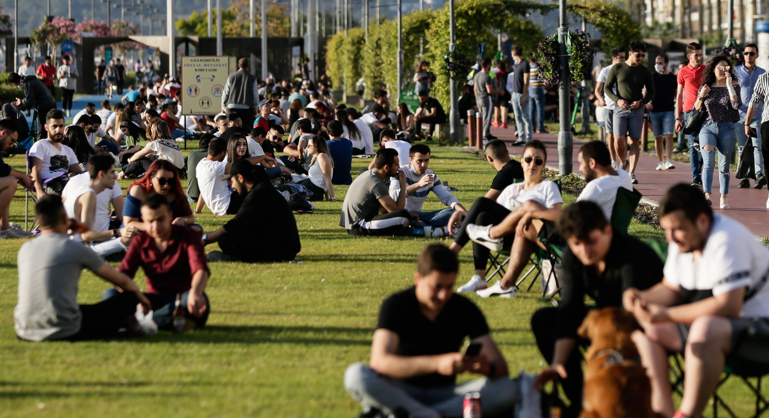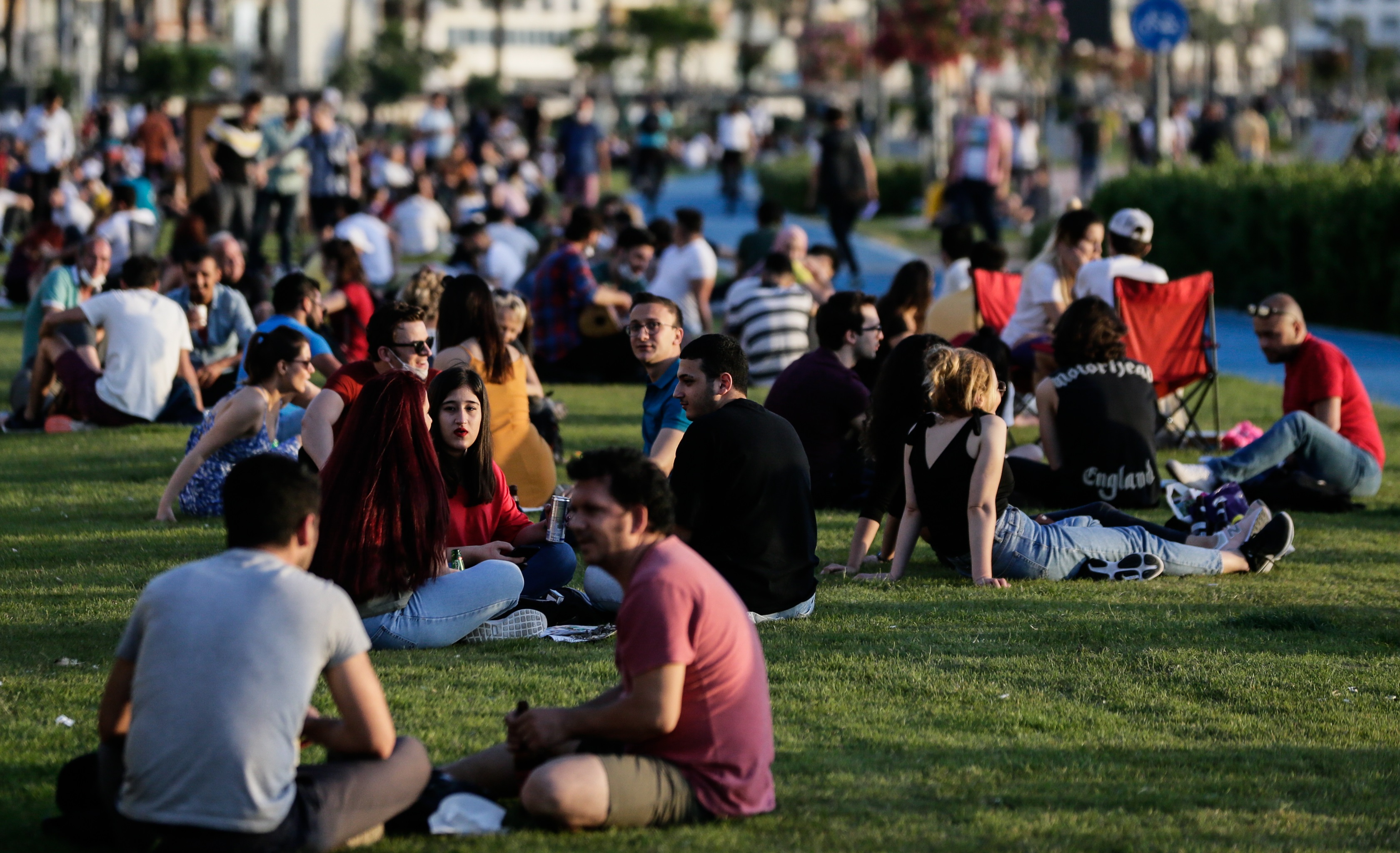 İzmir'de bu kapsamda vatandaşların birçoğu dün olduğu gibi bugün de dışarıda vakit geçirmeyi tercih etti. Güneşin batmasıyla Alsancak semtindeki Kordonboyu'nda buluşan vatandaşlar çimlerin üzerinde zaman geçirdi.