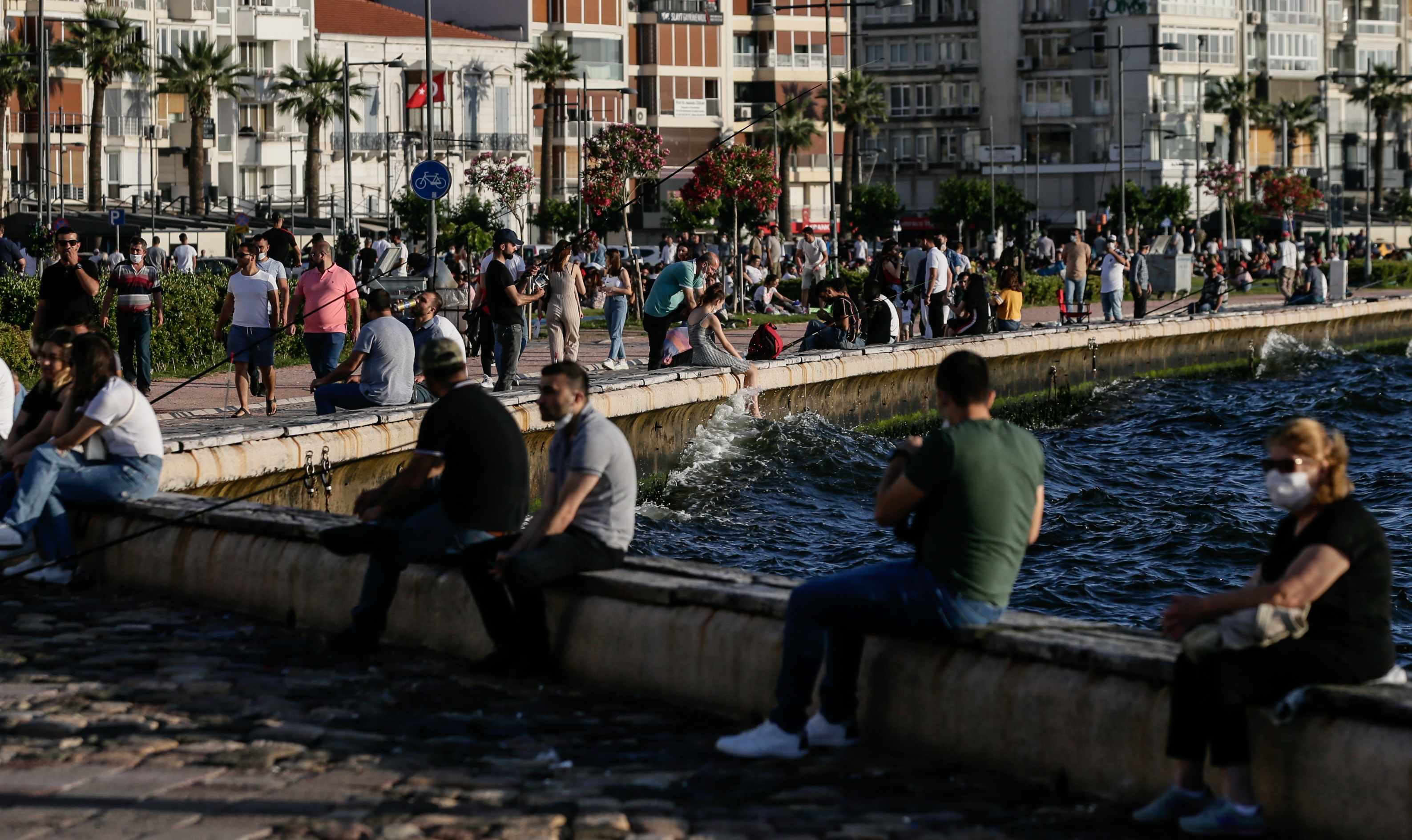 İzmir'de yeni tip koronavirüs (Kovid-19) tedbirleri kapsamında, 10 Nisan'dan beri hafta sonlarında gerçekleştirilen sokağa çıkma kısıtlamasının uygulanmadığı ilk hafta sonunda sokağa çıkanlar, Kordon'da yoğunluğa neden oldu.