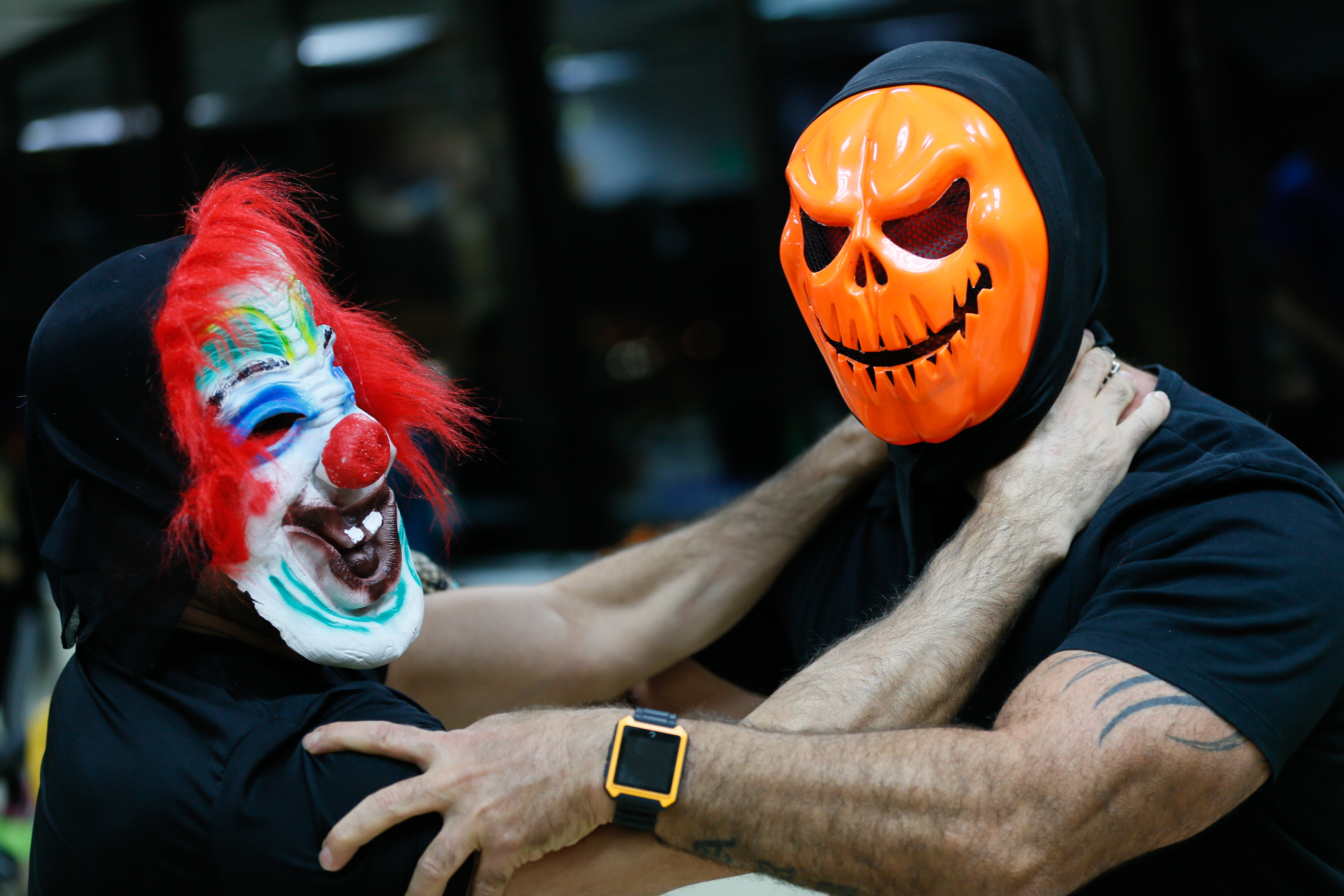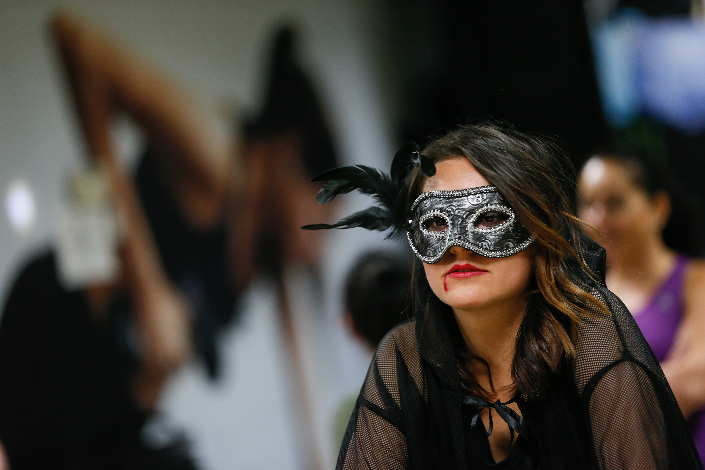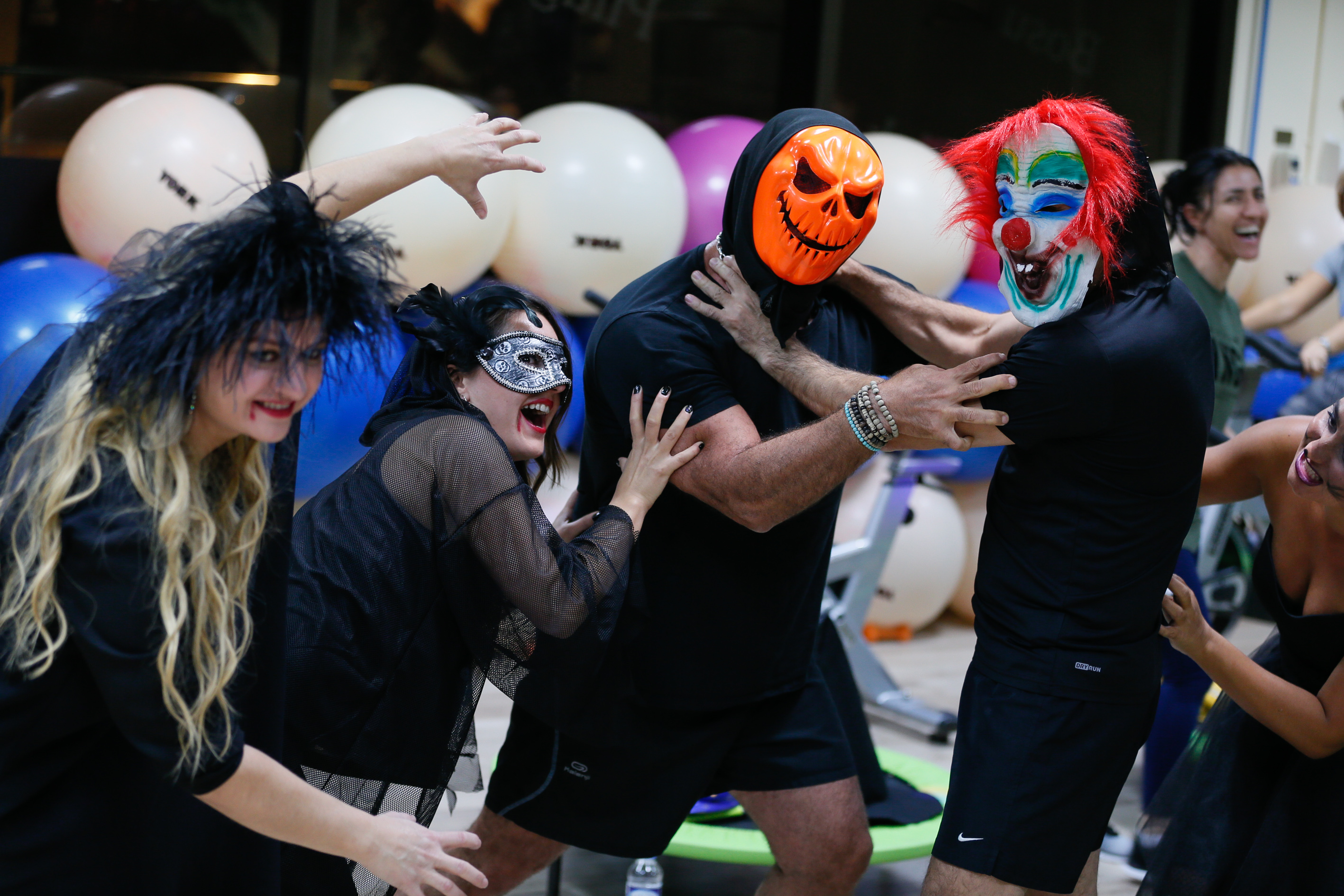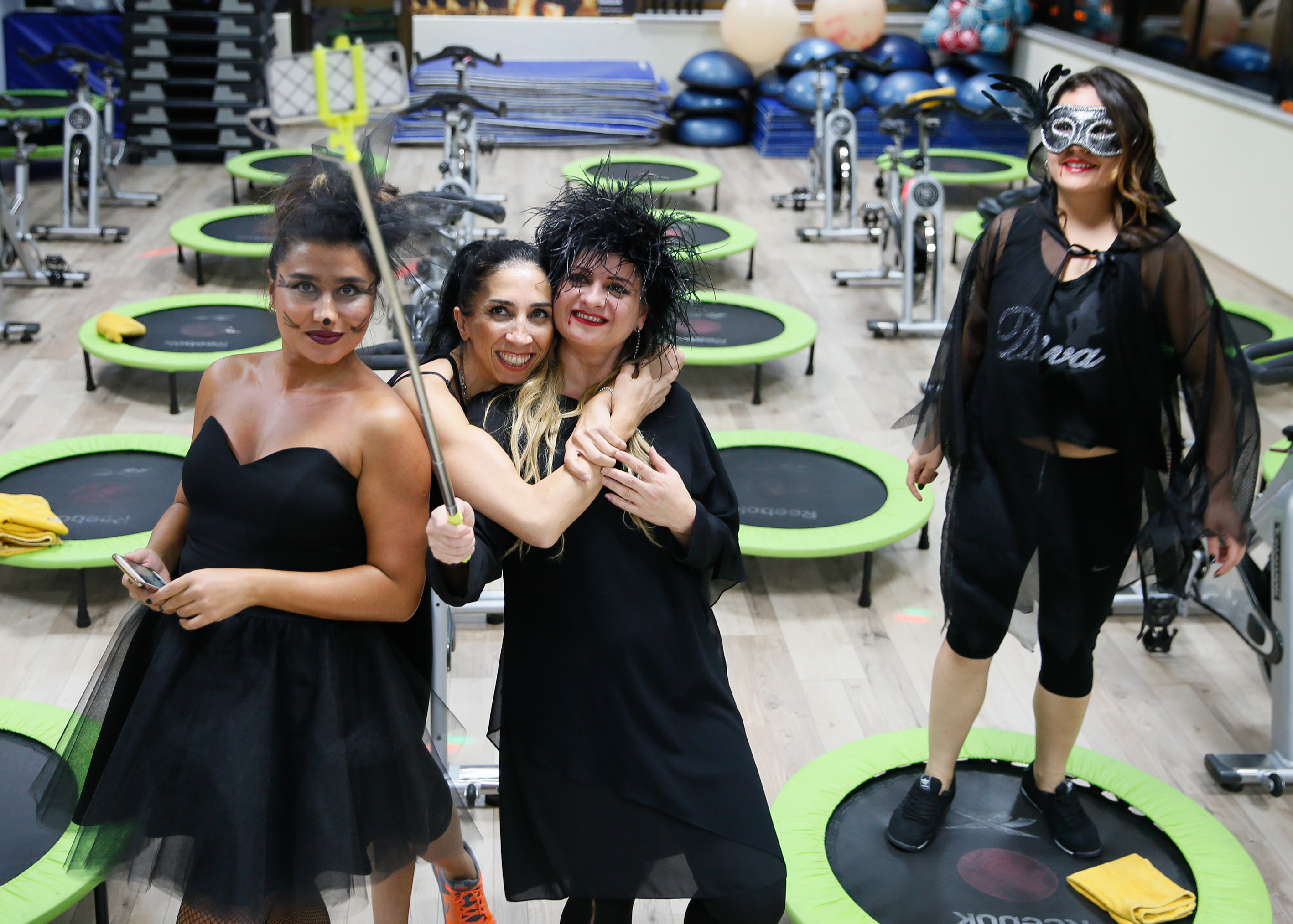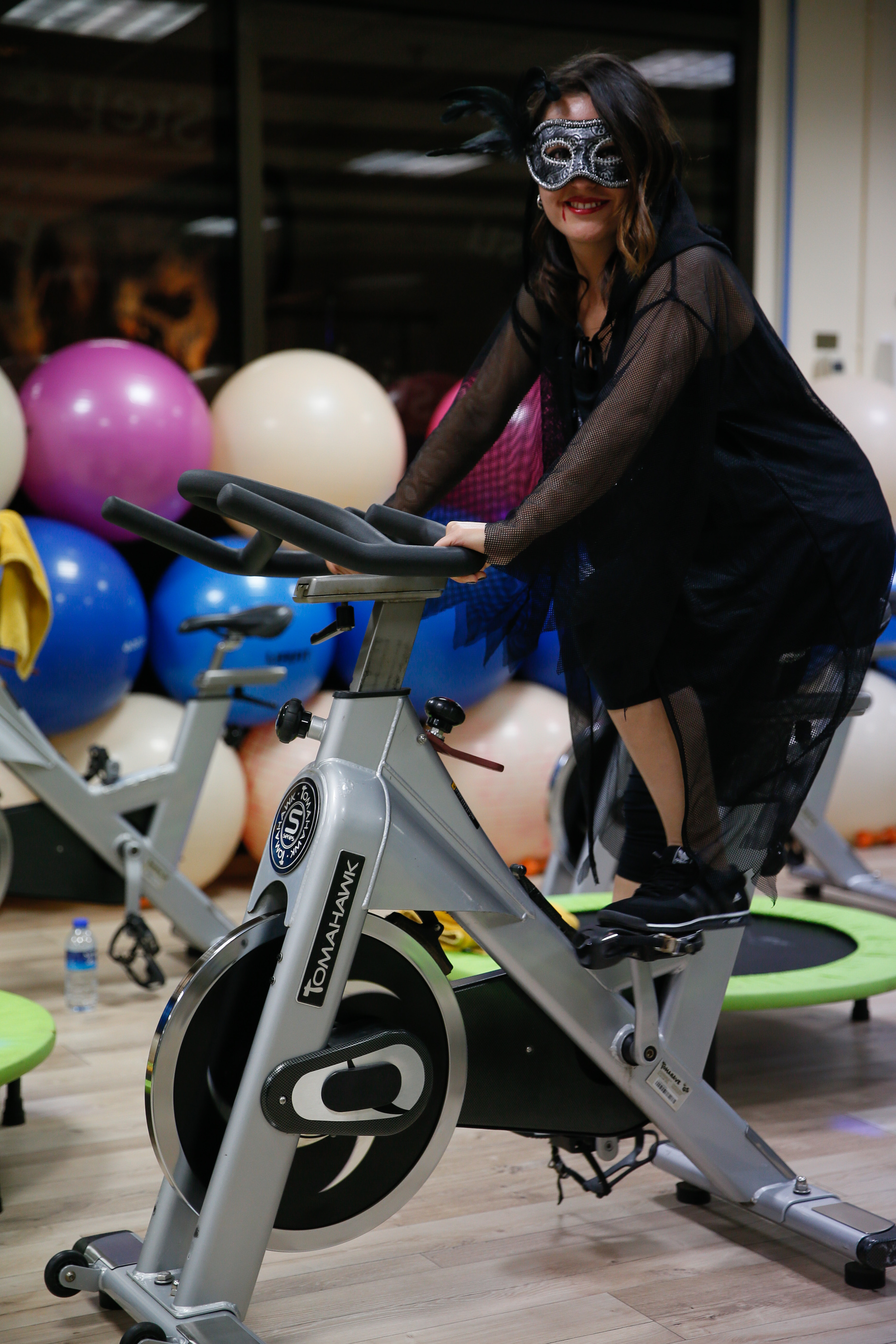 Kent merkezindeki bir otelin spor salonu üyeleri, Cadılar Bayramı dolayısıyla zombi, cadı ve vampir kostümleri giyerek spor yaptı.
