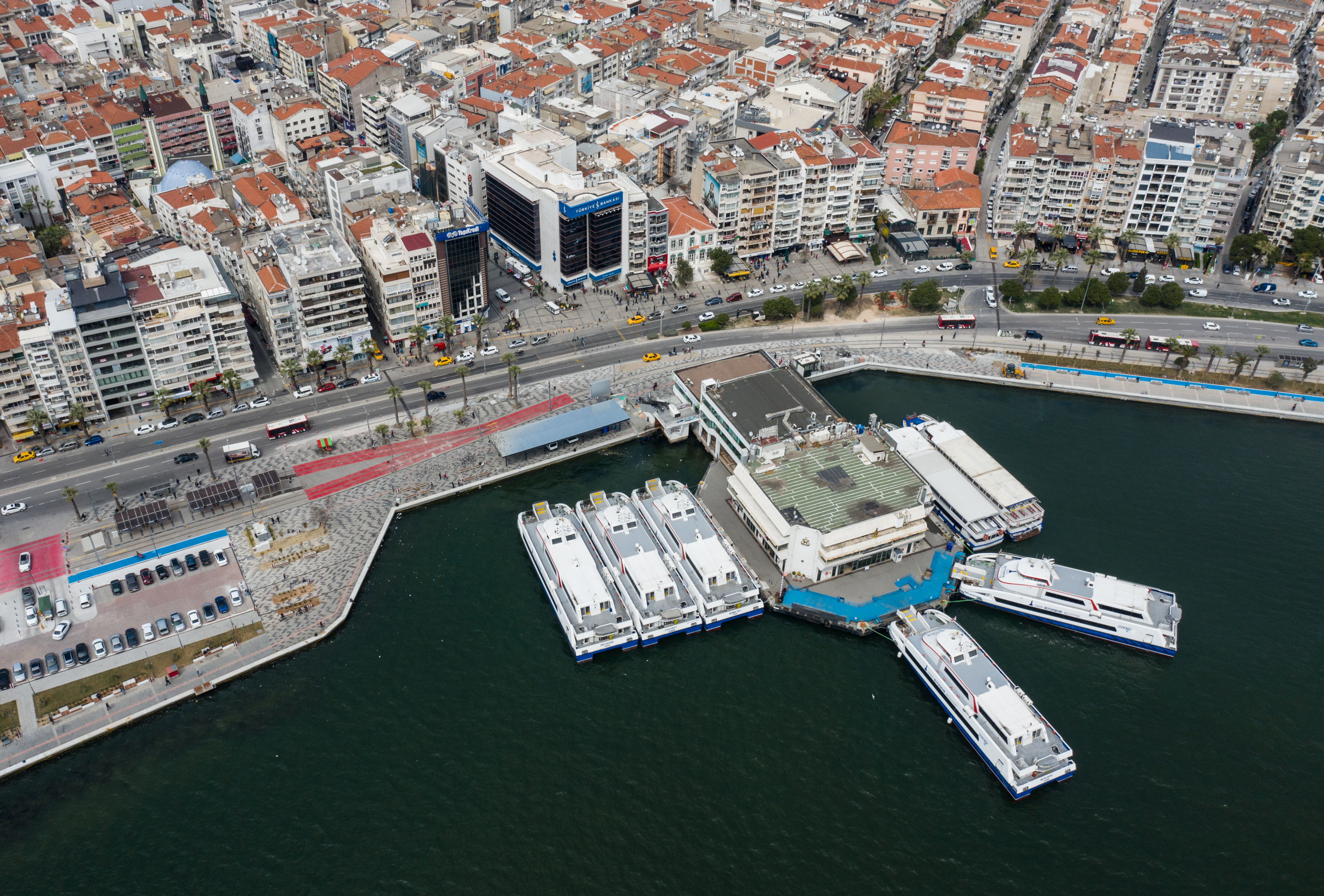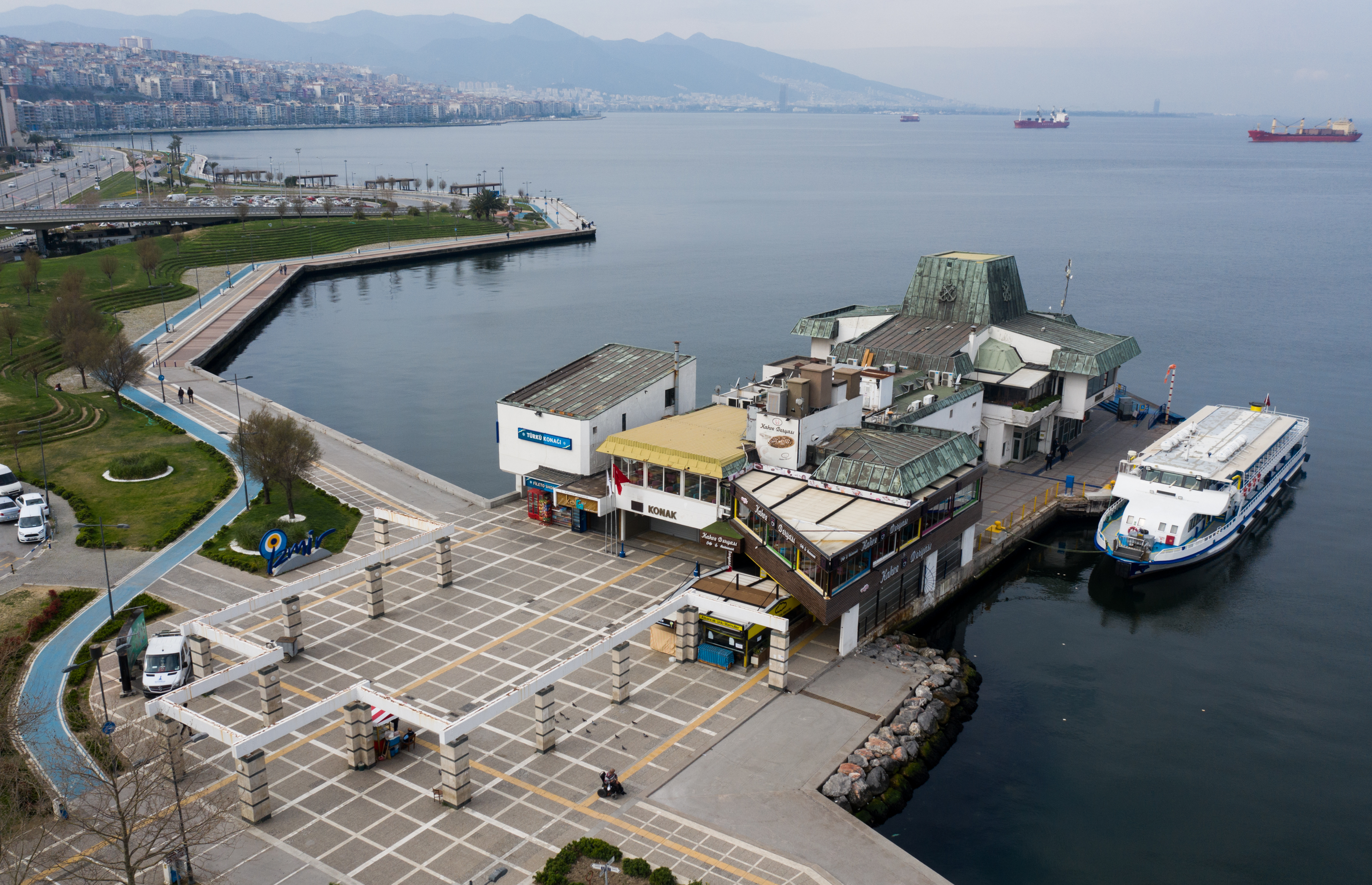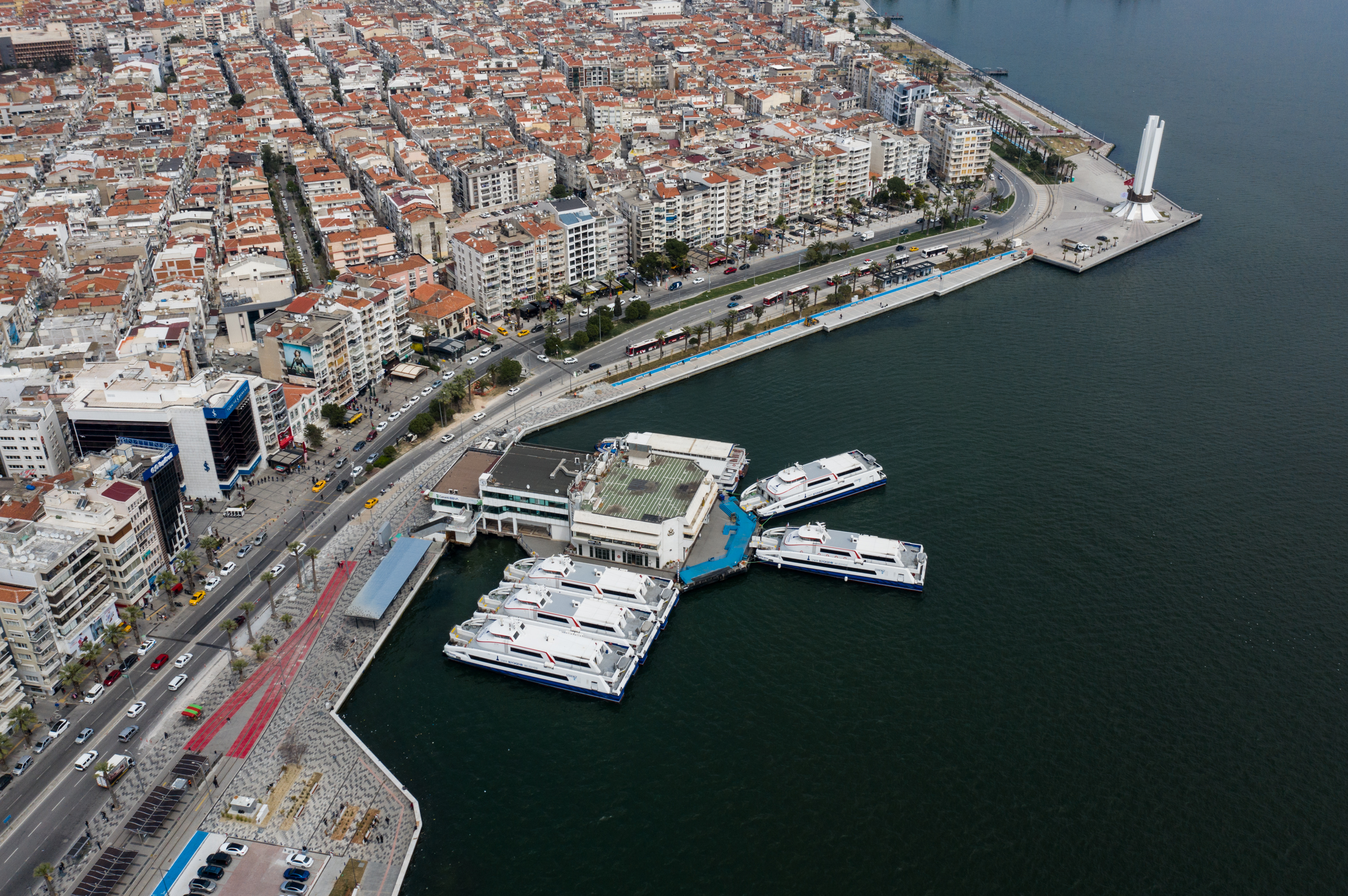 Belediyenin koronavirüs tedbirleri çerçevesinde yeniden düzenlediği vapur seferlerinden dolayı Karşıyaka İskelesi'nde çok sayıda vapurun beklediği gözlemlendi.