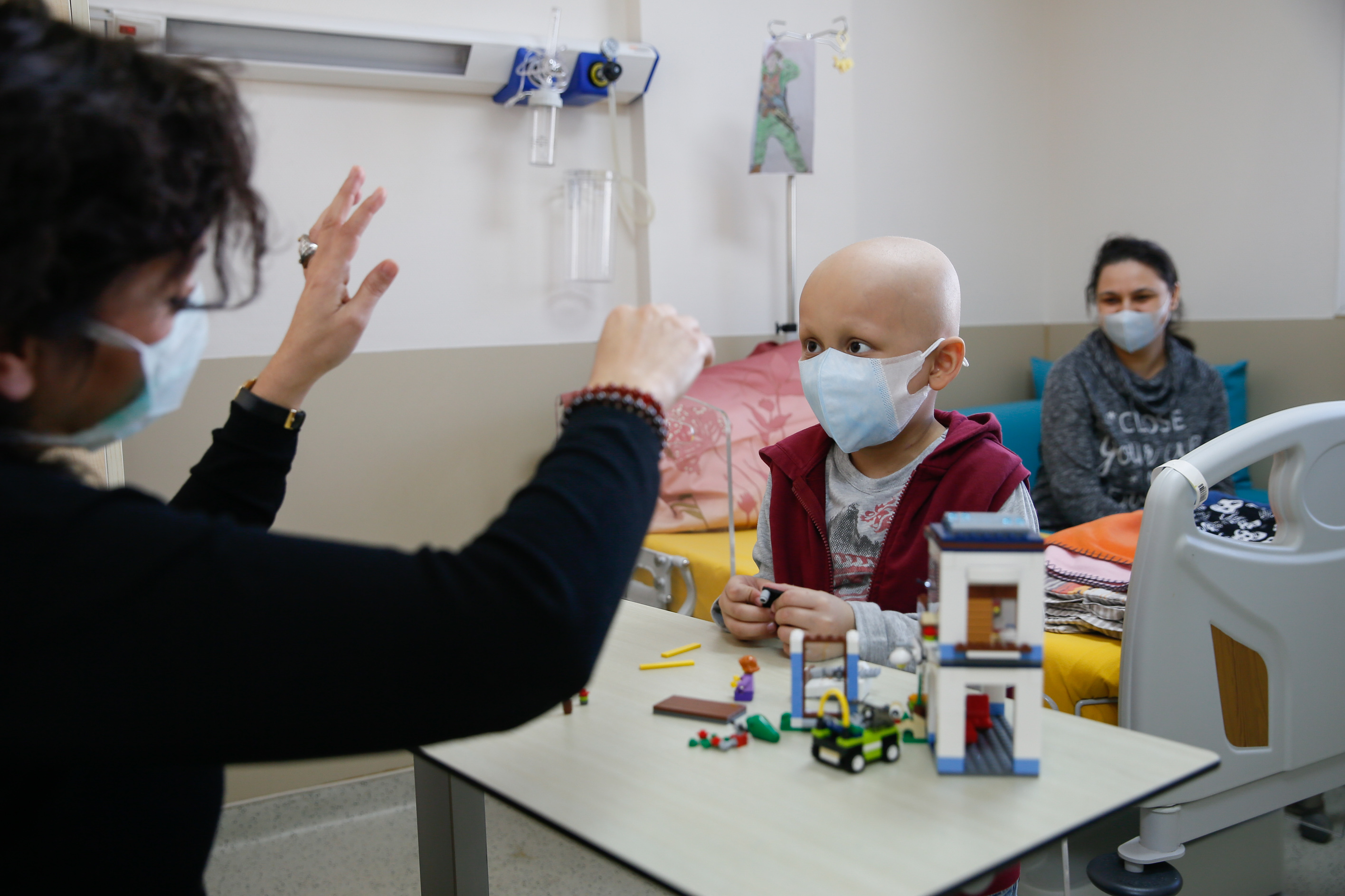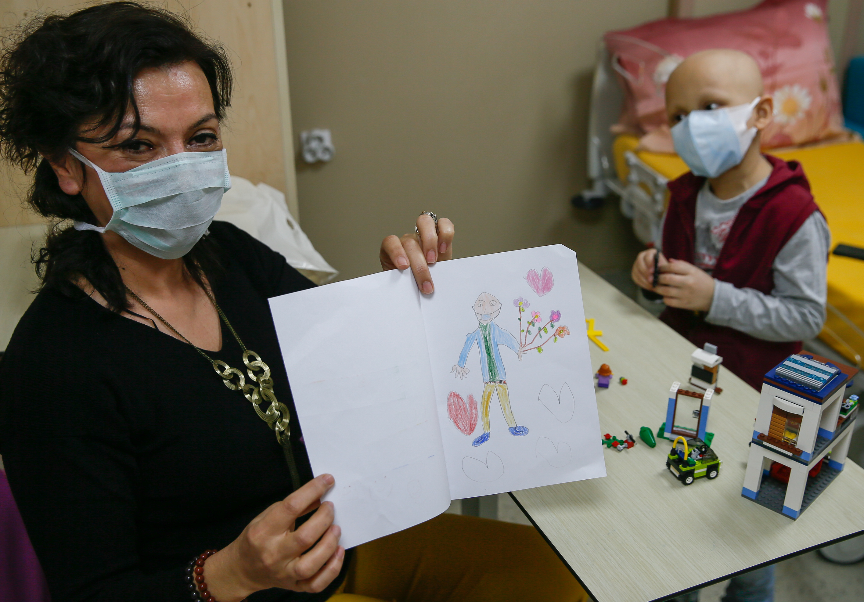 Harfleri hastanede öğrenen 5 yaşındaki Muhammed Yasir Çıkrıkçı da odasında öğretmenleriyle resim yapıyor, çeşitli oyunlar oynuyor.