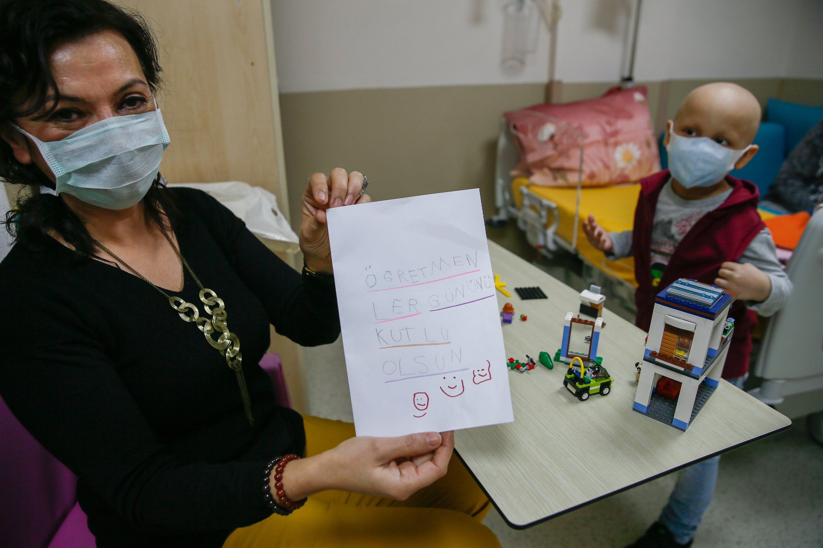 Bu arada, hastanedeki öğrenciler, fedakar öğretmenlerinin Öğretmenler Günü'nü unutmadı. Öğrenciler, hazırladıkları çeşitli hediyelerle, eğitim hayatından kopmamalarını sağlayan öğretmenlerine teşekkür etti.