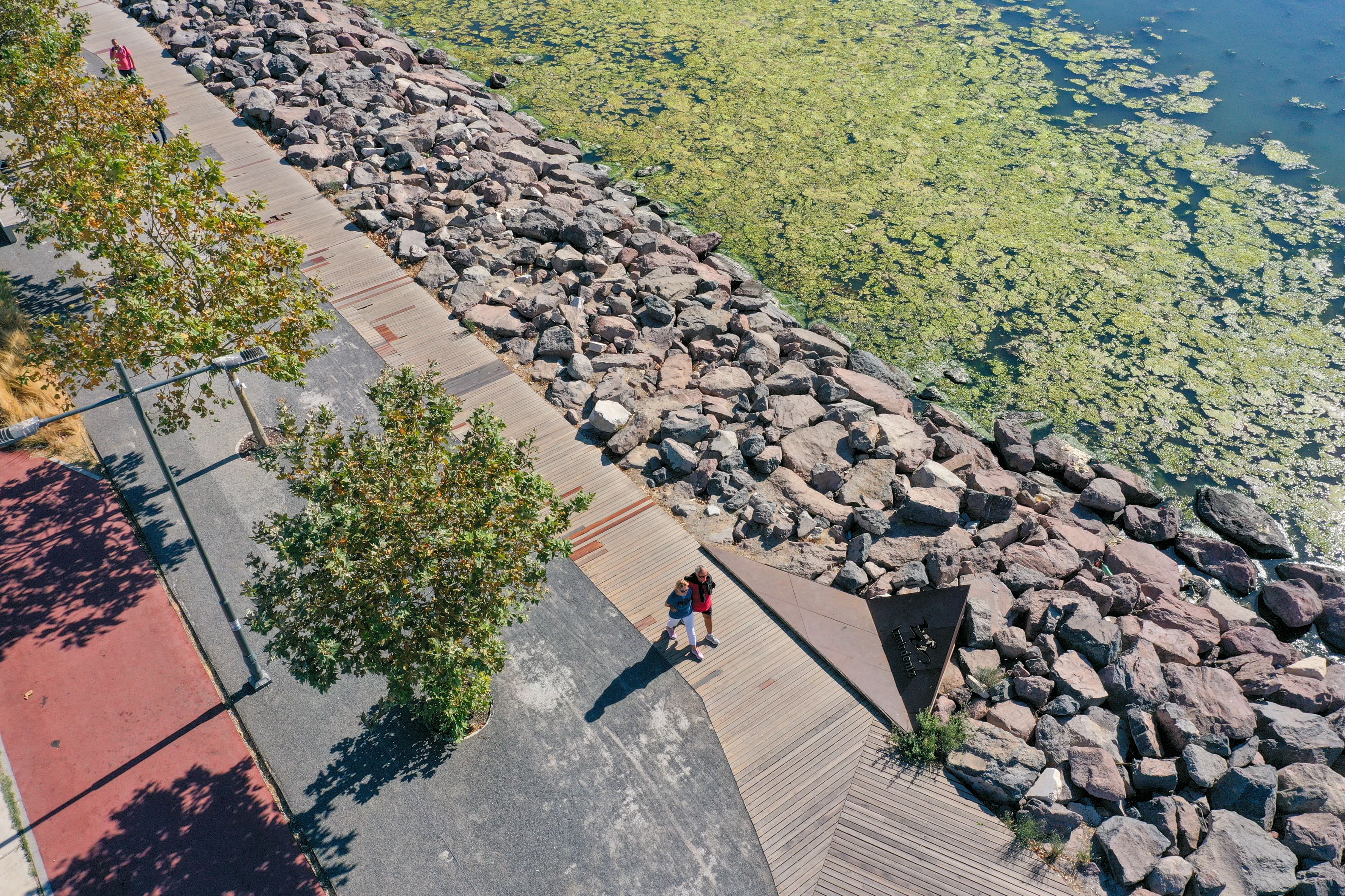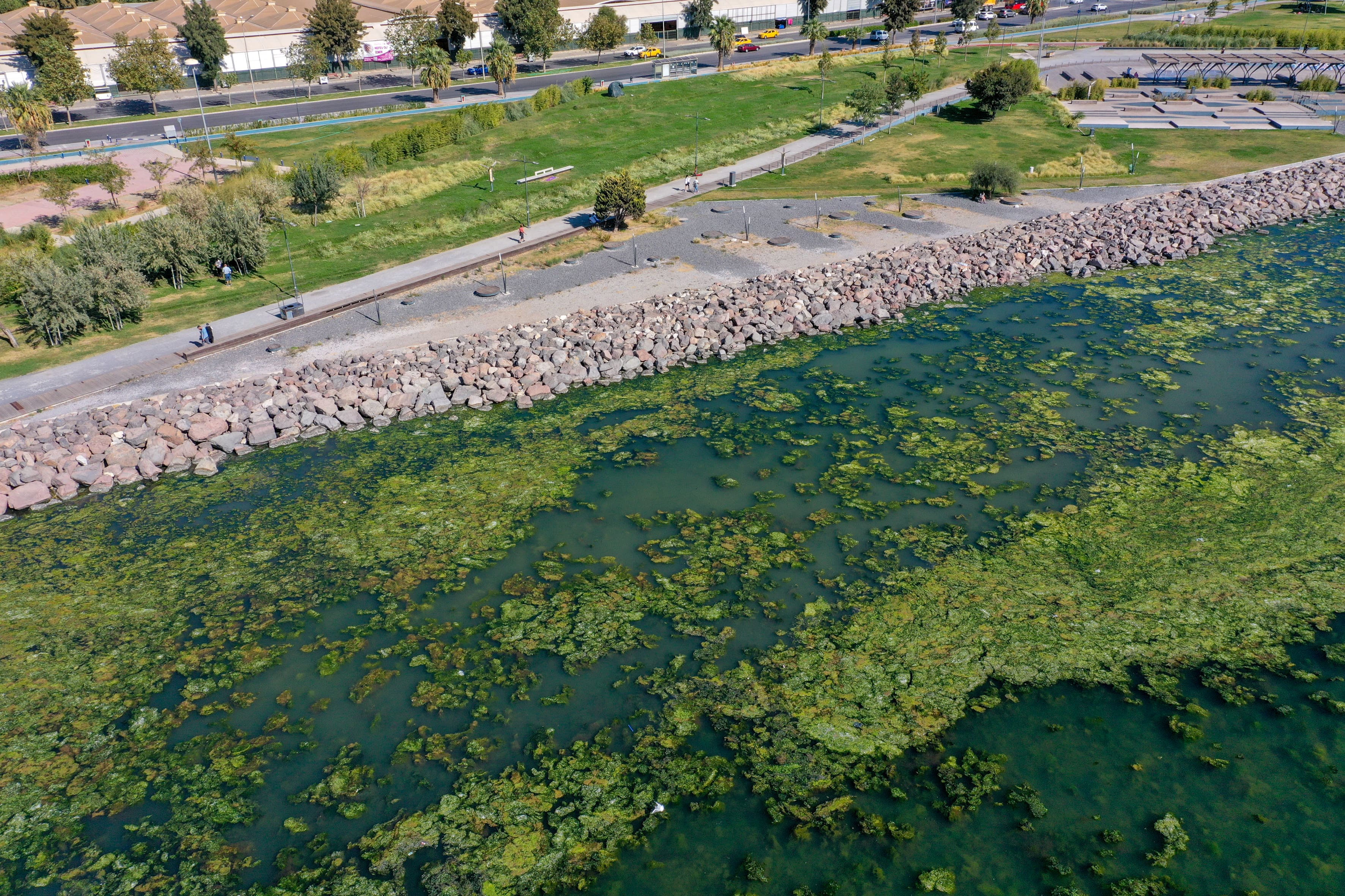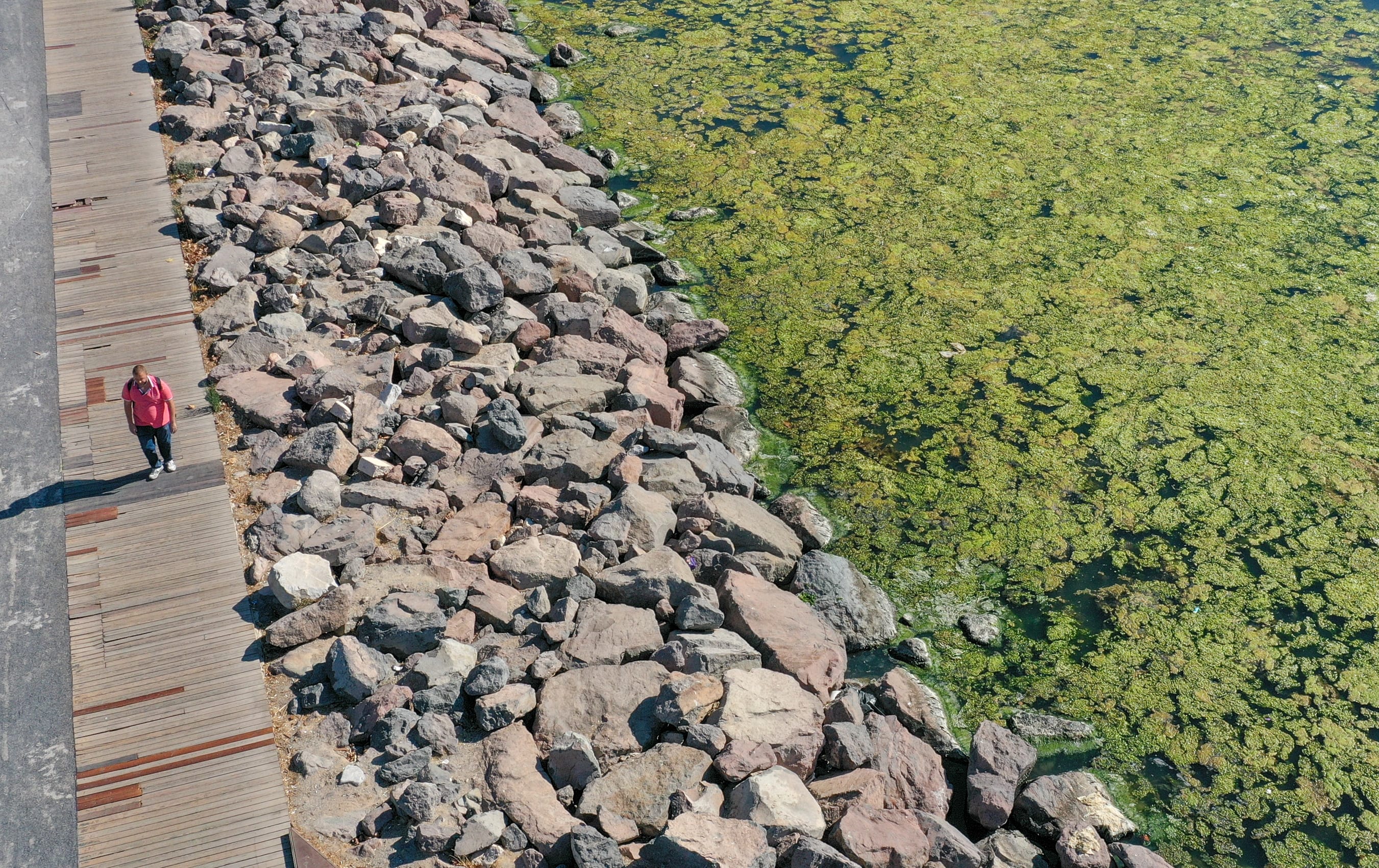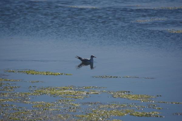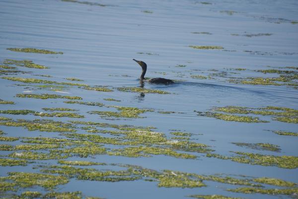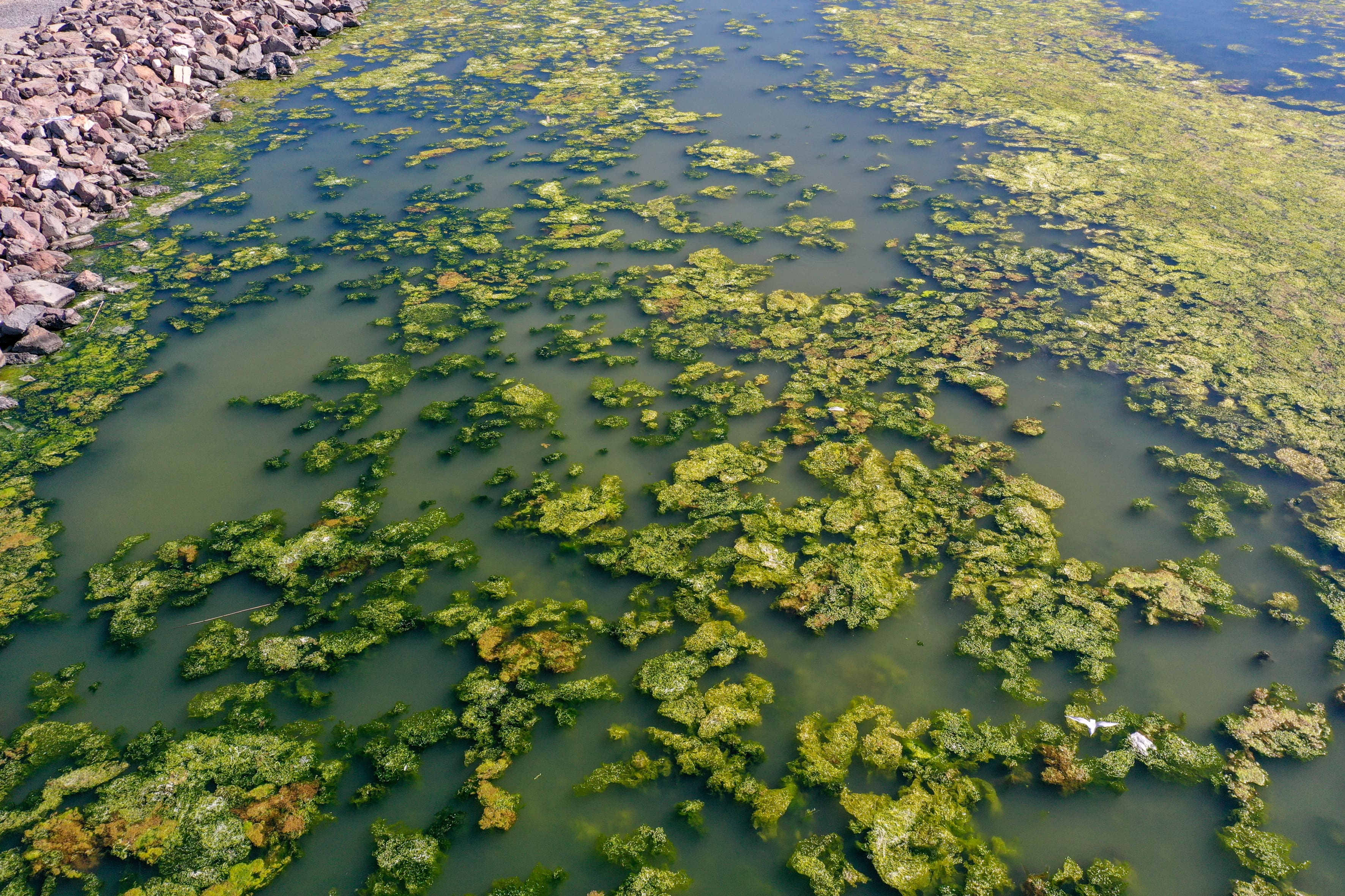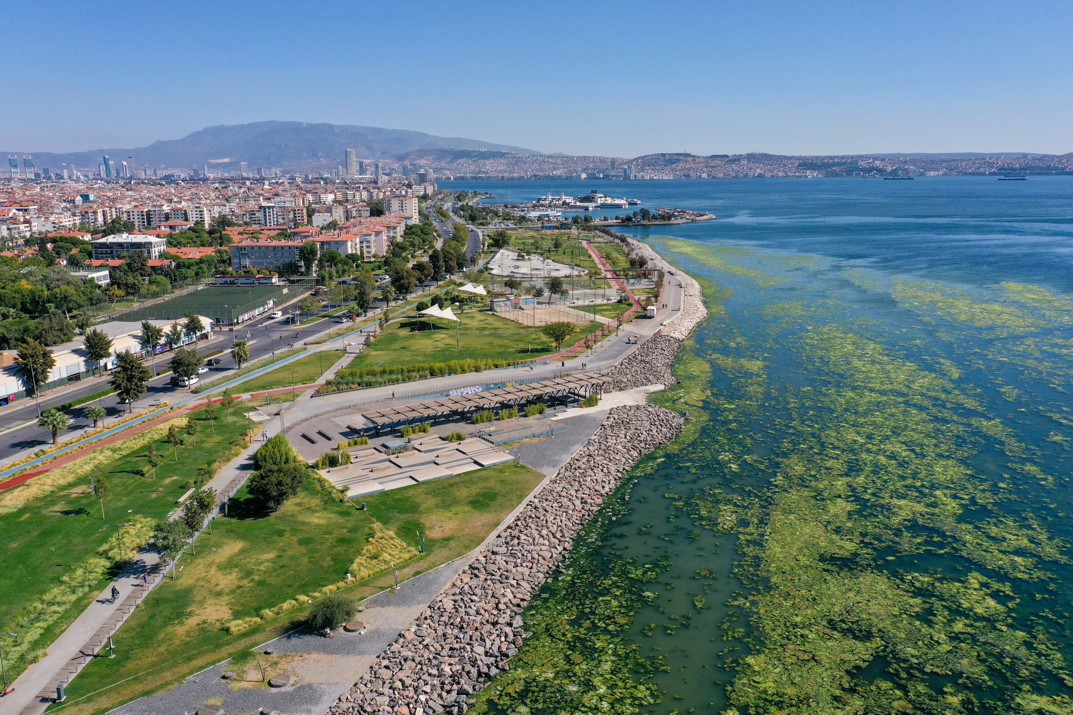 İzmir'in Karşıyaka ilçesinde sahili, 'deniz marulu' olarak bilinen 'ulva lactuca' adlı yeşil renkli yosunlarla kaplandı.