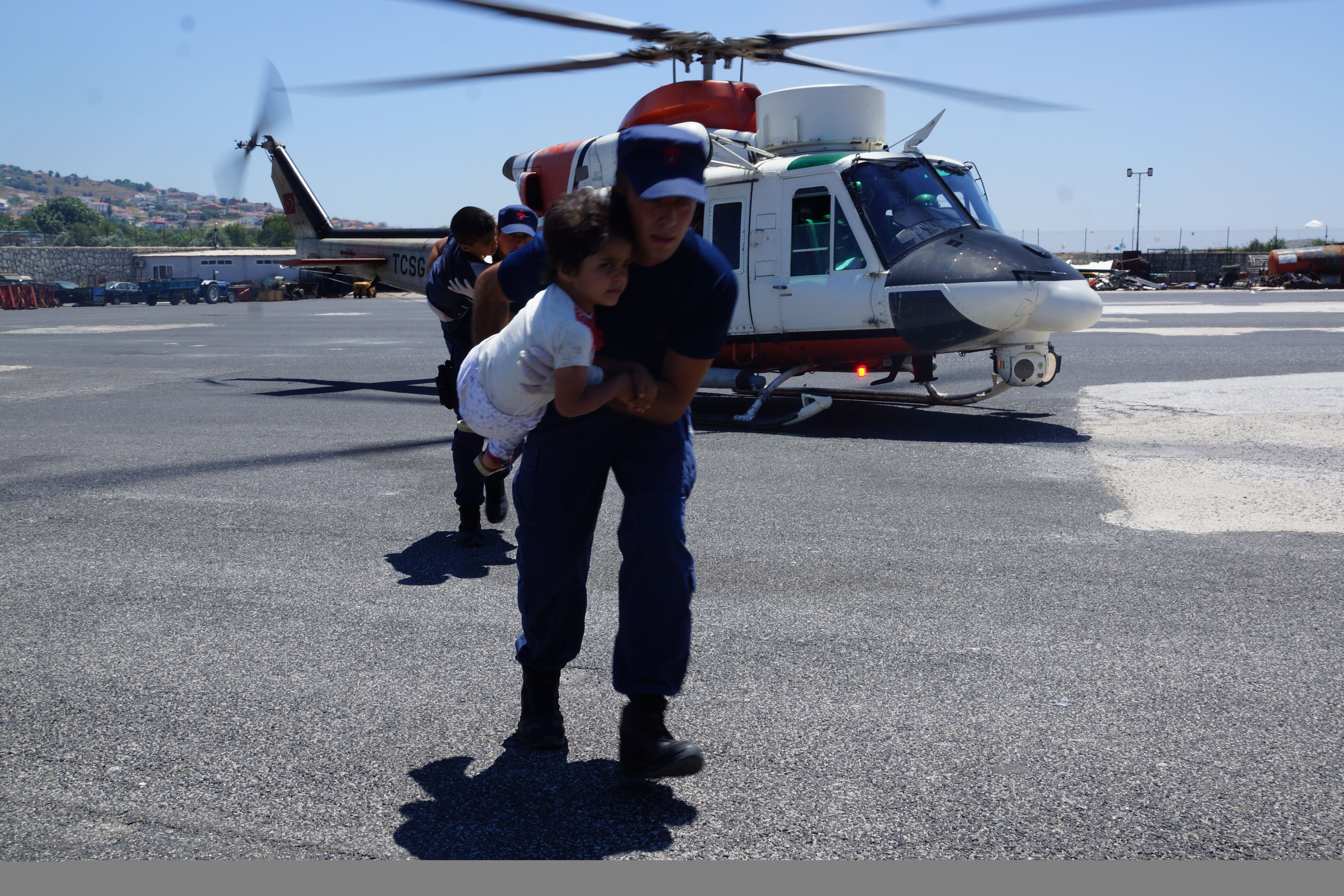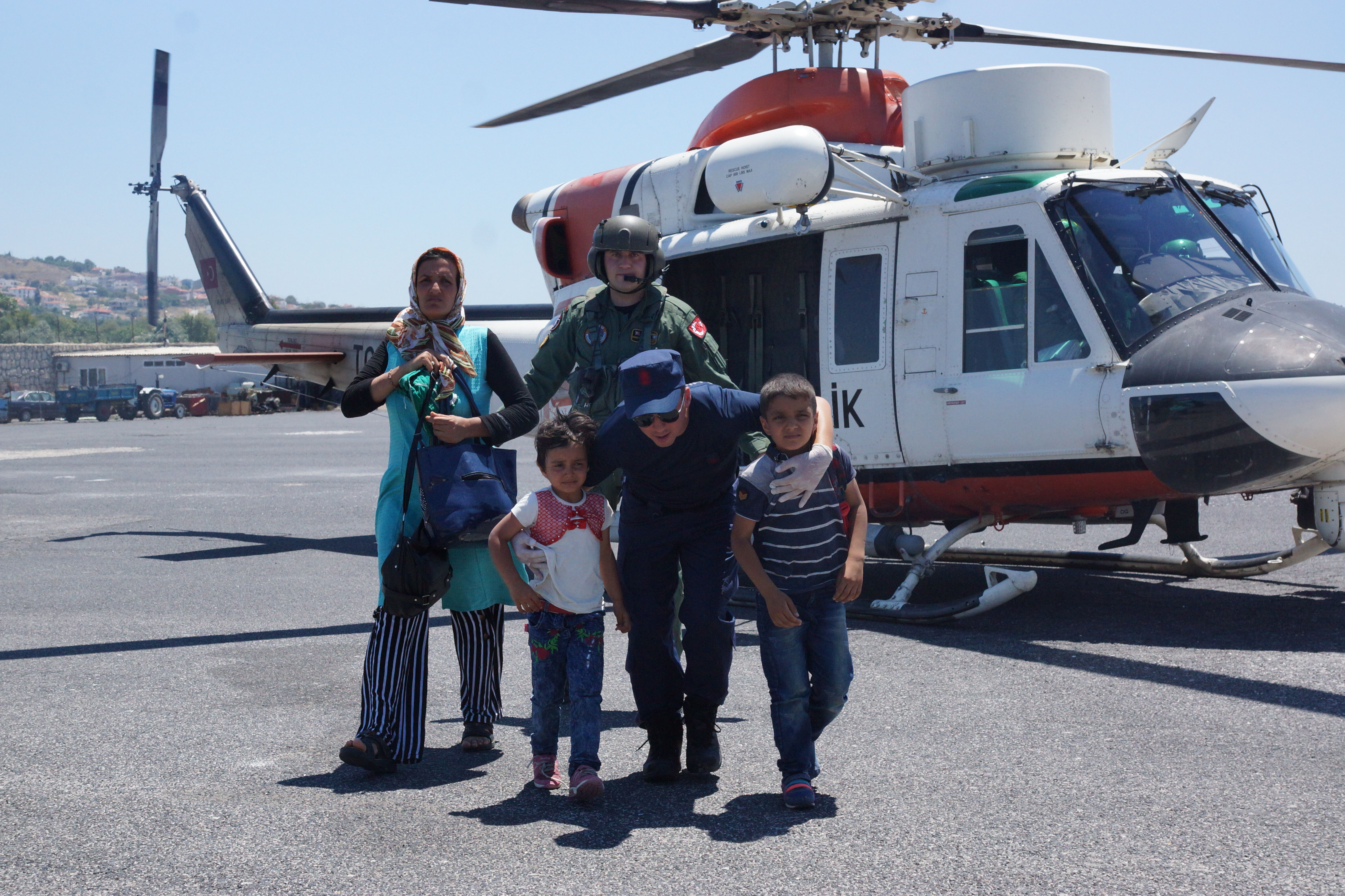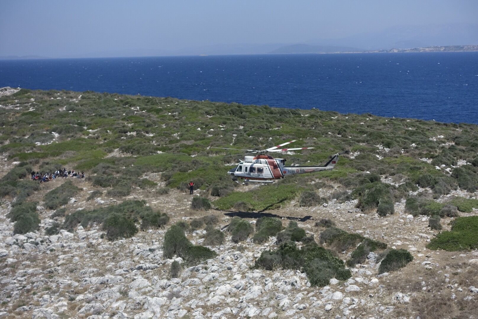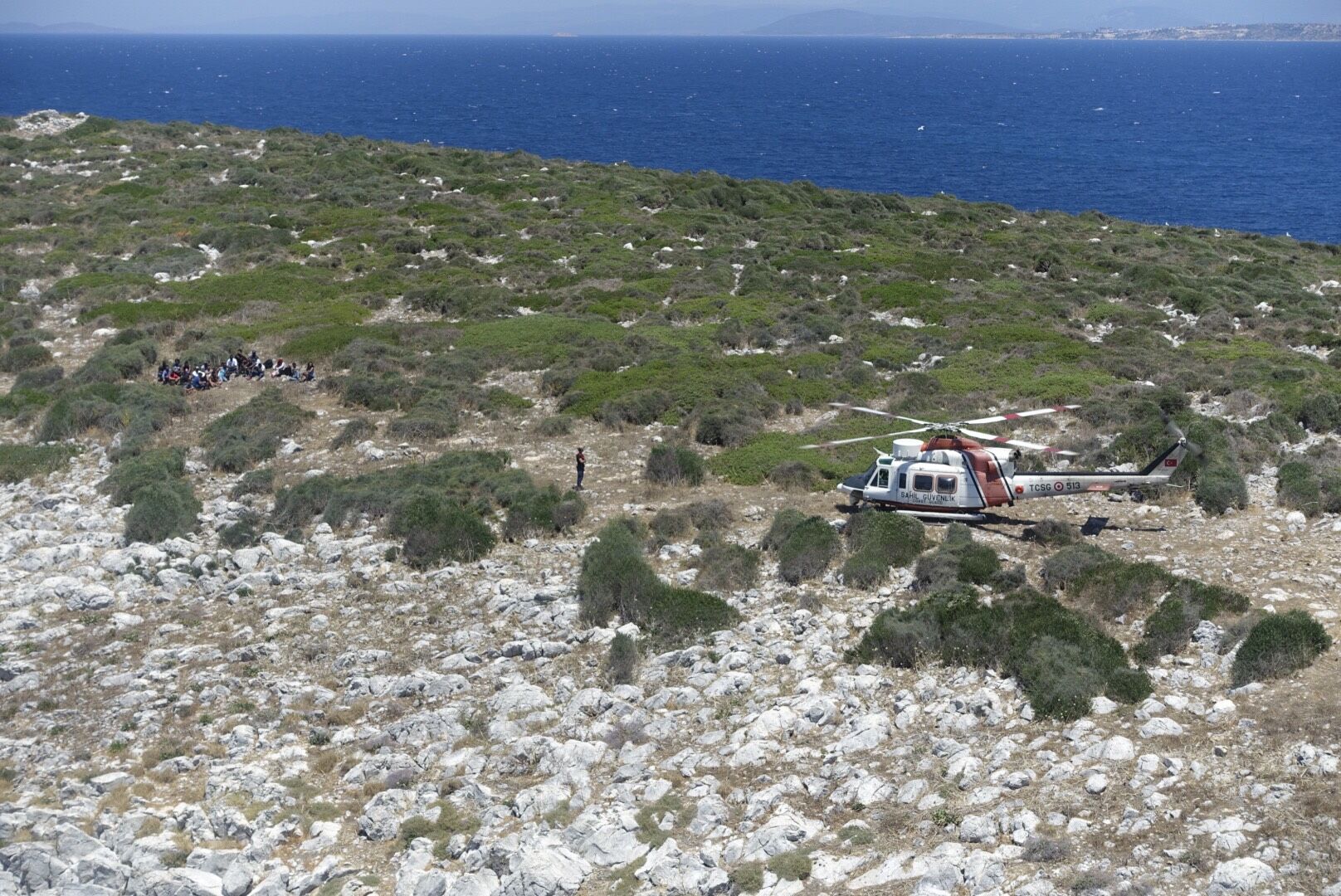 35 kişi olduğu tahmin edilen göçmenlerin tahliyesi için 2 helikopterle çalışma başlatıldı.