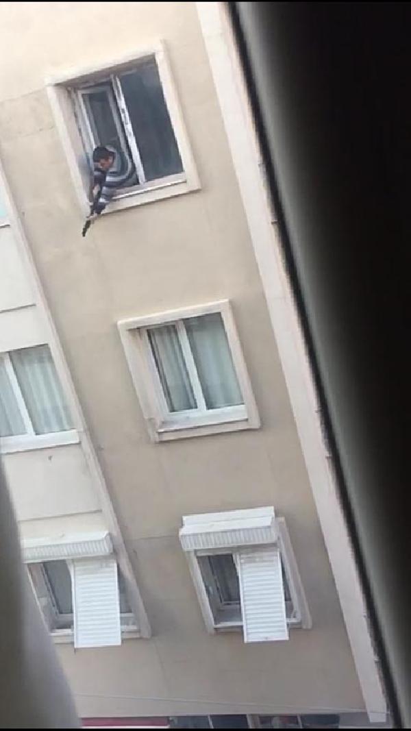 Buca İlçesi'nde evinin penceresine çıktıktan sonra elindeki pompalı tüfekle rastgele ateş açan, psikolojik sorunları bulunduğu belirtilen özel güvenlik görevlisi M.C., polisin 13 saat süren ikna çalışması sonunda polislere teslim oldu.