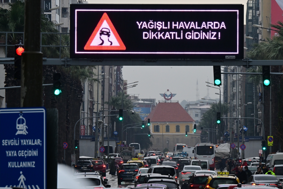 İzmir'de kent merkezi ve çevre ilçelerde sağanak ve zaman zaman rüzgar etkili oldu. (AA)