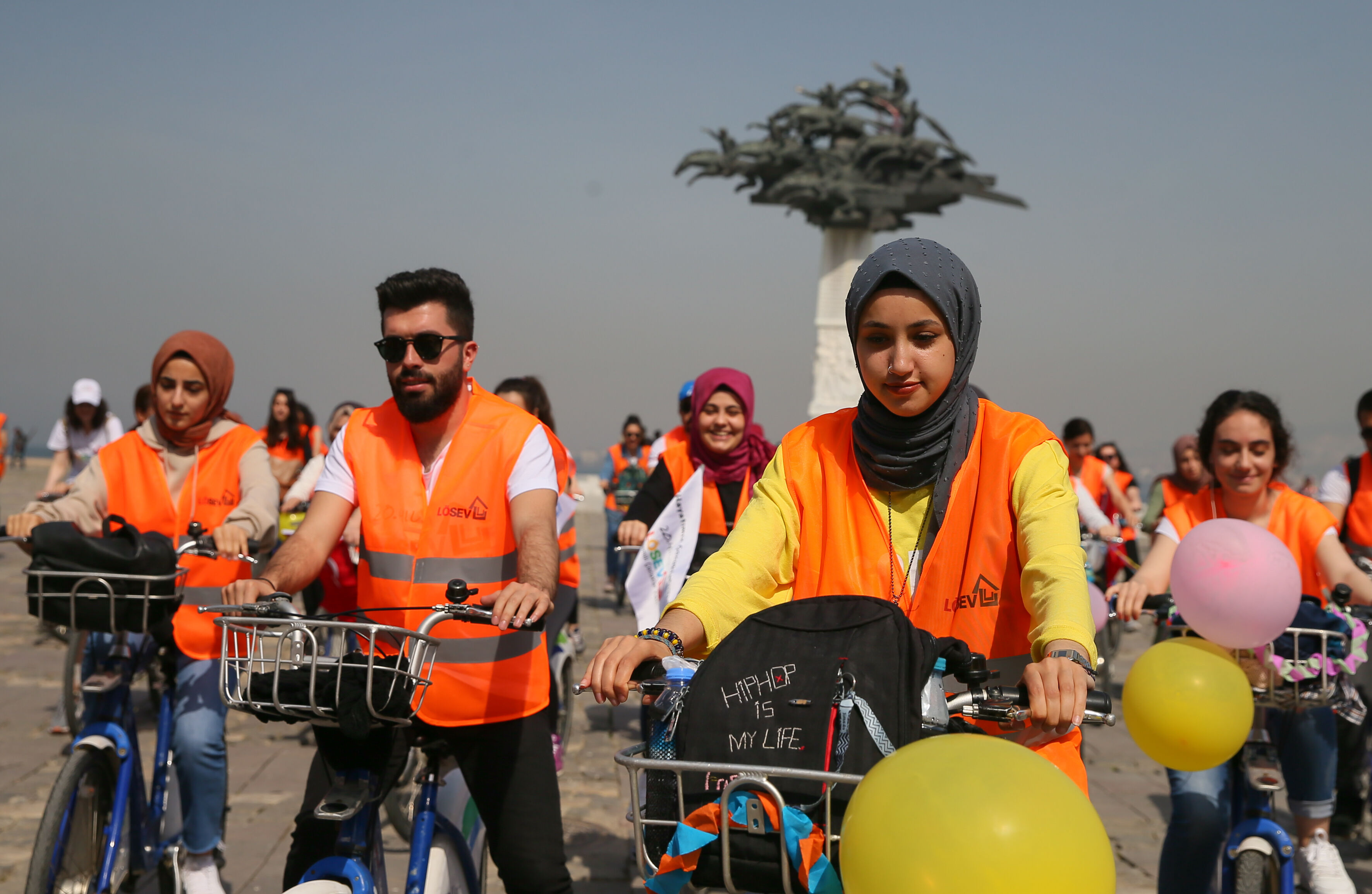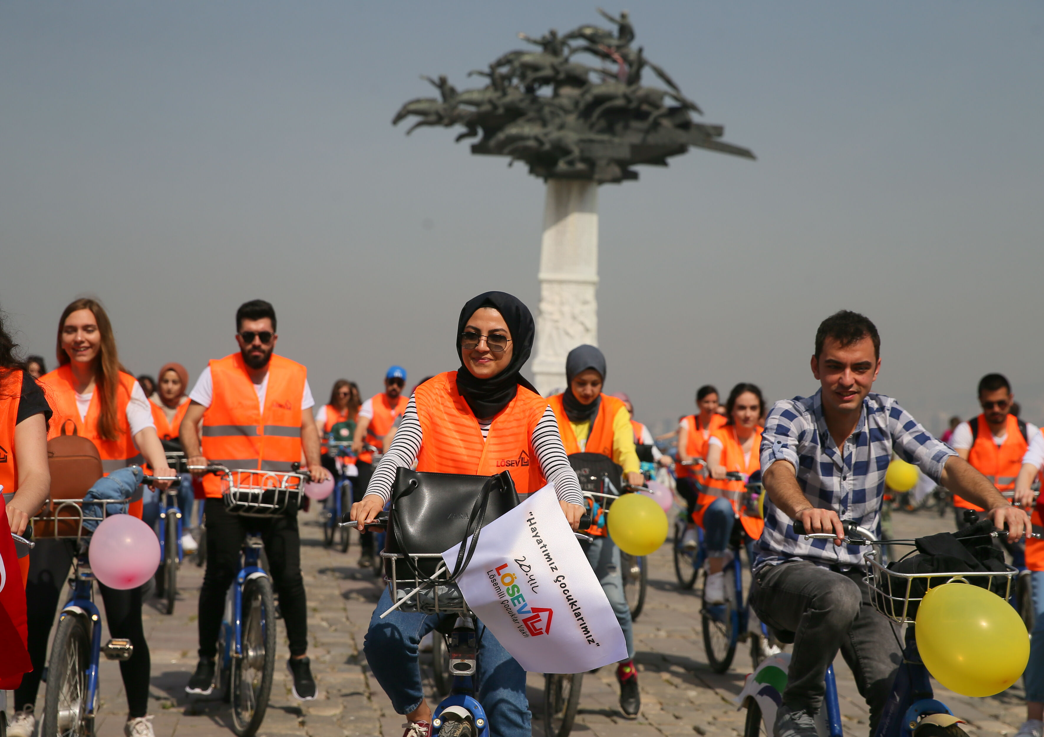20. yılımızda sağlıklı yaşamı çocuklarımız için pedal çevirerek geçtiğimiz sene kutladık. Bu sene 21. yılımızı yine aynı şekilde sağlıklı yaşamın önemini vurgusunu yaparak tüm gönüllülerimizle daha fazla çocuğumuza ulaşmak ve yardımlarımızı iletebilmek için bir farkındalık çalışması düzenliyoruz. Buradan başlayacağız, İnciraltı Kent Ormanı'na kadar tüm gönüllülerimizle pedal çevireceğiz. 100'ü aşkın gönüllümüz katıldı. LÖSEV'in 20 yıldır bu seviyeye gelebilmesinin sebebi karşılıksız bize destek veren gönüllülerimiz, bağışçılarımız." (AA)