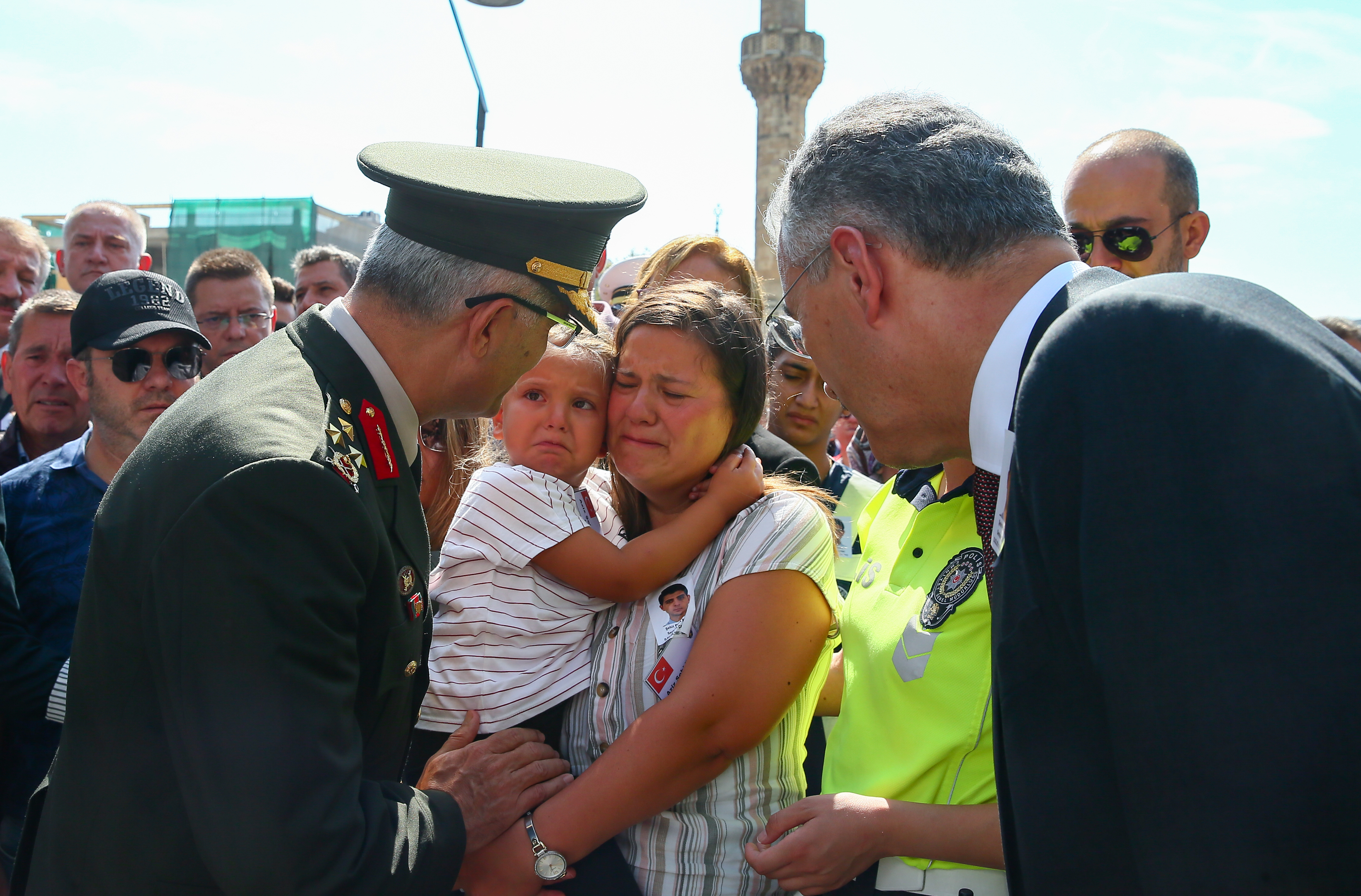 Şehit Çağlayan için saygı duruşunda bulunuldu, eşi ve yakınları taziyeleri kabul etti.