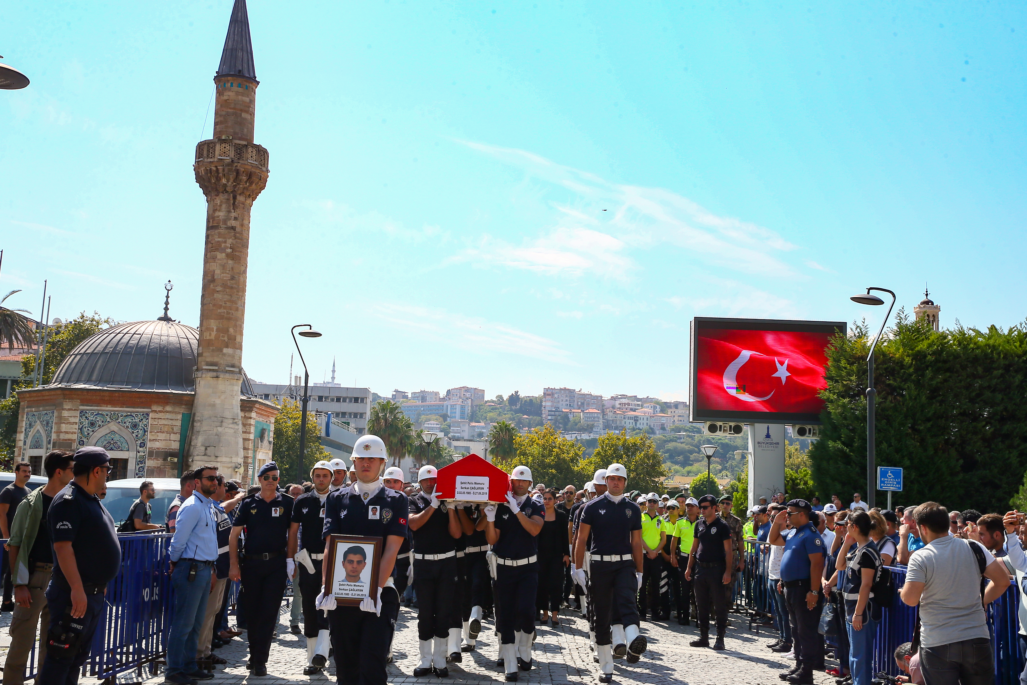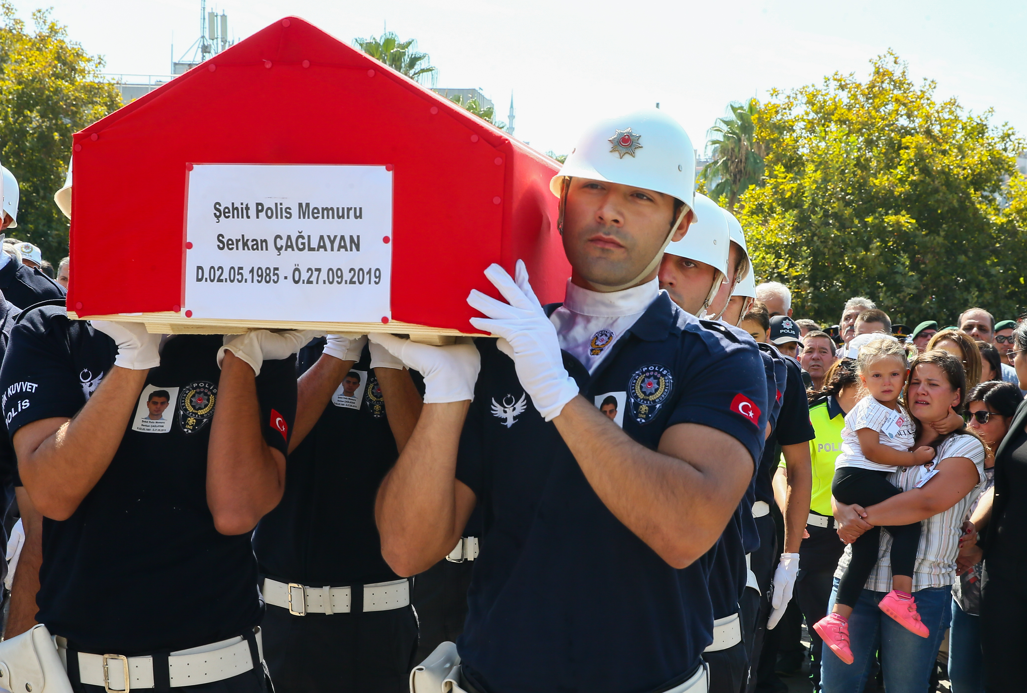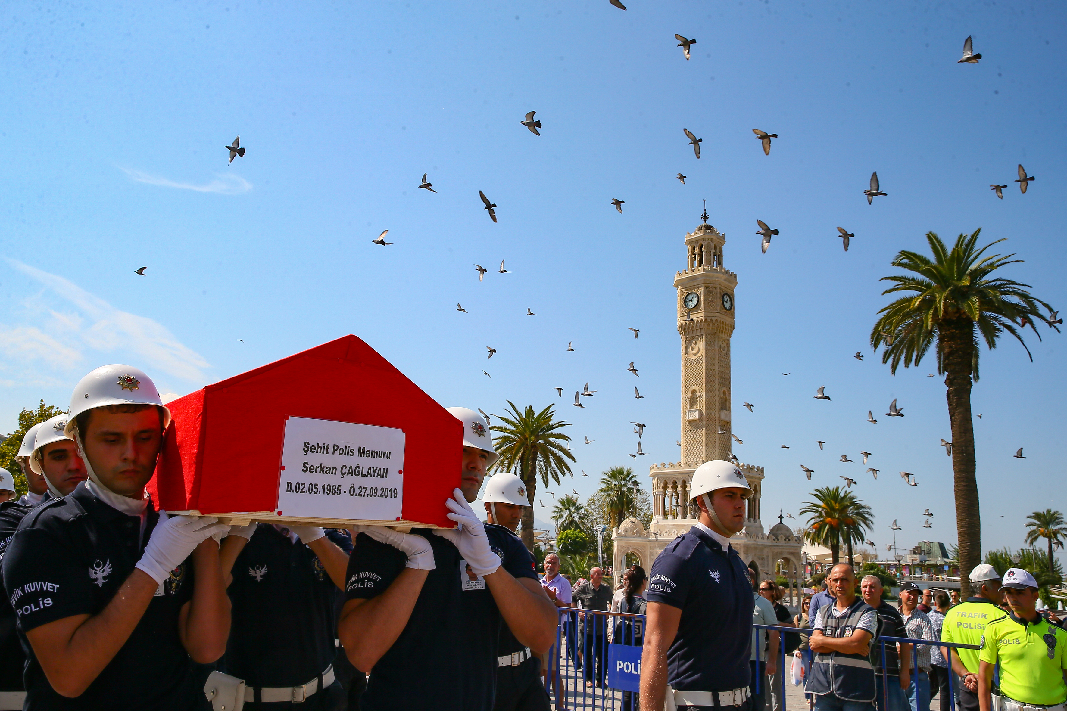 İzmir'in Urla ilçesinde hafif ticari aracın çarpması sonucu şehit olan trafik polisi Serkan Çağlayan'ın cenazesi, düzenlenen törenin ardından memleketi Ankara'ya gönderildi.