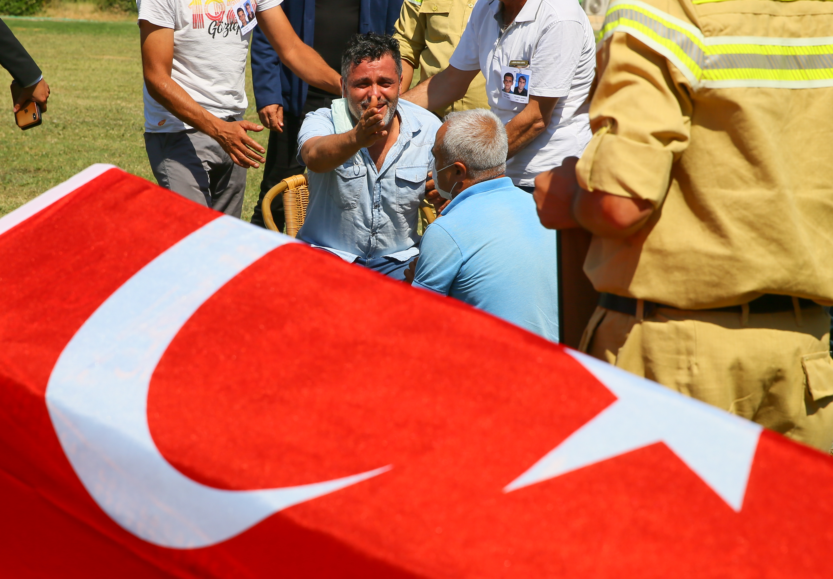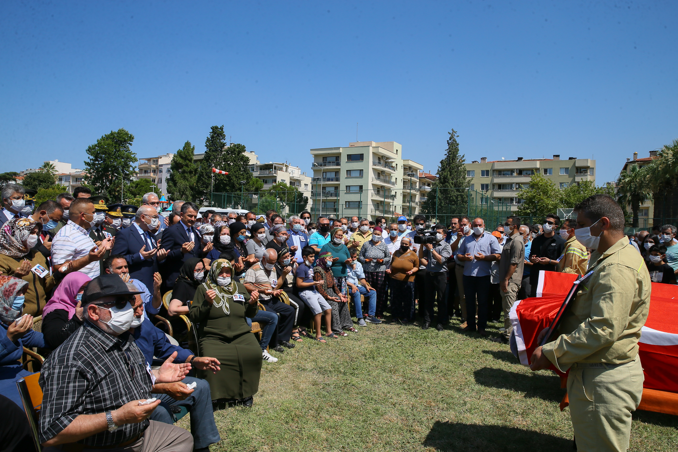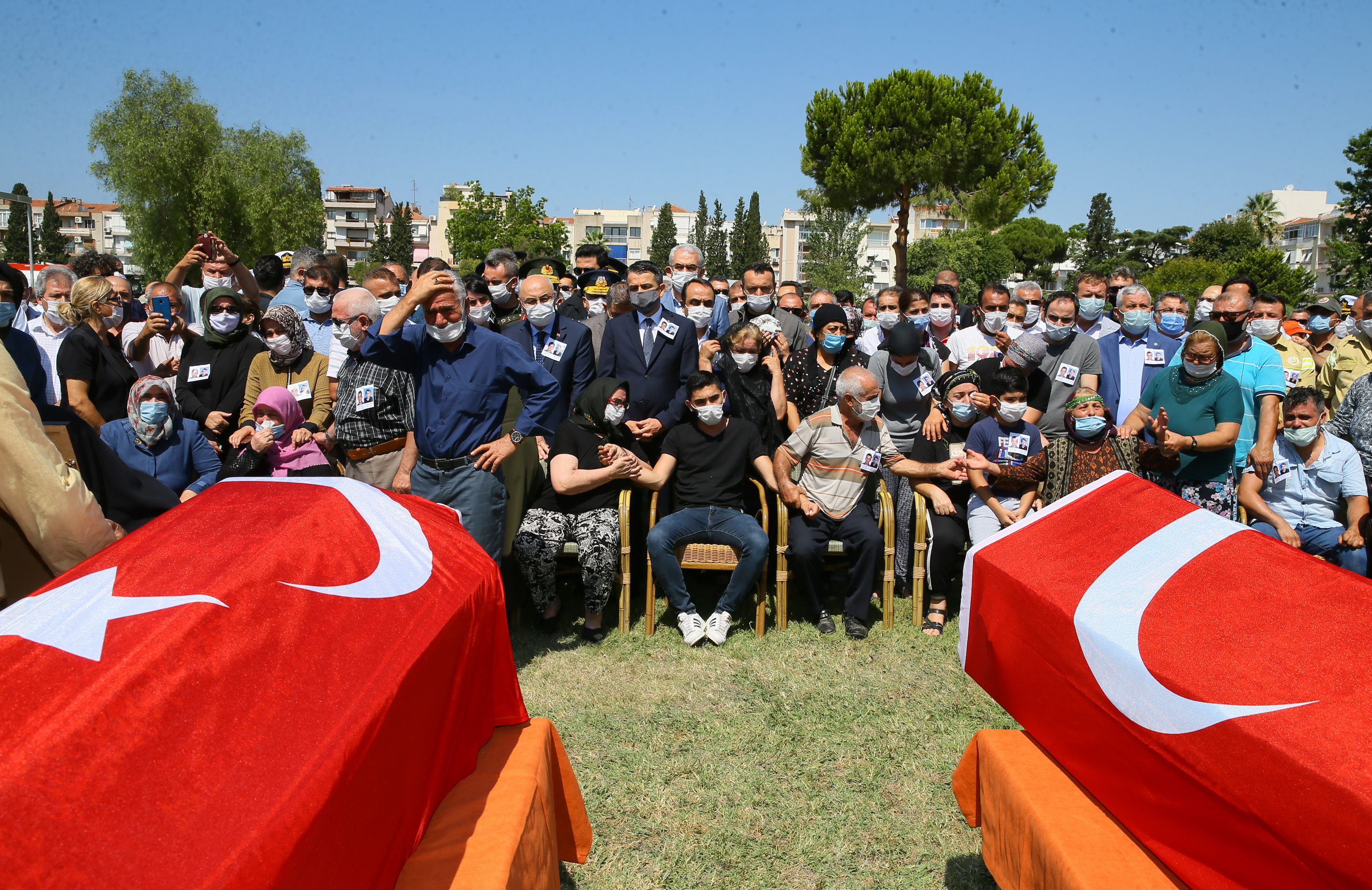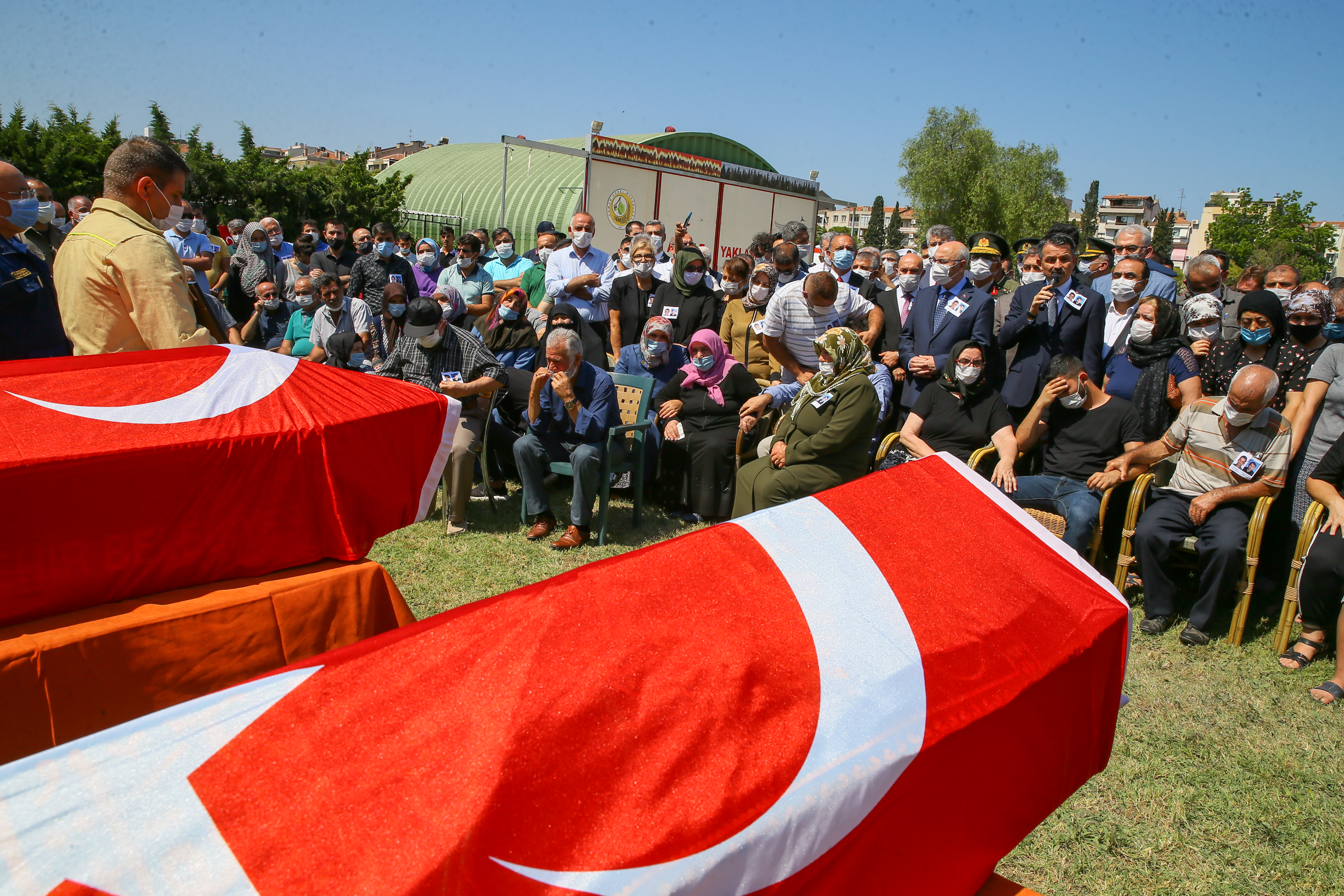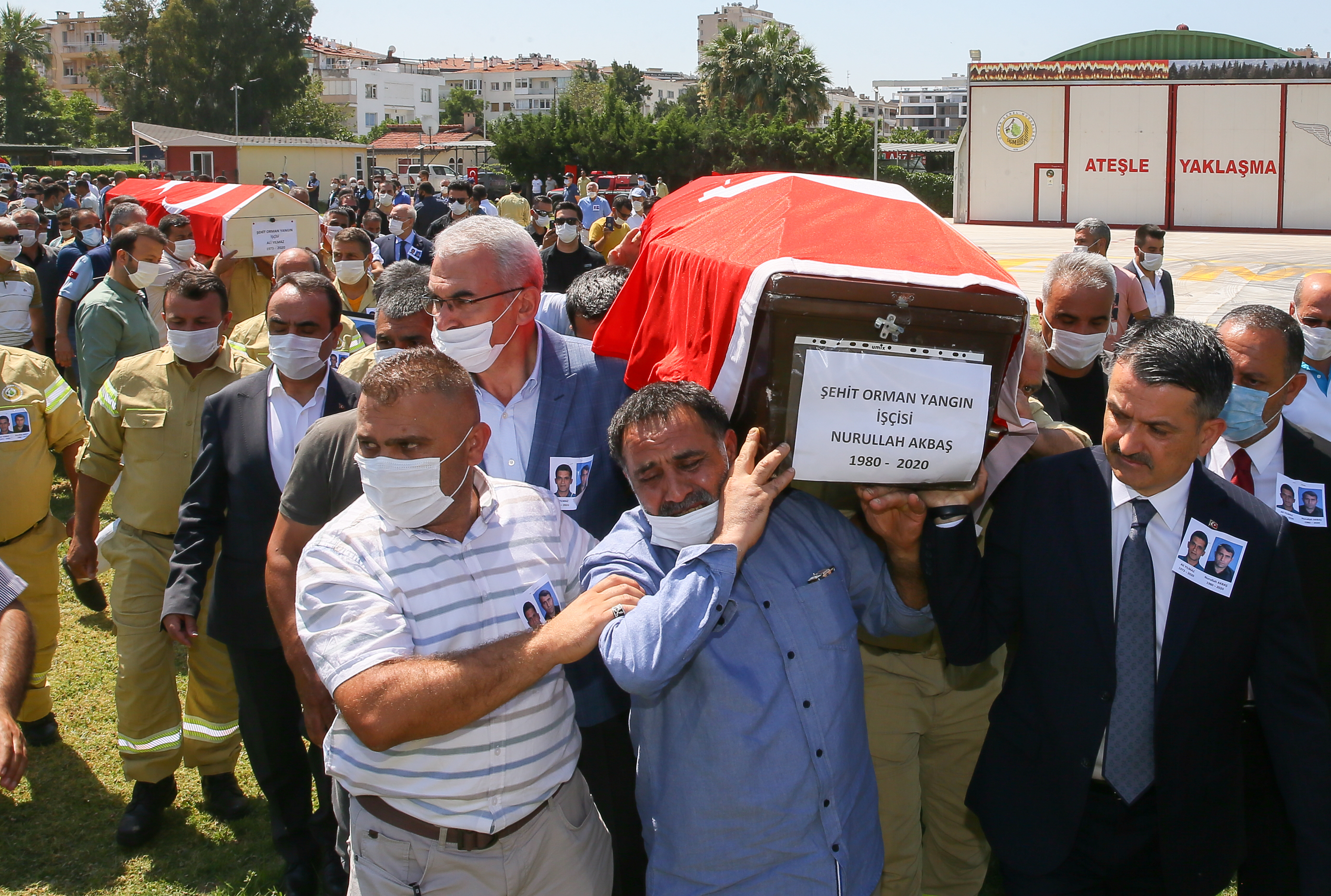 Tarım ve Orman Bakanı Bekir Pakdemirli'nin katılımıyla İzmir Orman Bölge Müdürlüğünde düzenlenen törende, Nurullah Akbaş (40) ve Ali Yılmaz'ın (47) Türk bayrağına sarılı tabutları, alana getirildi.