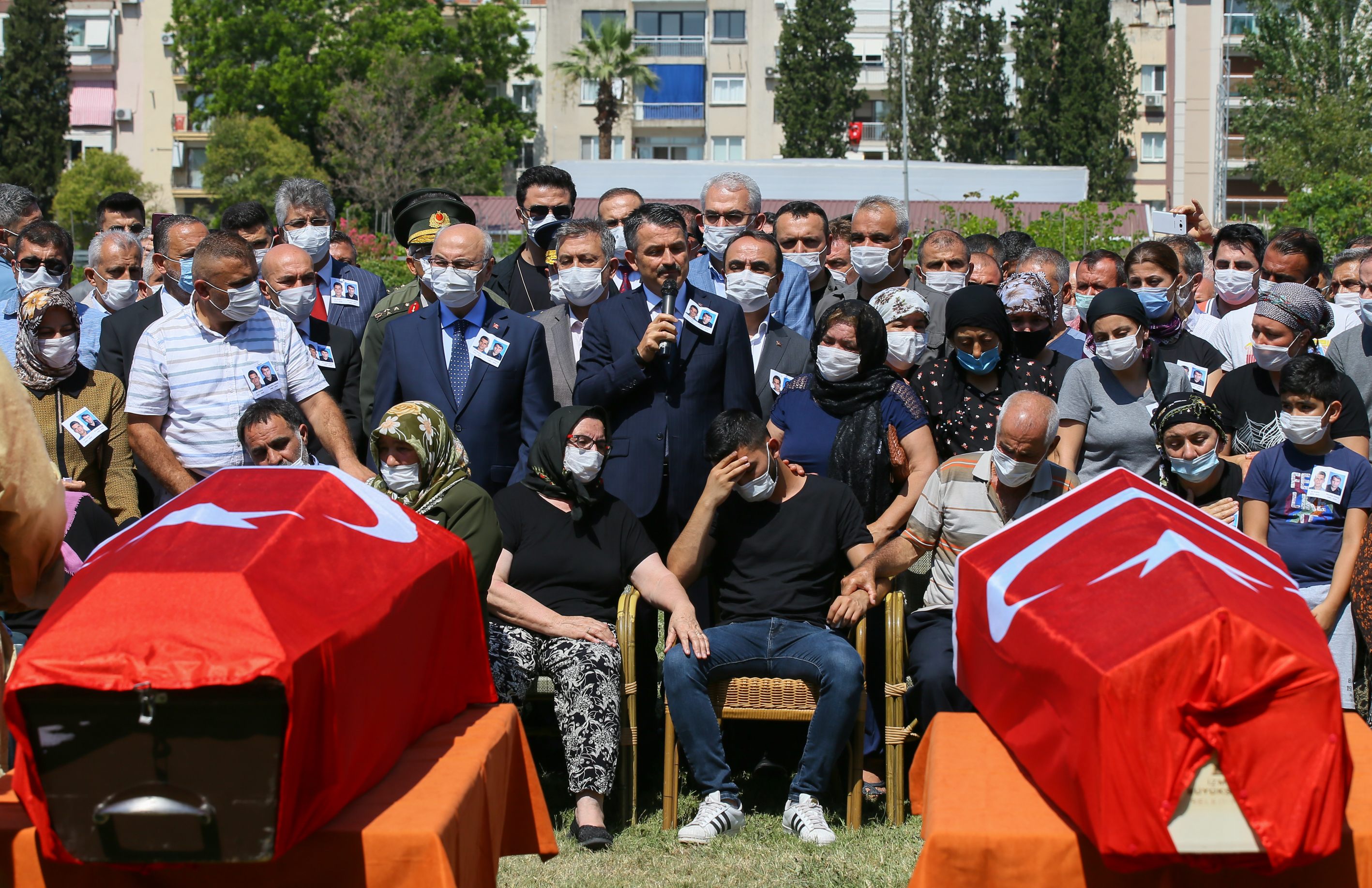Bu sırada personelin aileleri ve mesai arkadaşları gözyaşlarına hakim olamadı. Bakan Pakdemirli ve protokol üyeleri, Akbaş ve Yılmaz'ın ailelerine başsağlığı diledi.