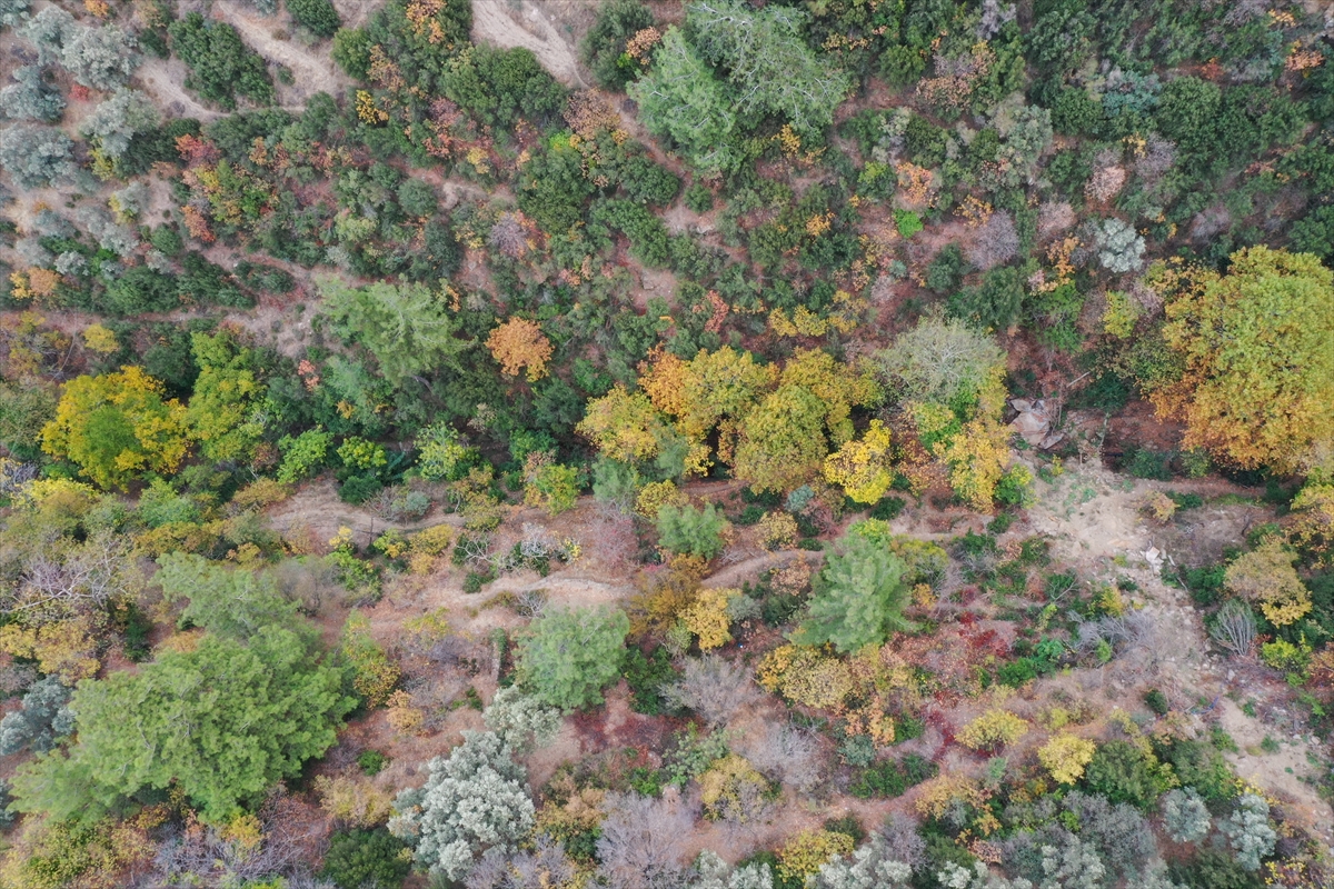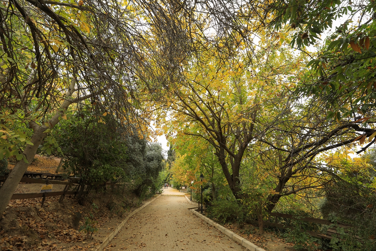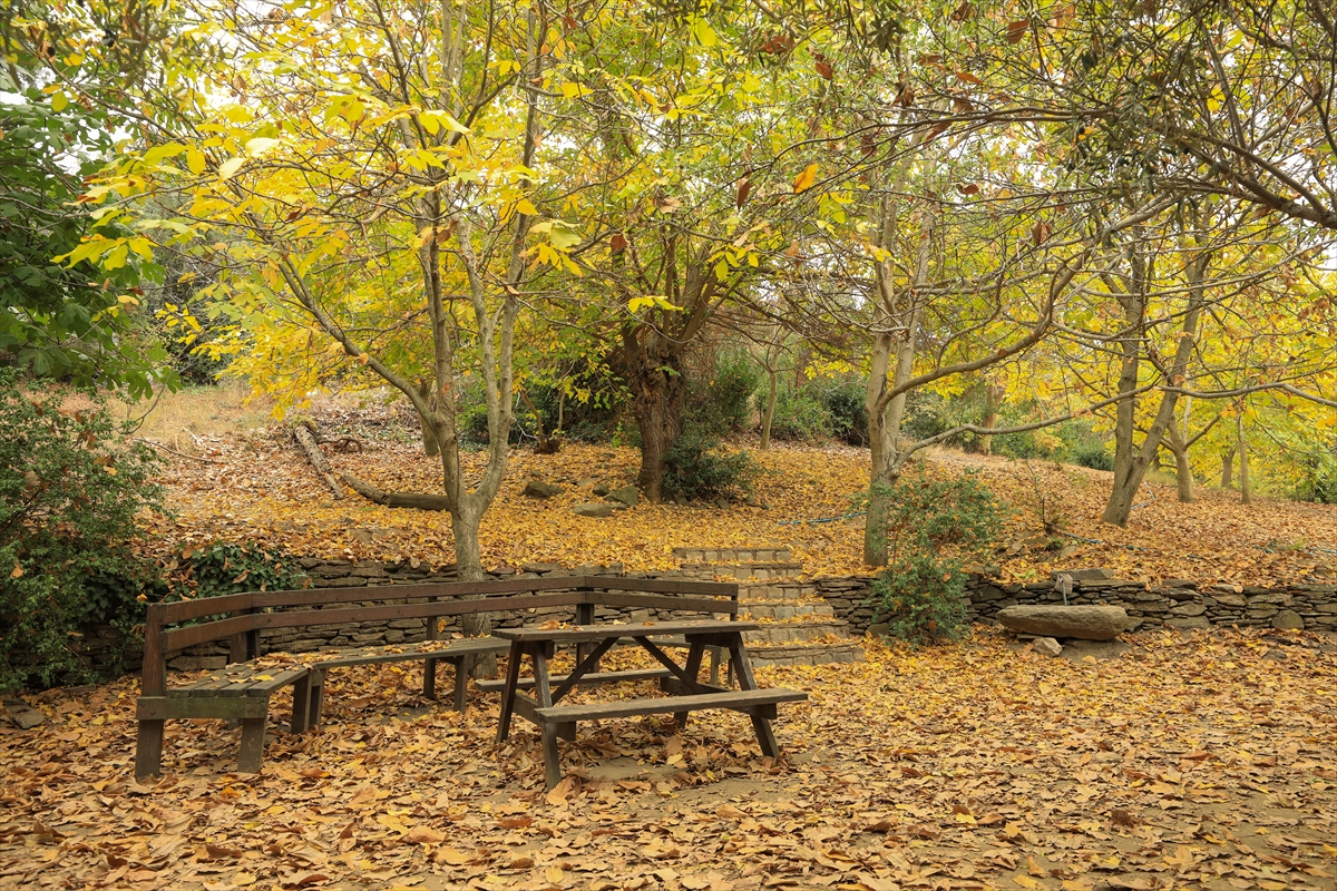 İzmir'de tarihi ve doğal güzellikleriyle öne çıkan Tire ilçesinde sonbahar ağaçları sarı ve kahverenginin farklı tonlarına büründü. İlçenin eteklerinde kurulduğu Güme Dağında yer alan Arap Pınarı Mesire Alanı'nda da sararıp dökülen yapraklar güzel görüntüler oluşturdu.