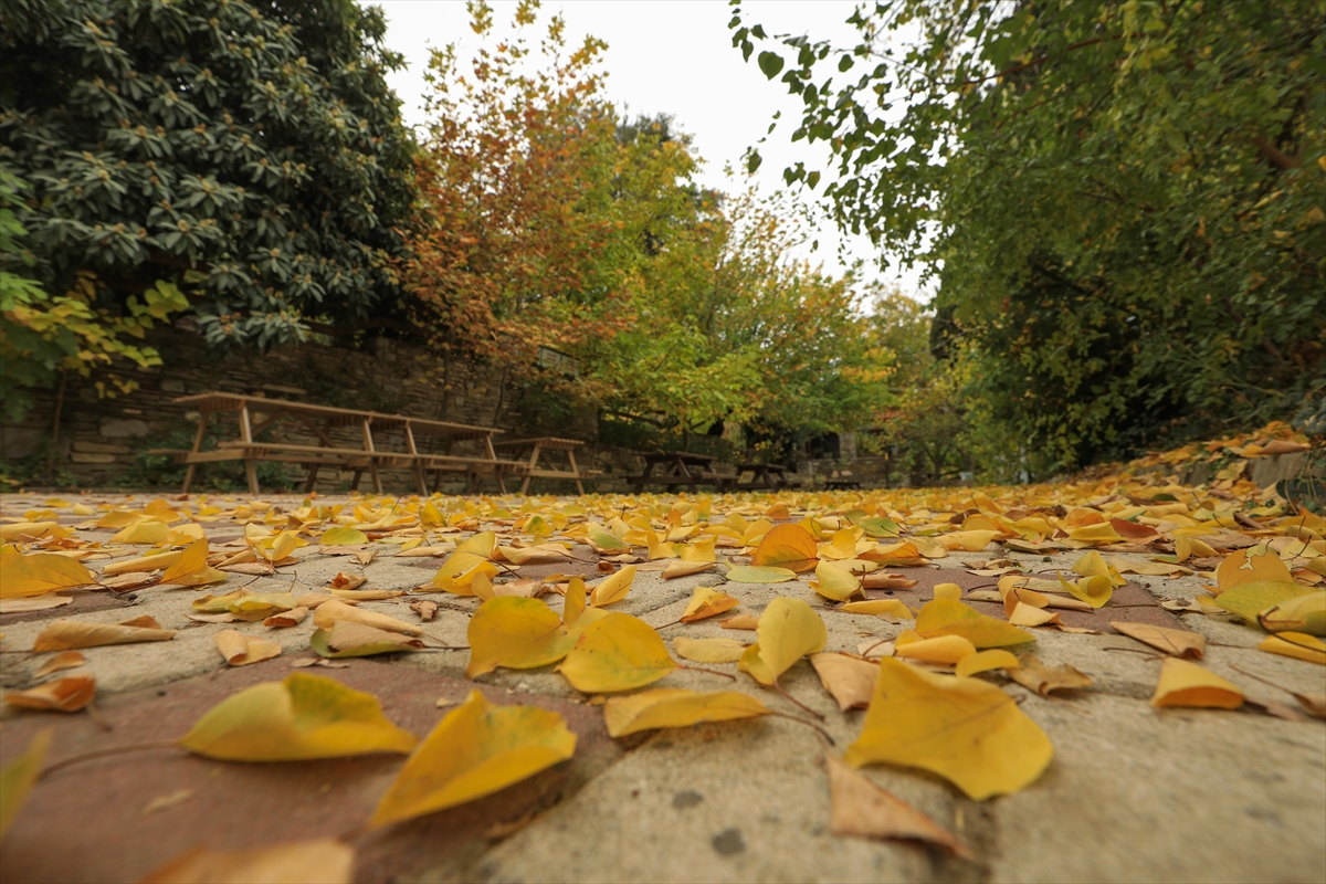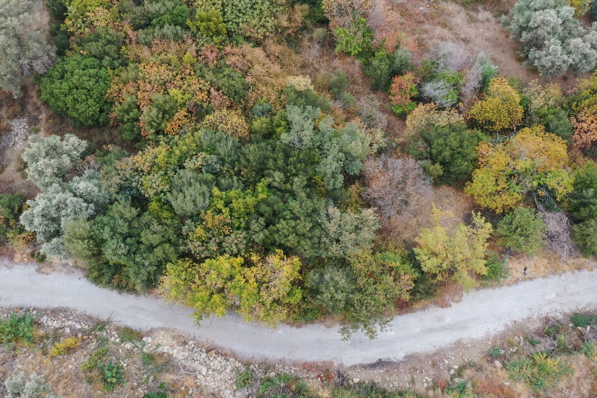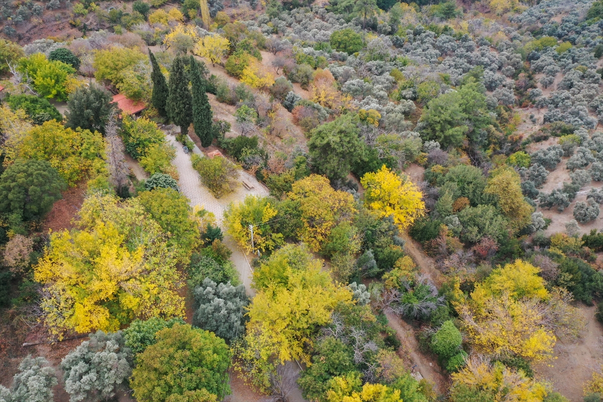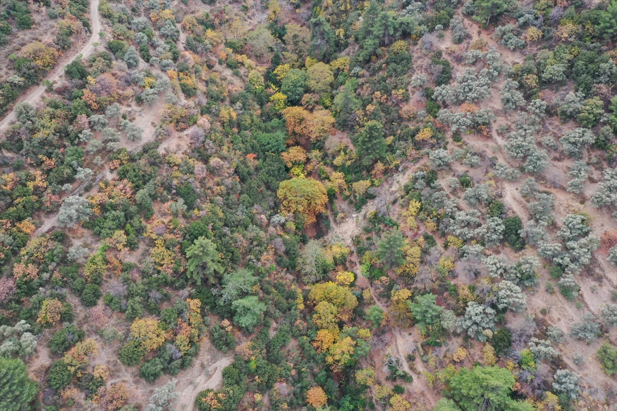 İzmir'de tarihi ve doğal güzellikleriyle öne çıkan Tire ilçesinde sonbahar ağaçları sarı ve kahverenginin farklı tonlarına büründü. İlçenin eteklerinde kurulduğu Güme Dağında yer alan Arap Pınarı Mesire Alanı'nda da sararıp dökülen yapraklar güzel görüntüler oluşturdu.