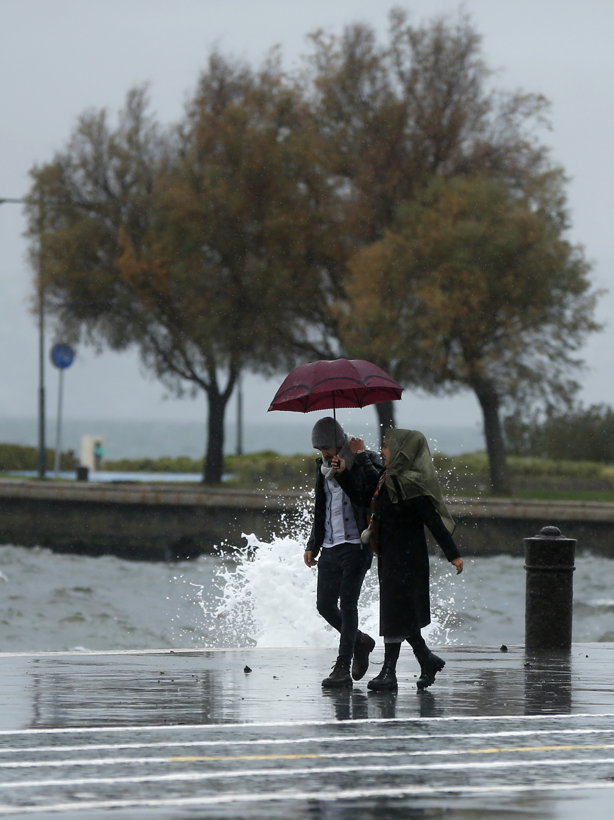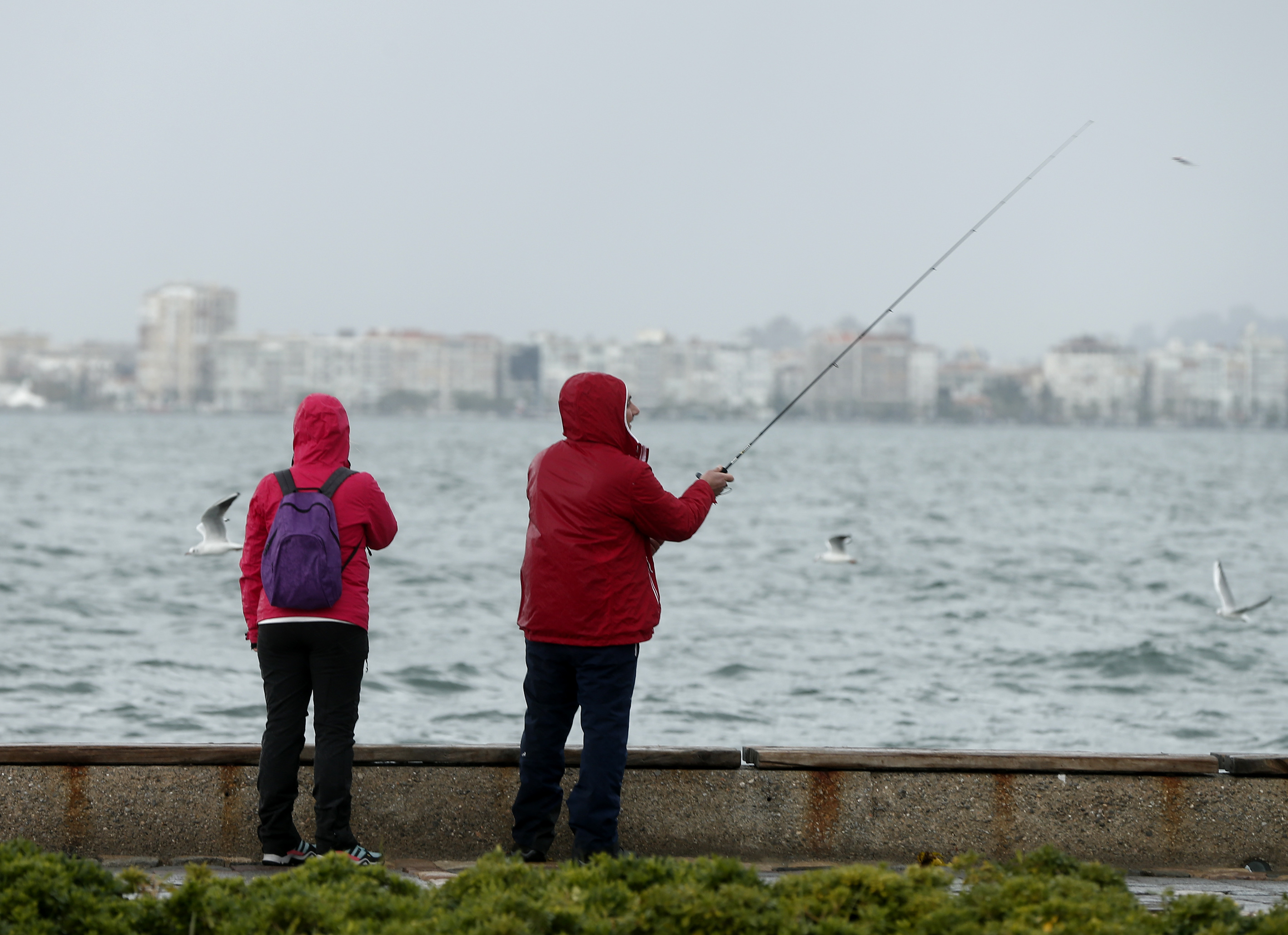 İzmir'de kent genelinde sağanak yağış aralıklarla etkili oldu. Bazı vatandaşlar yağan yağmura aldırış etmeden balık tutmaya devam etti.