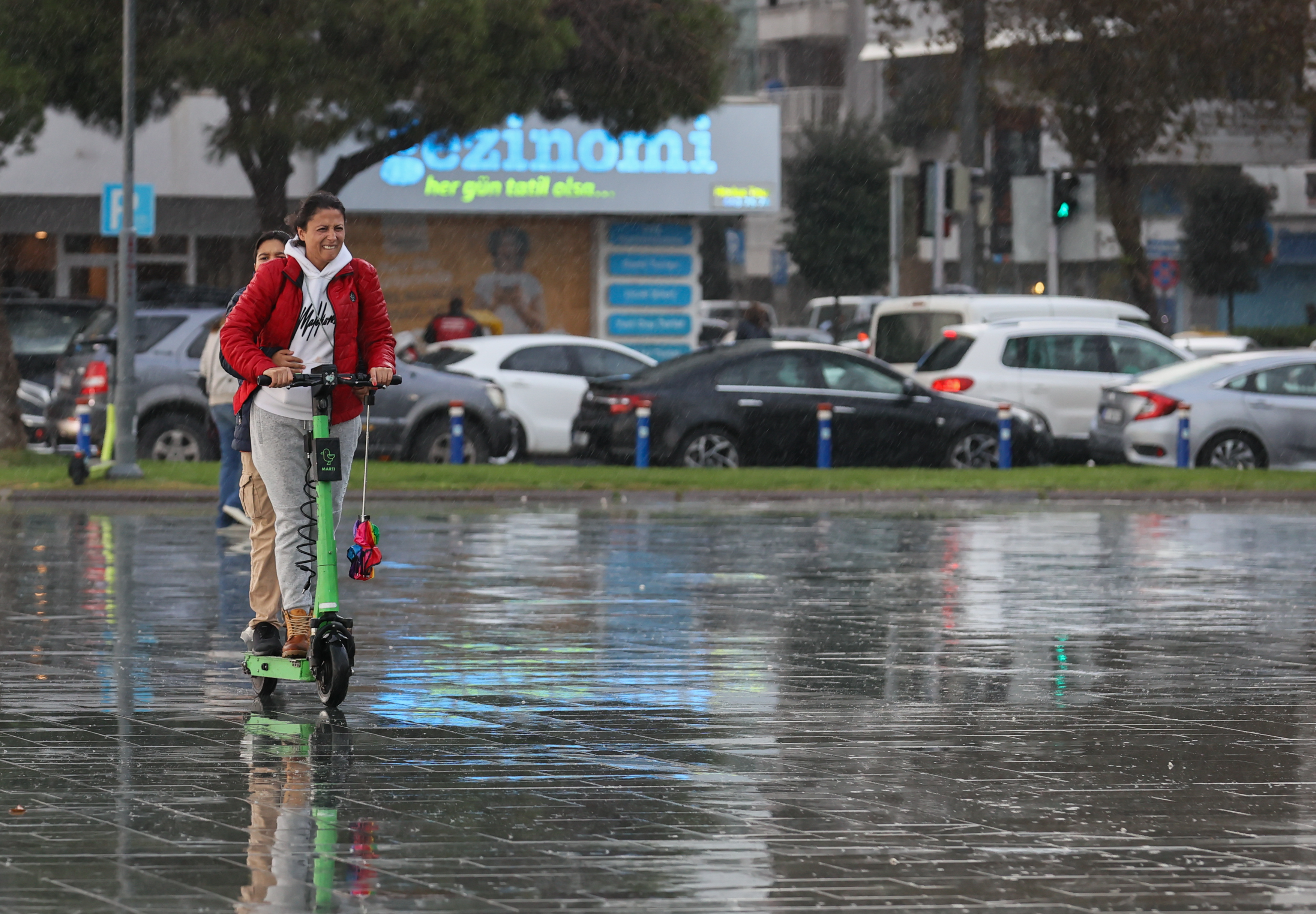 İzmir Meteoroloji 2. Bölge Müdürlüğünden alınan bilgiye göre, merkez ilçelere "miktar bırakan" yağışın en son 31 Ağustos'ta görüldüğü İzmir'de kent genelinde sağanak etkili oluyor.