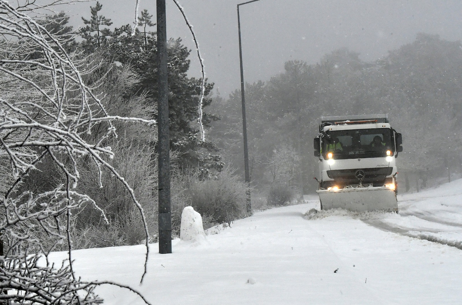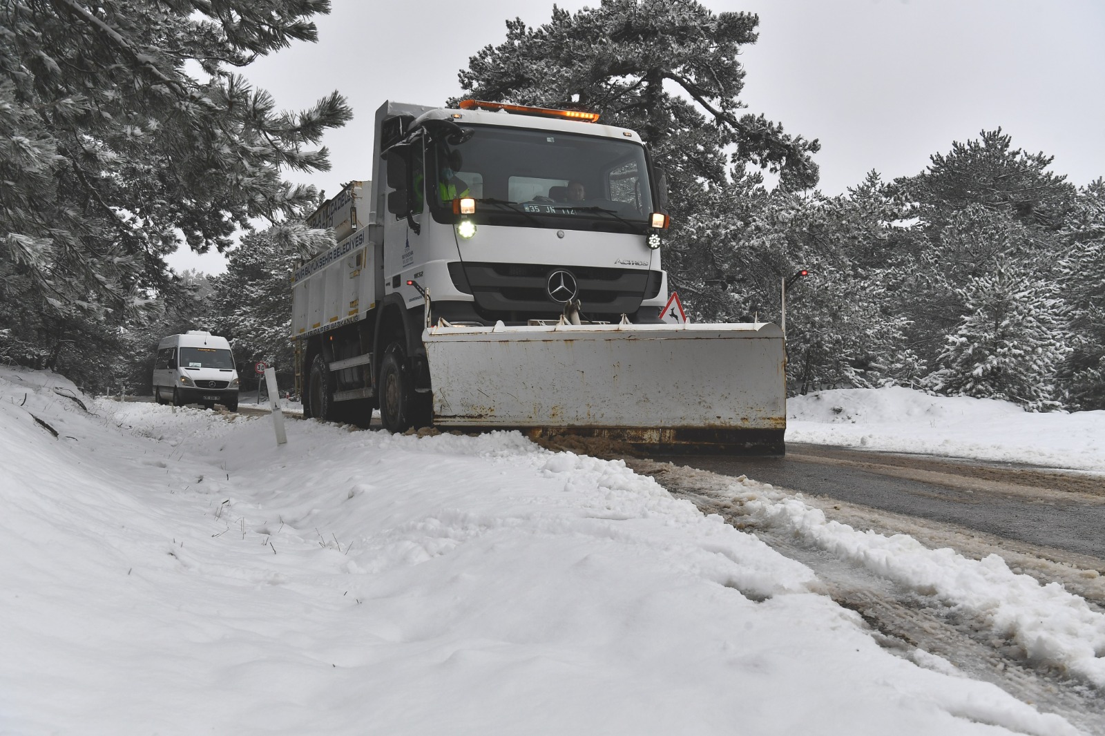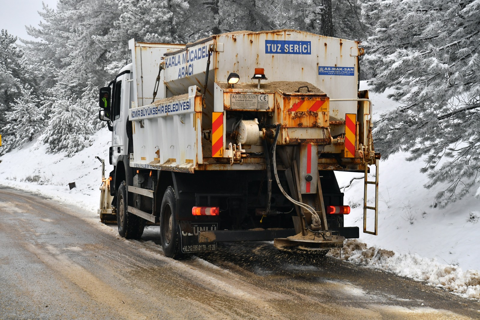 Karayolları ve İzmir Büyükşehir Belediyesi ekipleri bölgede kar küreme ve tuzlama çalışması yapıyor.