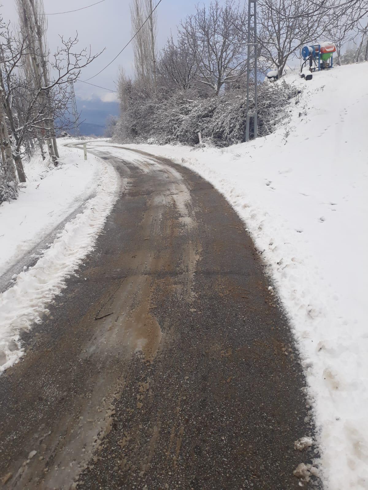 Kar kalınlığının bazı yerlerde 40 santimetreye kadar ulaştığı ilçede belediye ekipleri yolları açık tutmak için çalışma yürütüyor.