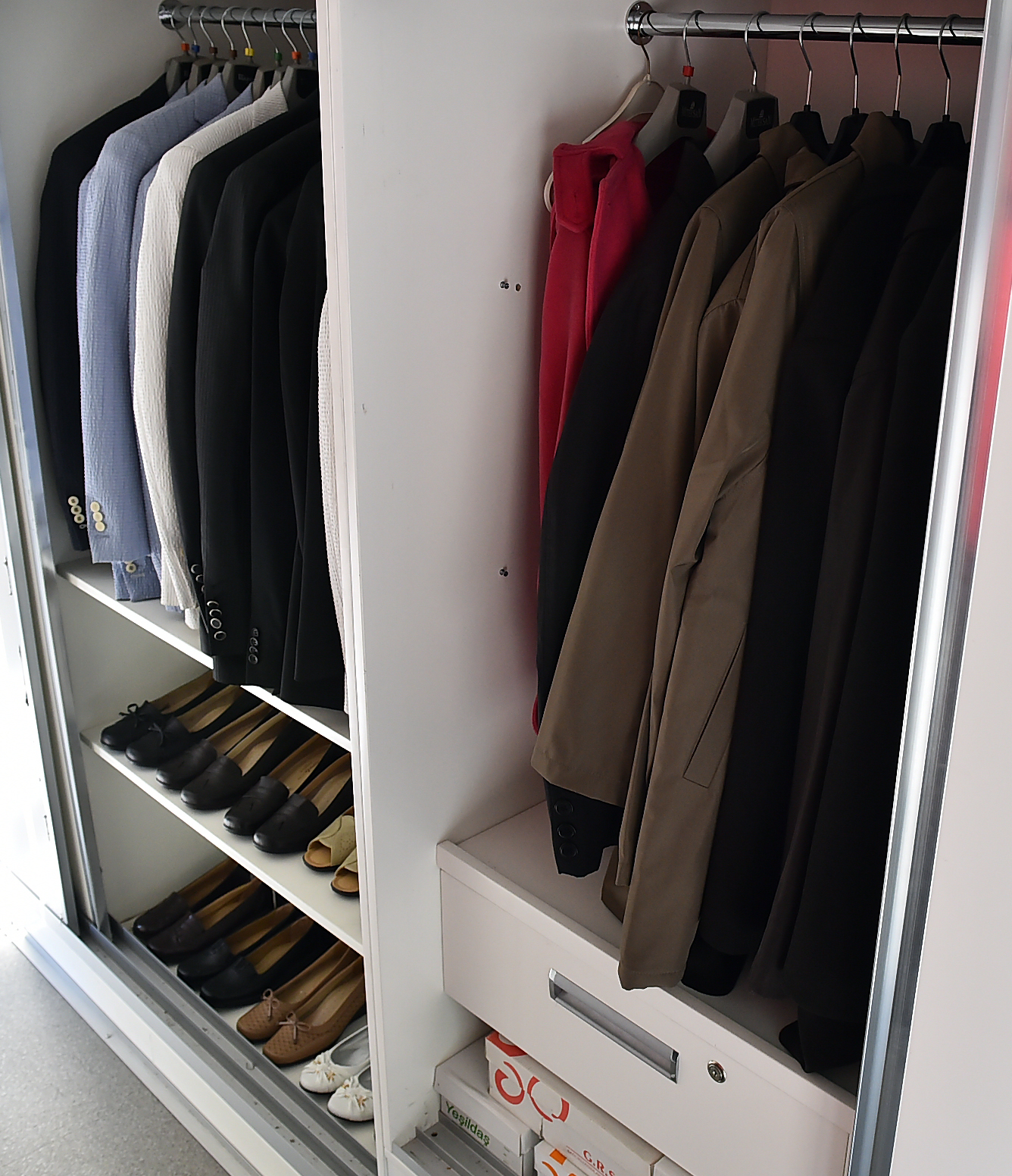 Engelli rampası da bulunan ve gardırop şeklinde dizayn edilen otobüste vatandaşlar, kendi bedenlerine ve zevklerine uygun kıyafetleri seçebilecek
