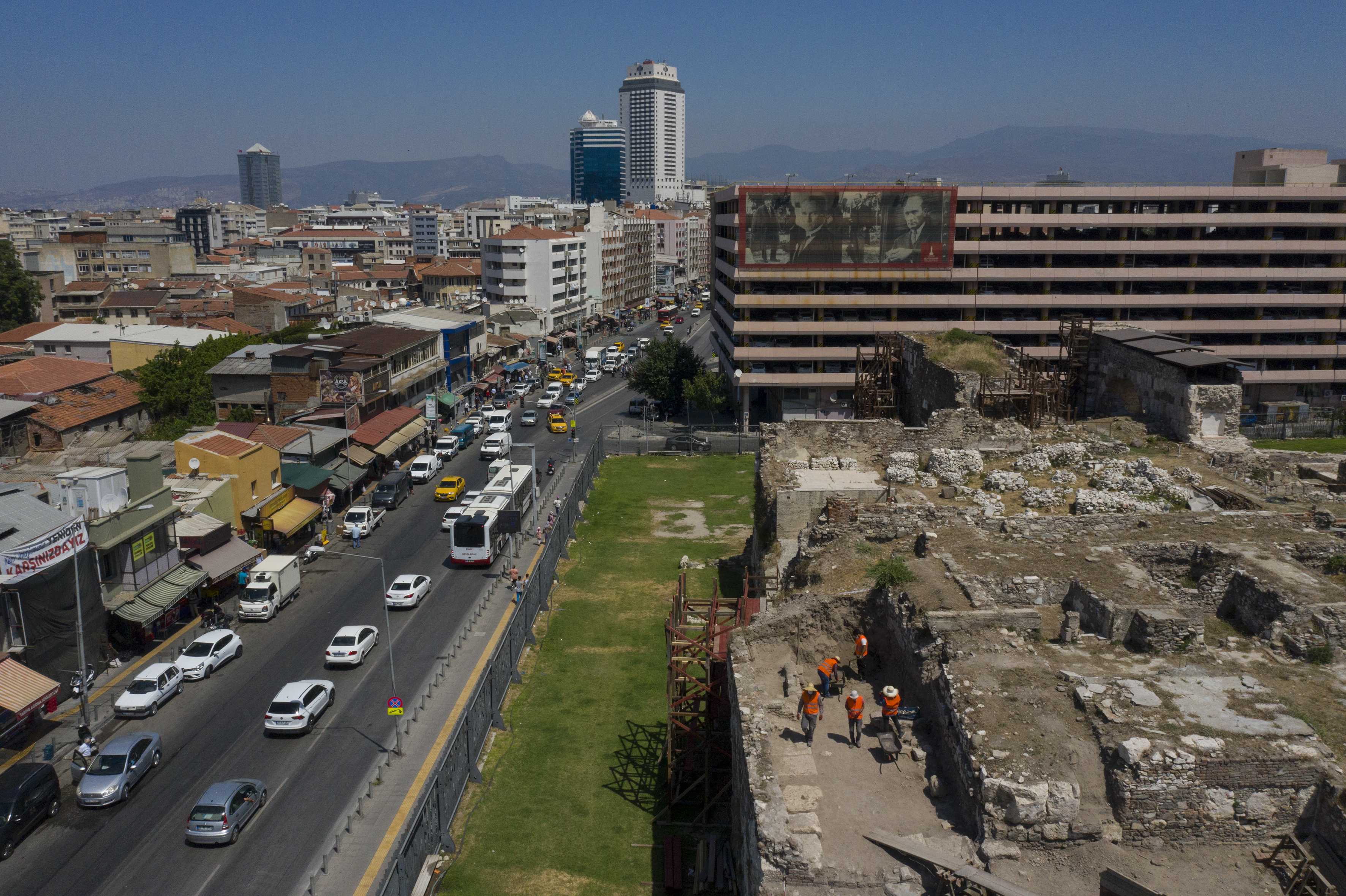 Kazı Heyeti Başkanı Doç. Dr. Akın Ersoy, Smyrna Antik Kenti agorasındaki yaşantının sadece Helenistik ve Roma dönemlerine ait olmadığını, iki kültürü de birlikte sergilemek için çalışmalar yaptıklarını ifade etti. (AA)