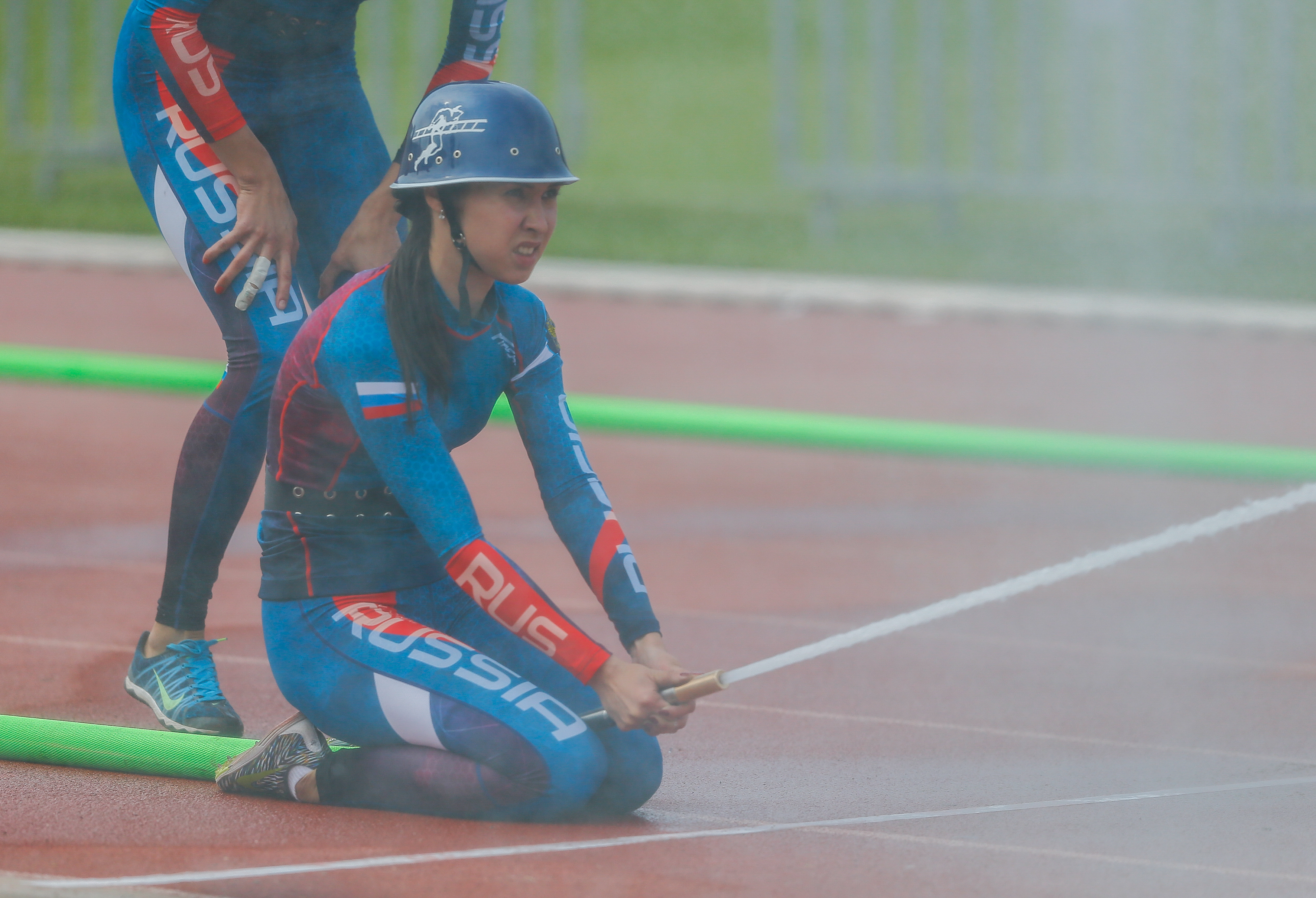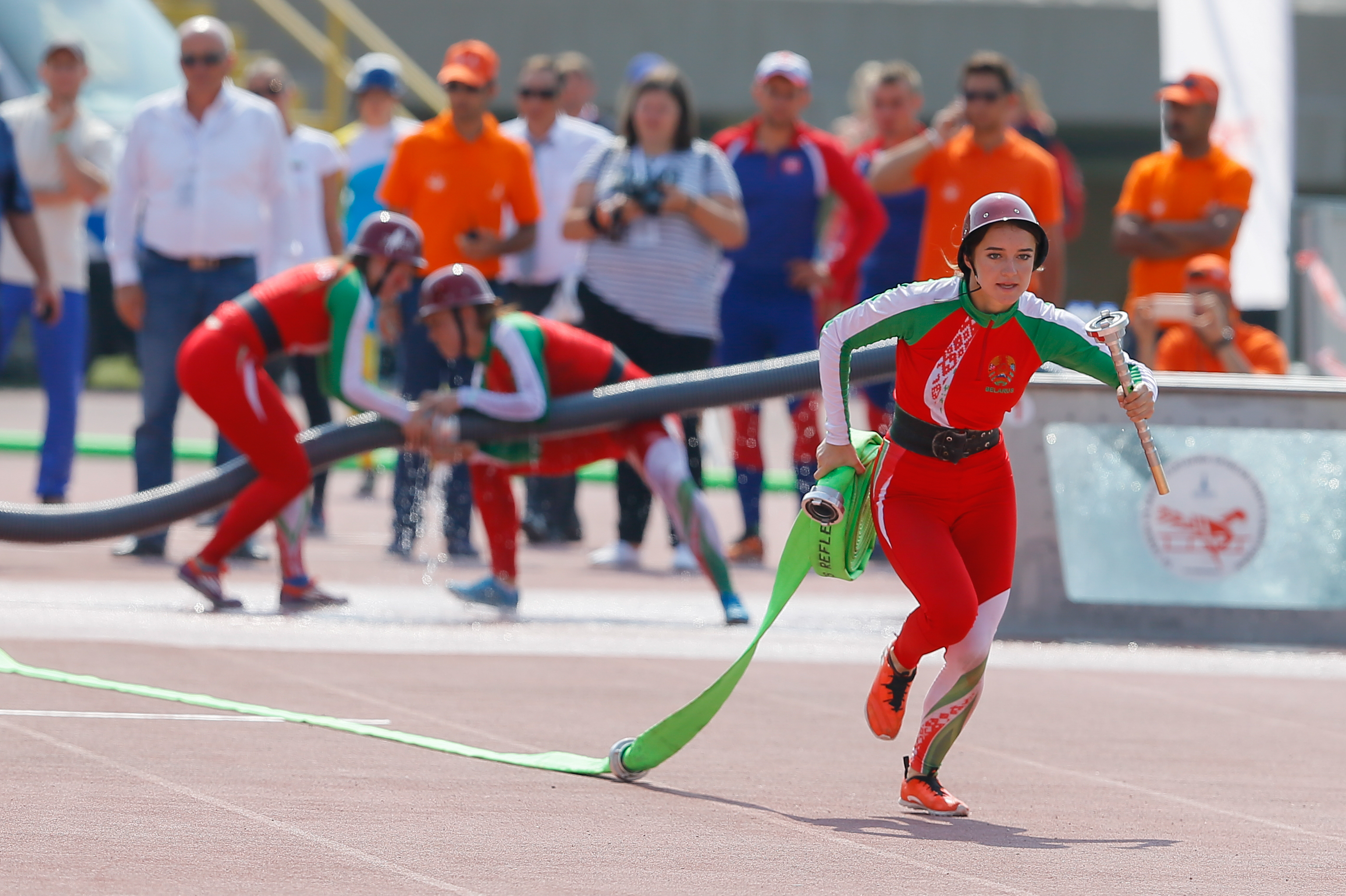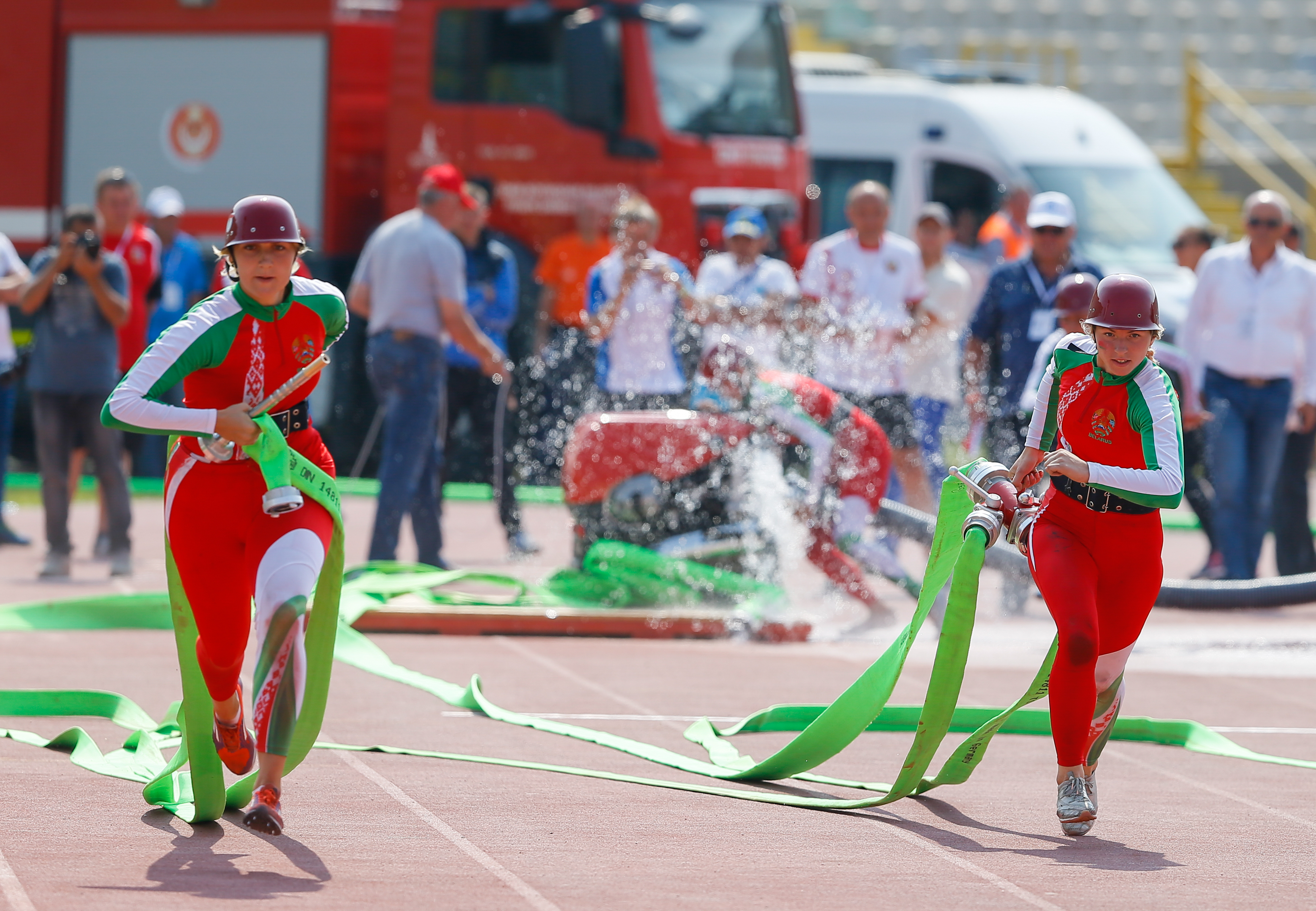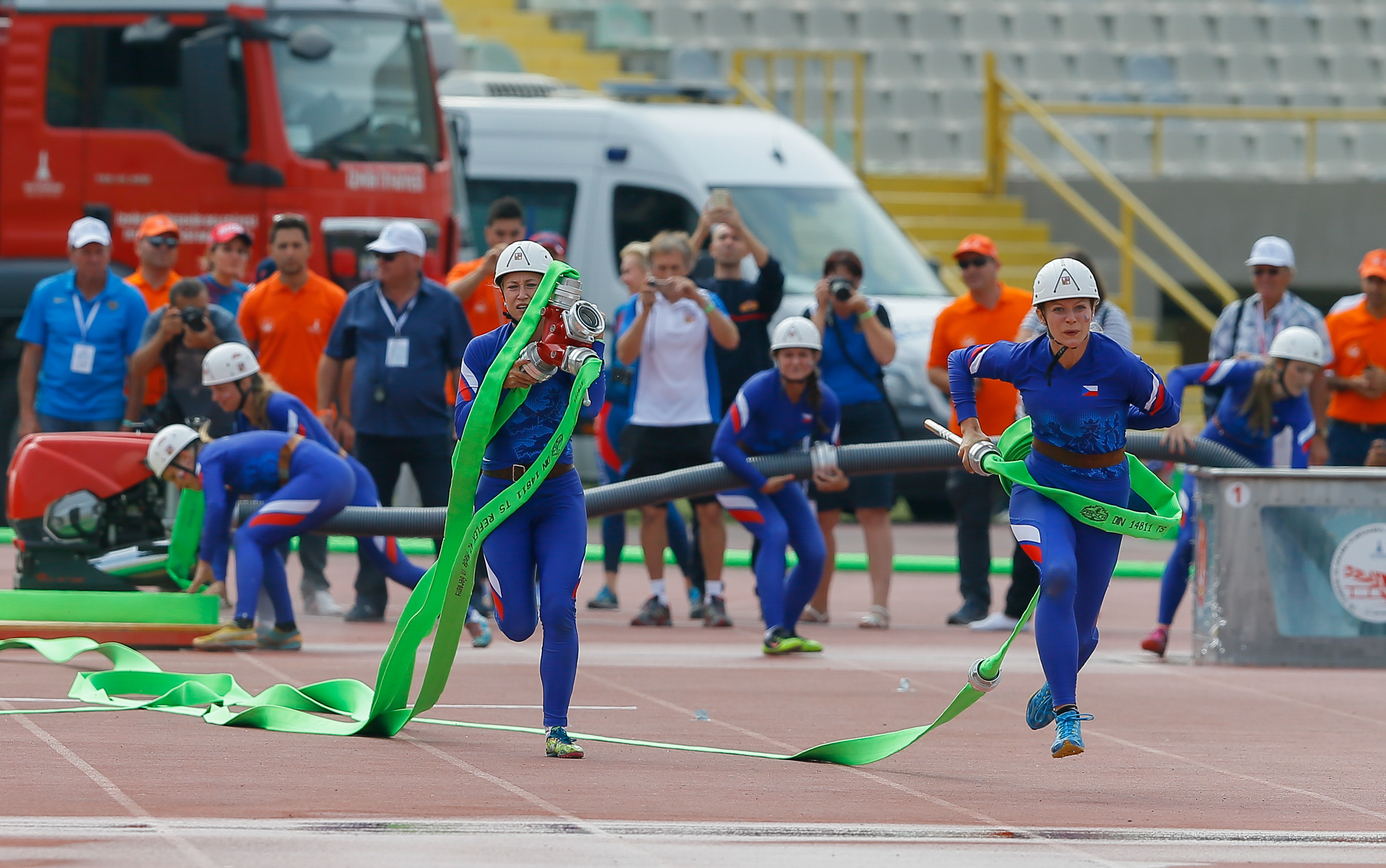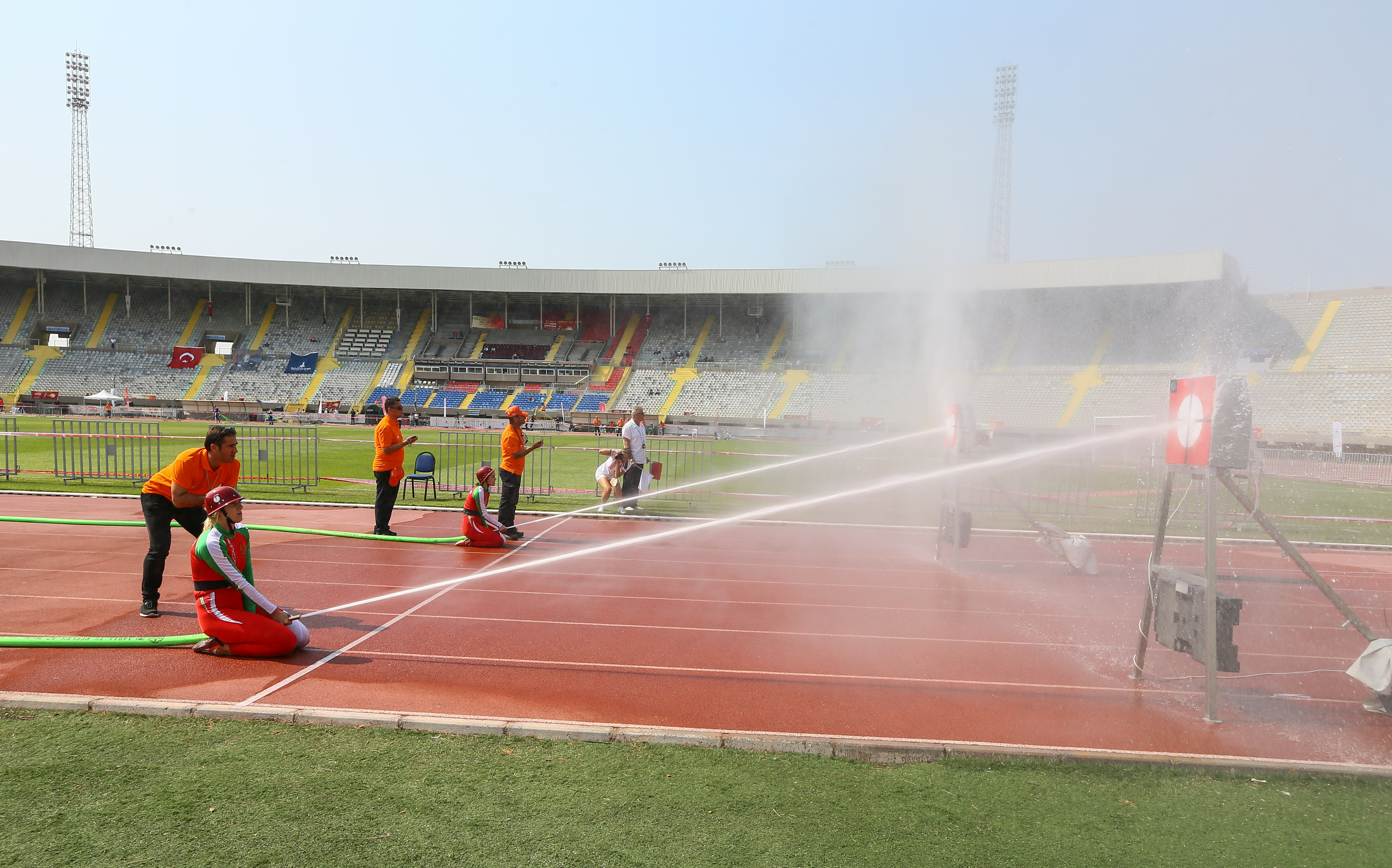 Yangın ve Kurtarma Sporları Dünya Şampiyonası, kadınlar ve erkeklerde yapılan motopomp etabıyla sona erdi.