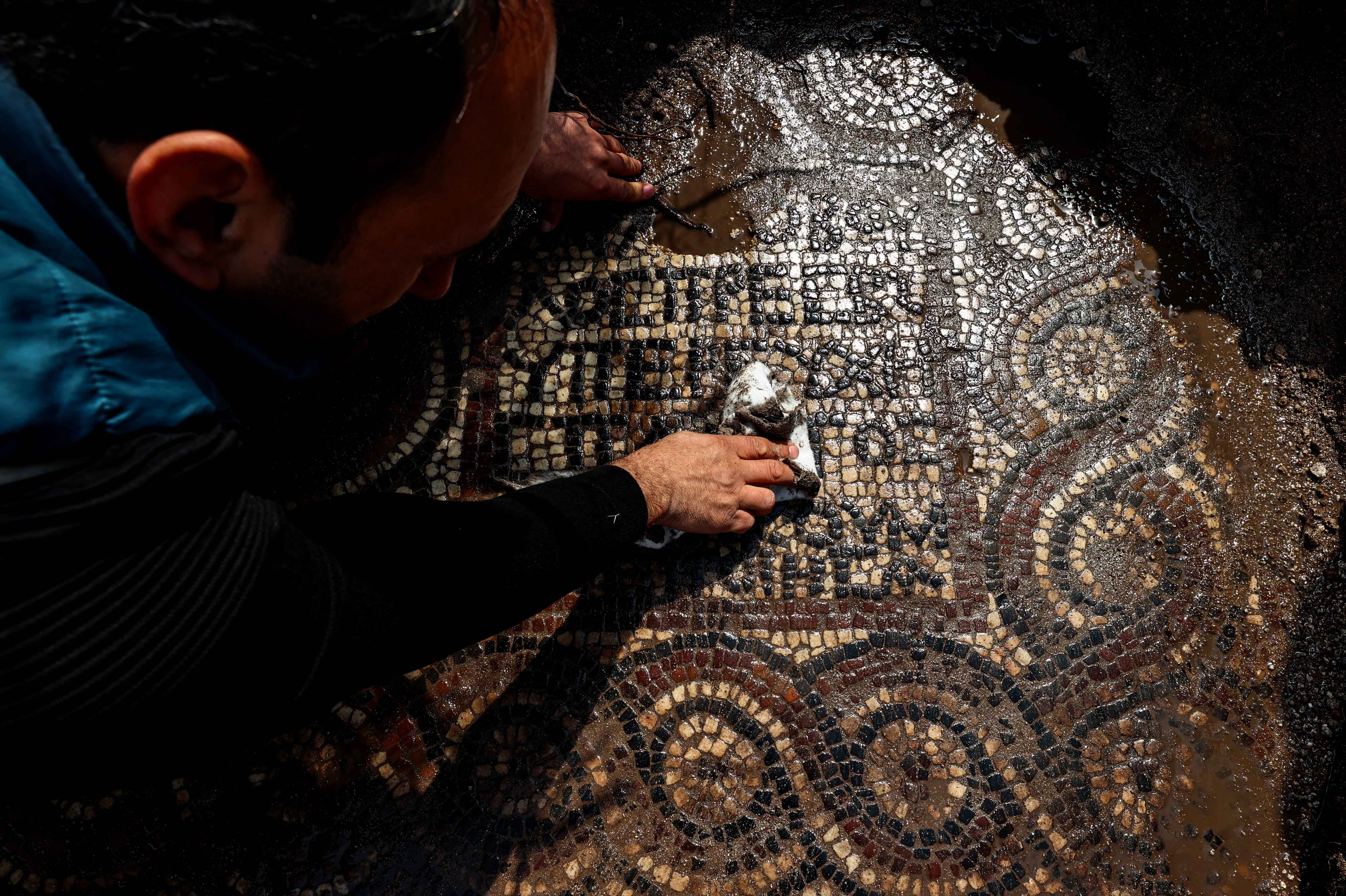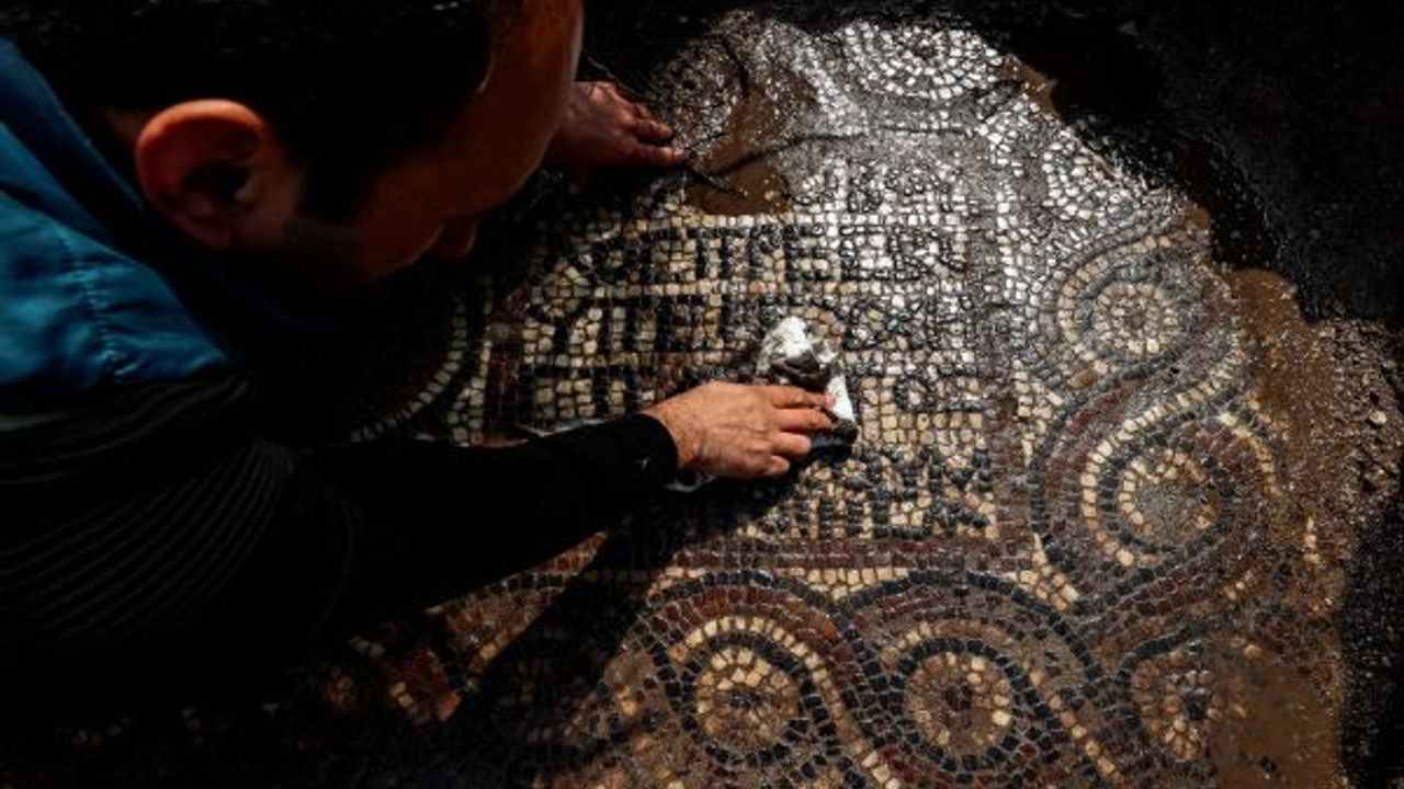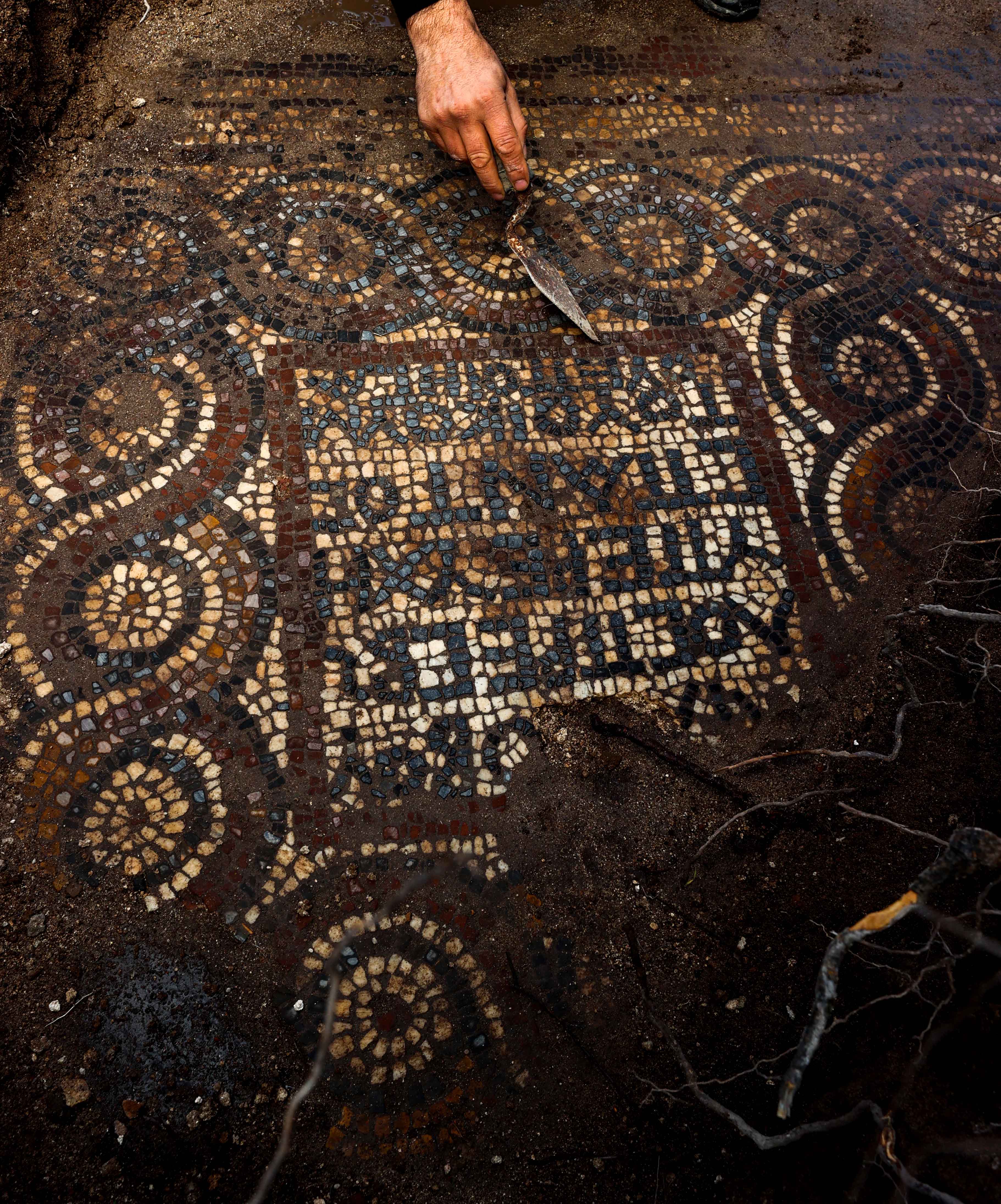 Sarmaşık motifleriyle süslenmiş eserin üstündeki, mozaiği "kilisenin ihtiyar heyetinden bir erkeğin ailesinin esenliği için yaptırdığına" ilişkin yazı dikkati çekti.