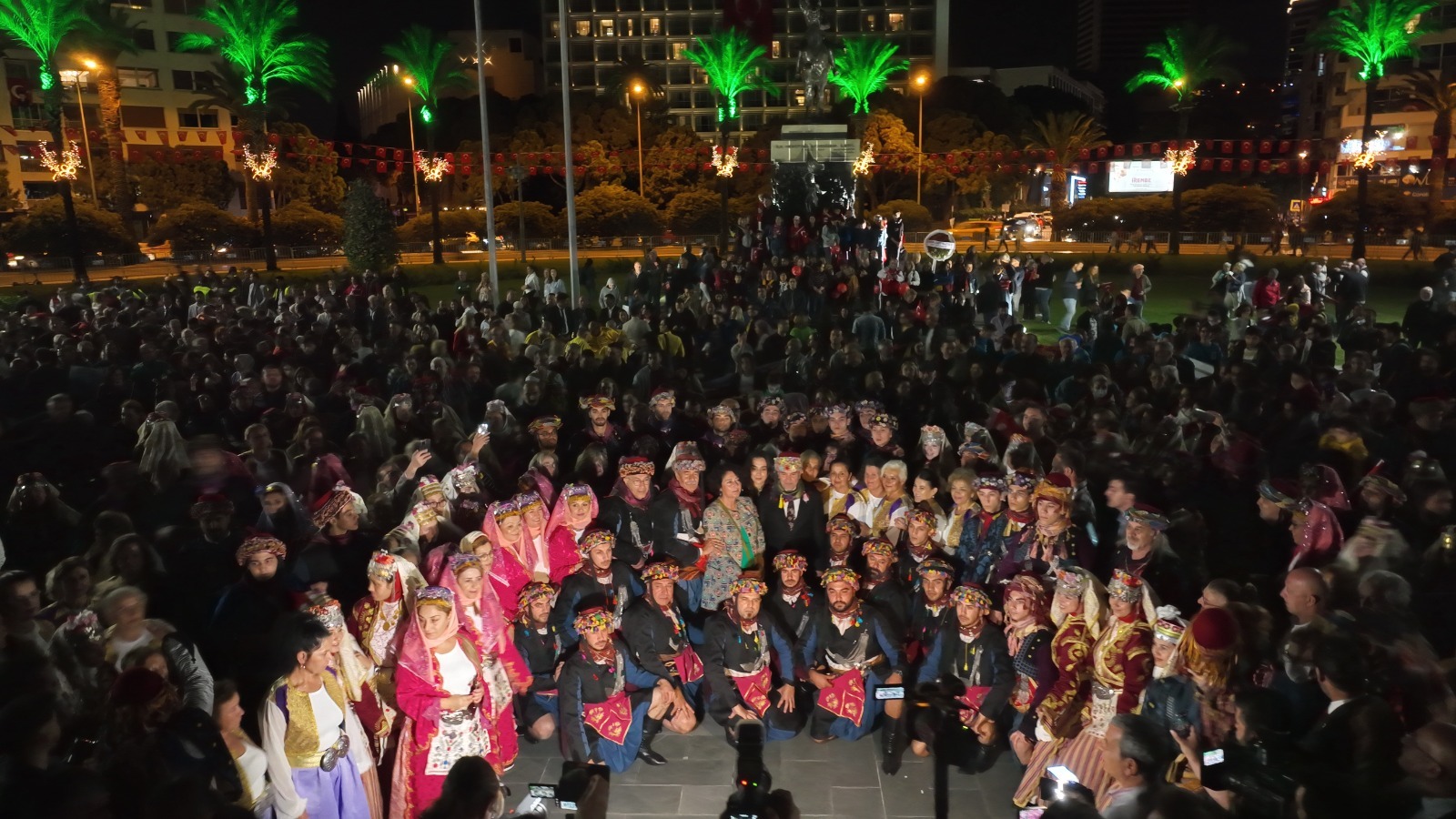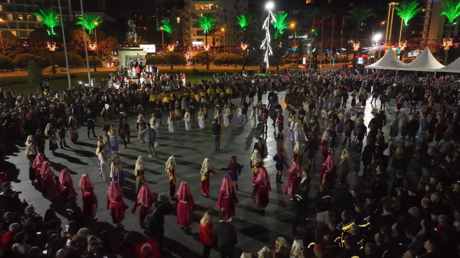 İzmir’de 29 Ekim Cumhuriyet Bayramı coşkusu zeybek gösterisi, fener alayı ve konserlerle sürdü.