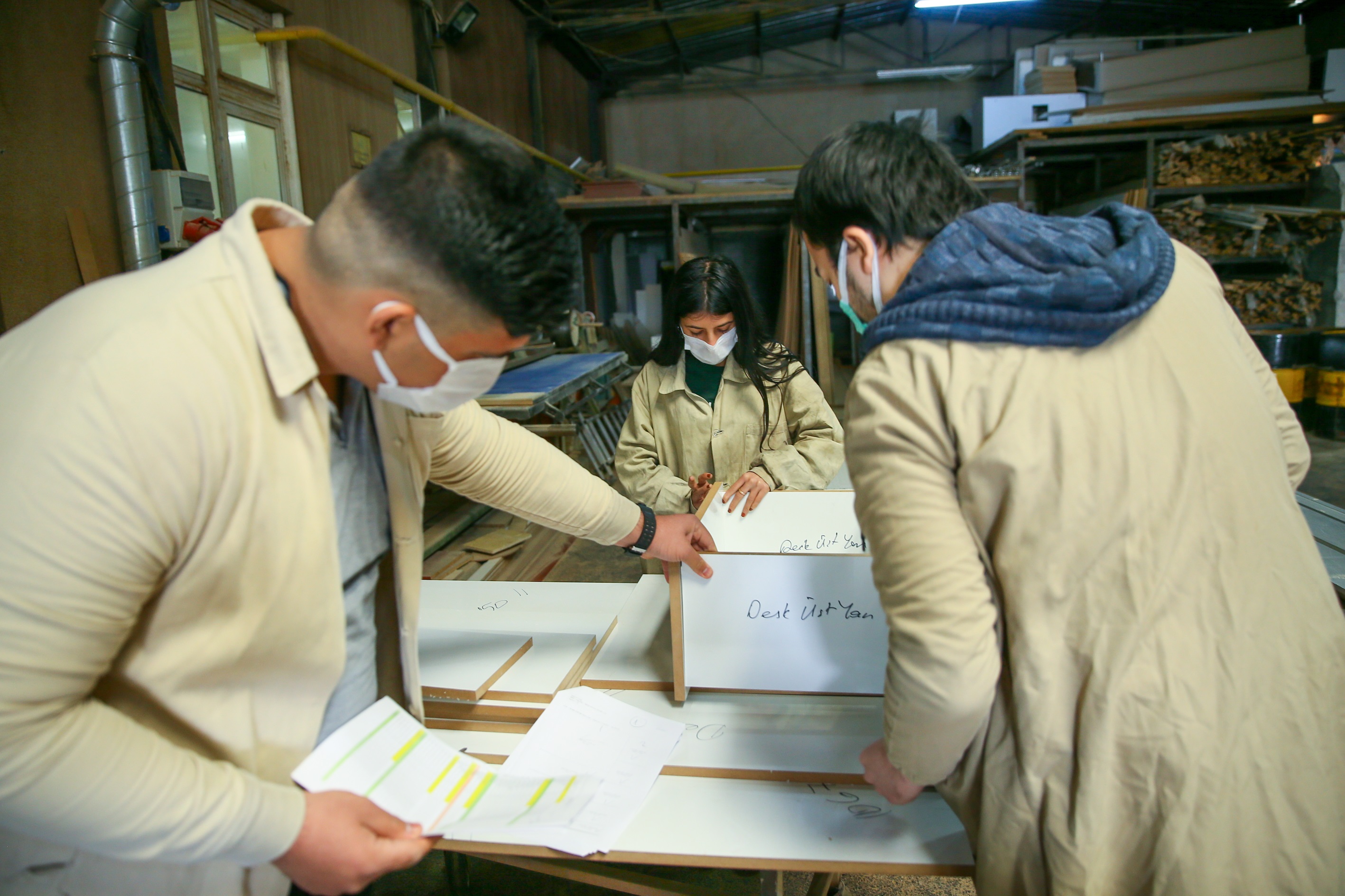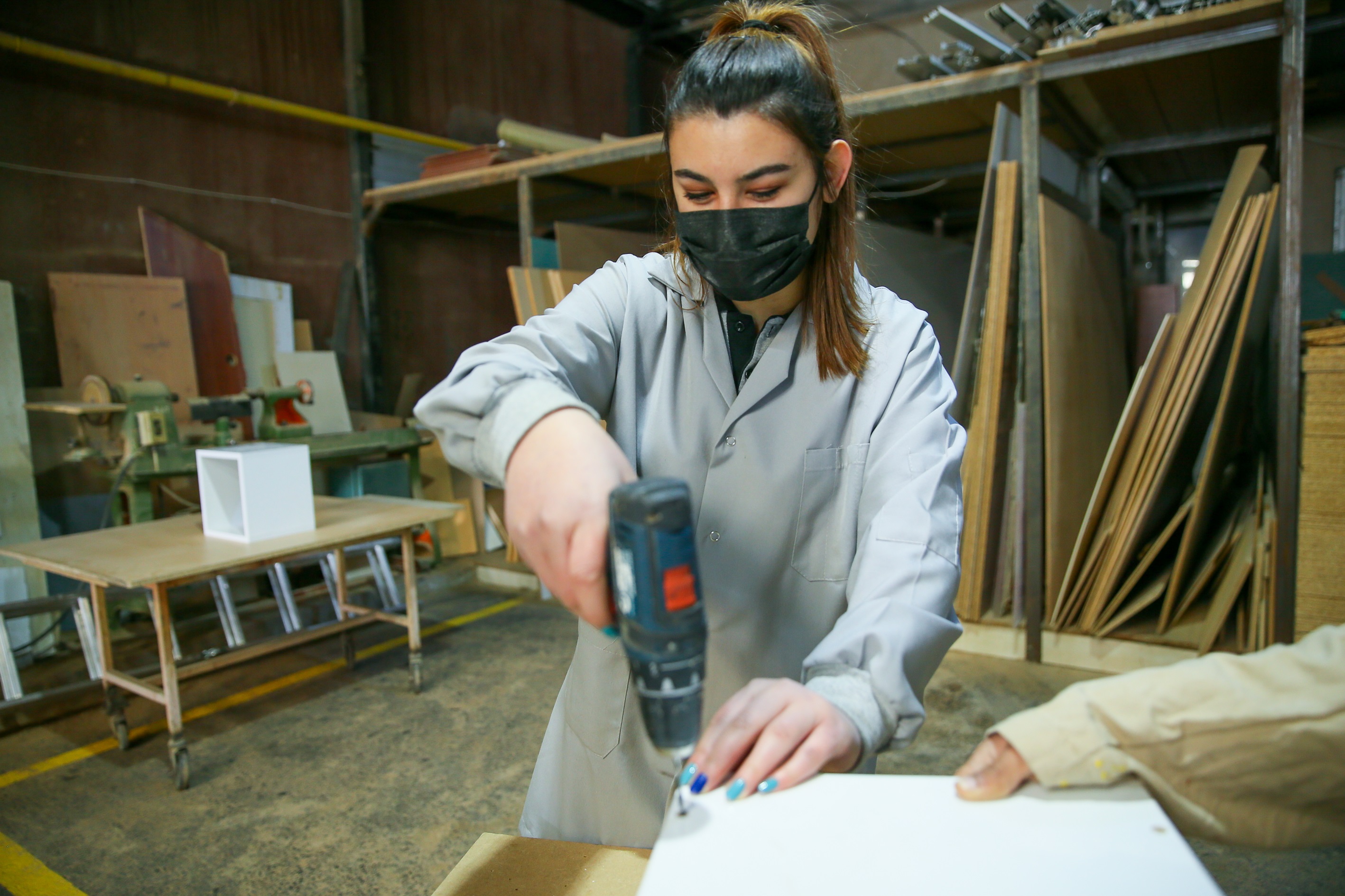 Projede yer alan Çiğli 75. Yıl Mesleki ve Teknik Anadolu Lisesi 11. sınıf öğrencisi İrem Gökeş ise mobilya bölümünde eğitimine devam ettiğini ve iç mimar olmayı hedeflediğini söyledi.