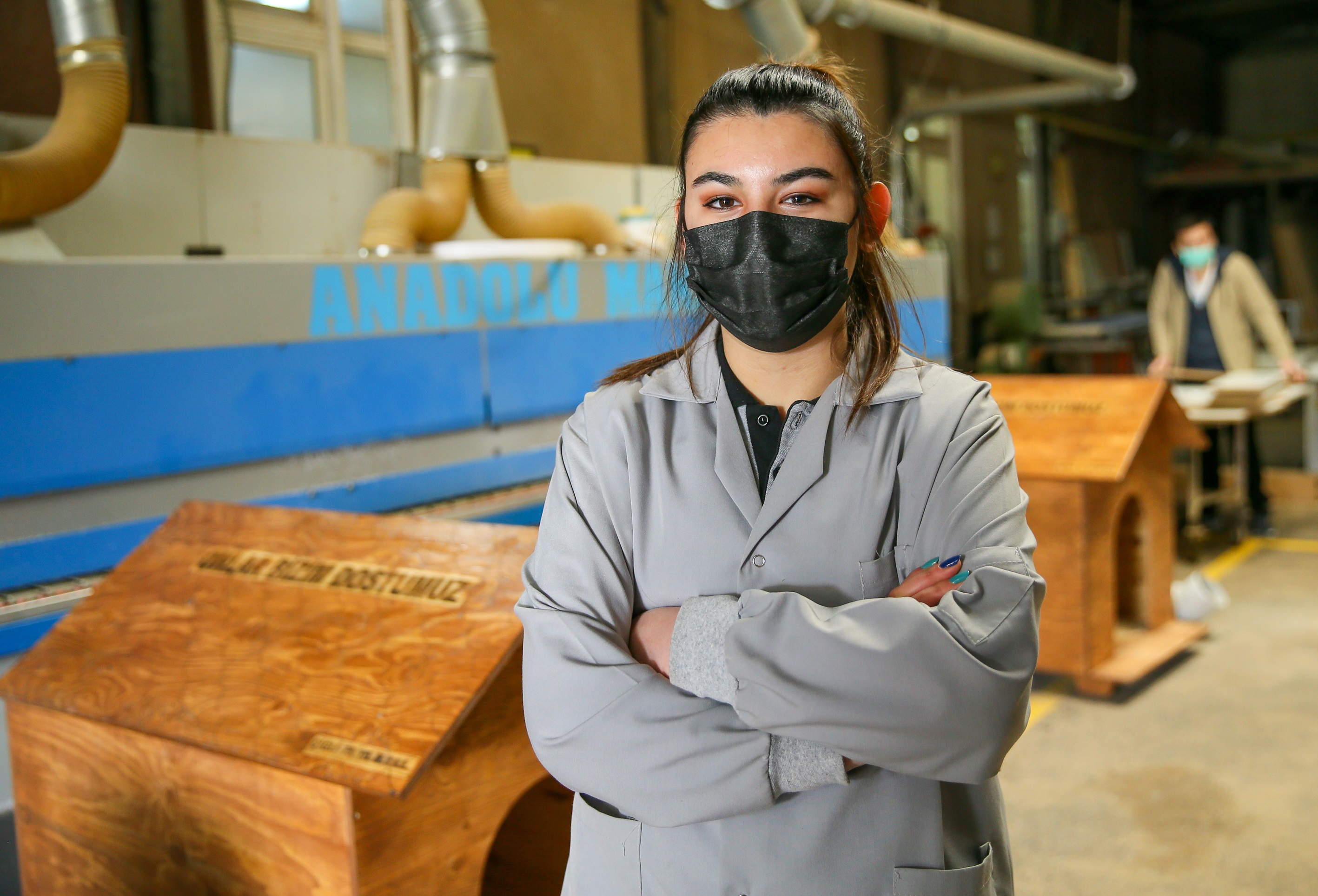Okulun Mobilya ve İç Mekan Tasarım Alan Şefi Mahmut Koç ise lise olarak yıllardır sokak hayvanlarına korunaklı bir yer sağlamak için büyük bir çabanın içinde olduklarını vurguladı.