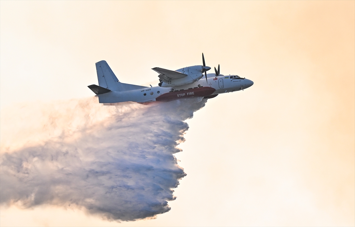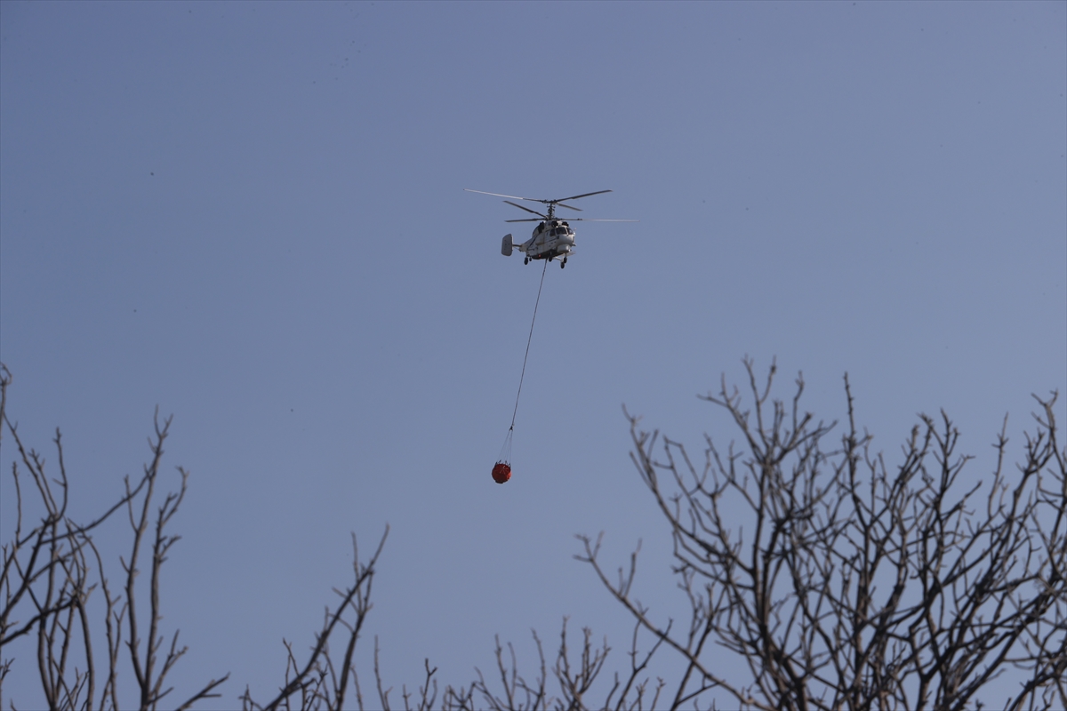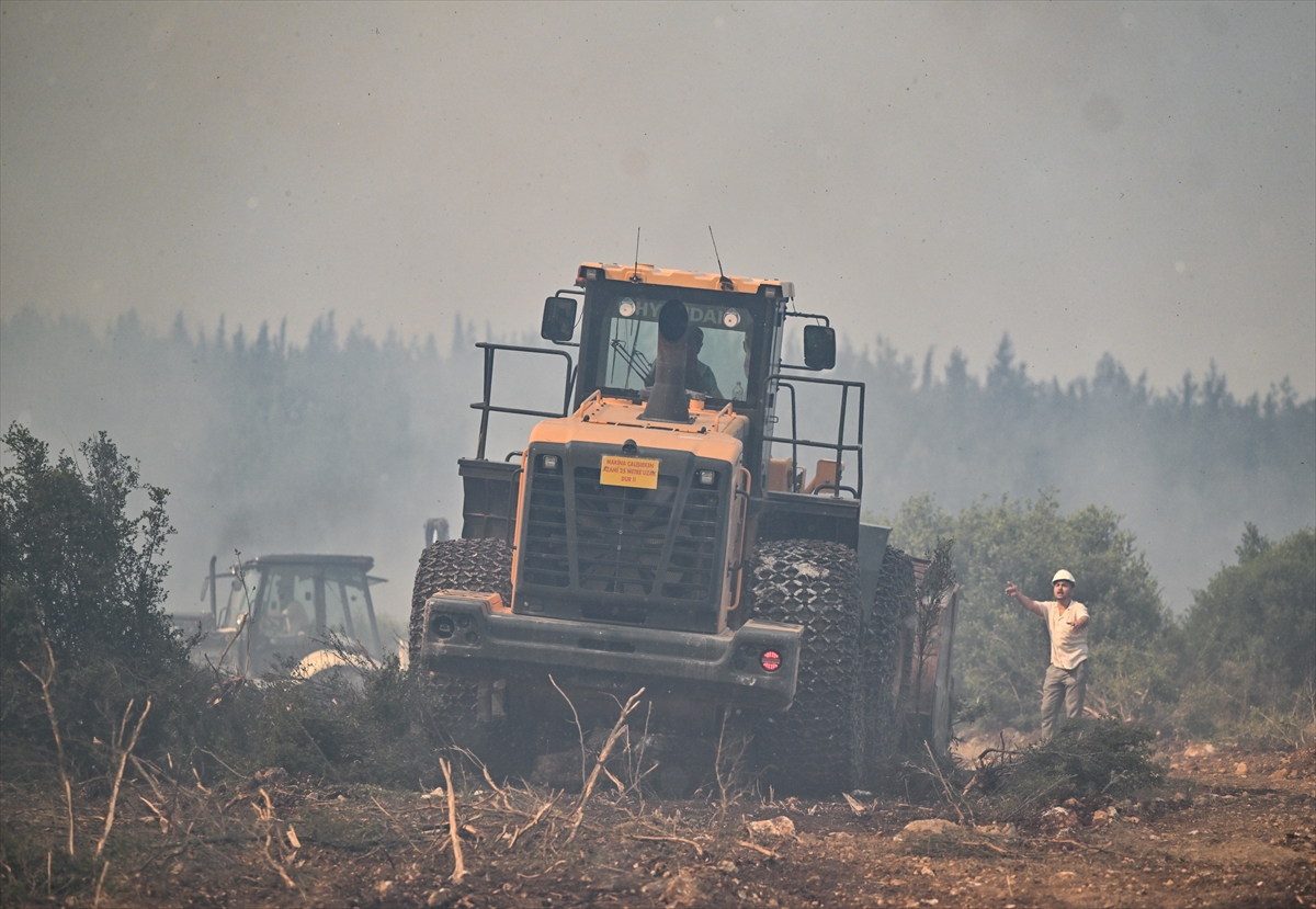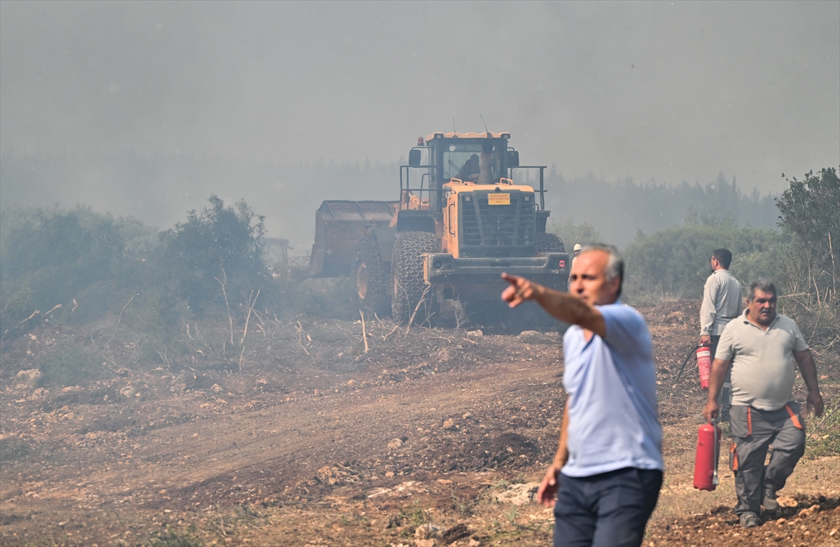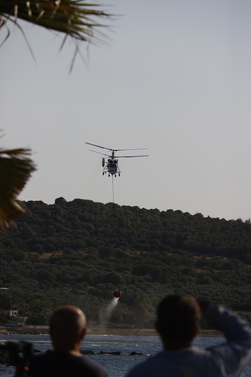 İzmir'in Menderes ilçesine bağlı Oğlananası Mahallesi'nde çıkan orman yangınına müdahale havadan ve karadan sürüyor.