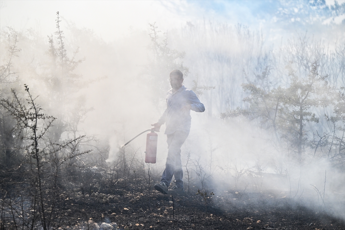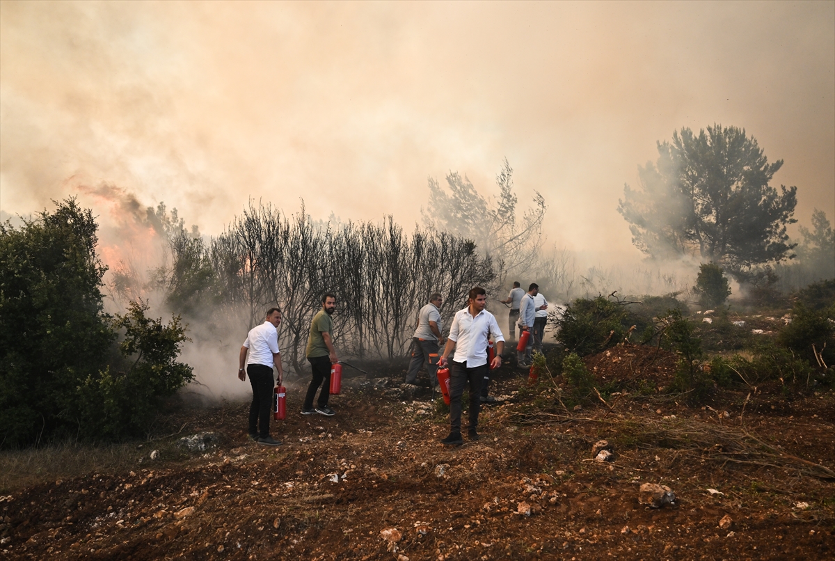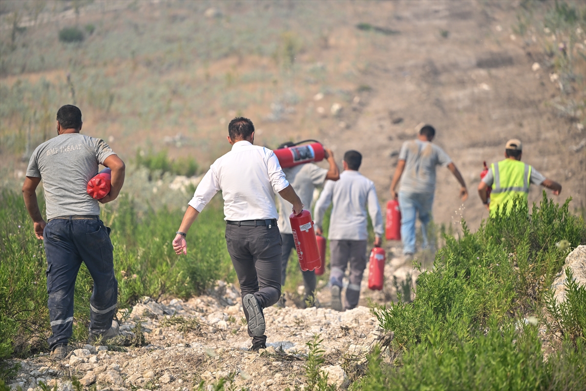 İTOB Organize Sanayi Bölgesi yakınındaki orman yangınını söndürme çalışmalarına fabrika ve imalathanelerde çalışan işçiler de destek verdi.