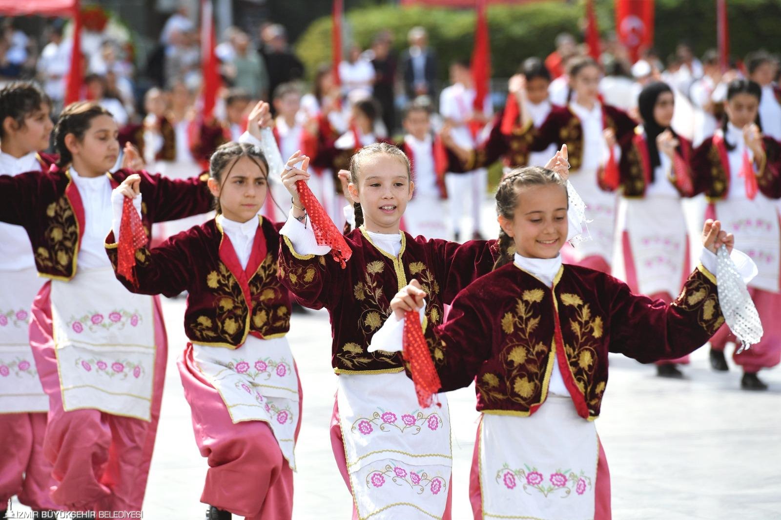 İzmir'de 23 Nisan Ulusal Egemenlik ve Çocuk Bayramı'nın 104'üncü yıl dönümü coşkuyla kutlandı.