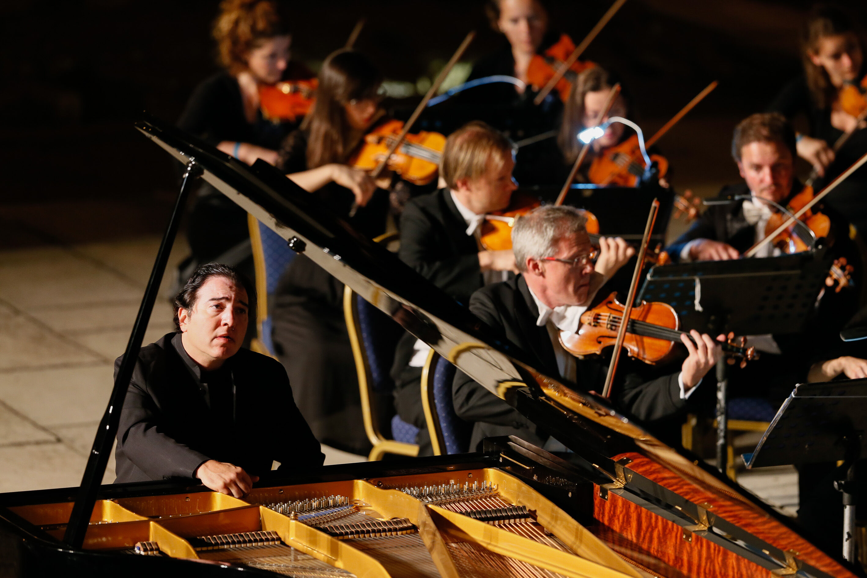 Piyanist Fazıl Say, 31. Uluslararası İzmir Festivali kapsamında İsveçli Şef Ola Rudner yönetimindeki Viyana Oda Orkestrası ile Efes Büyük Tiyatro'da konser verdi.
