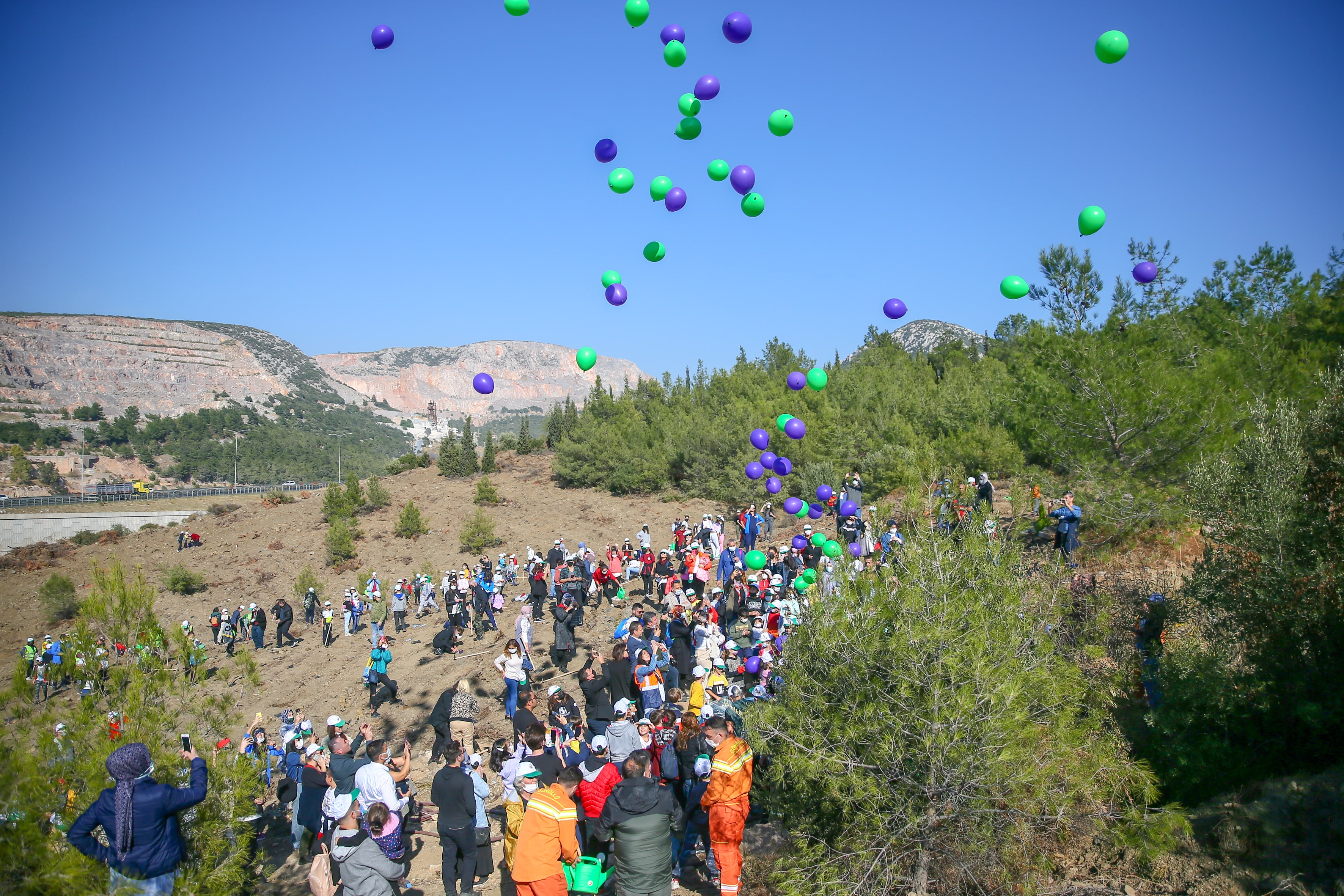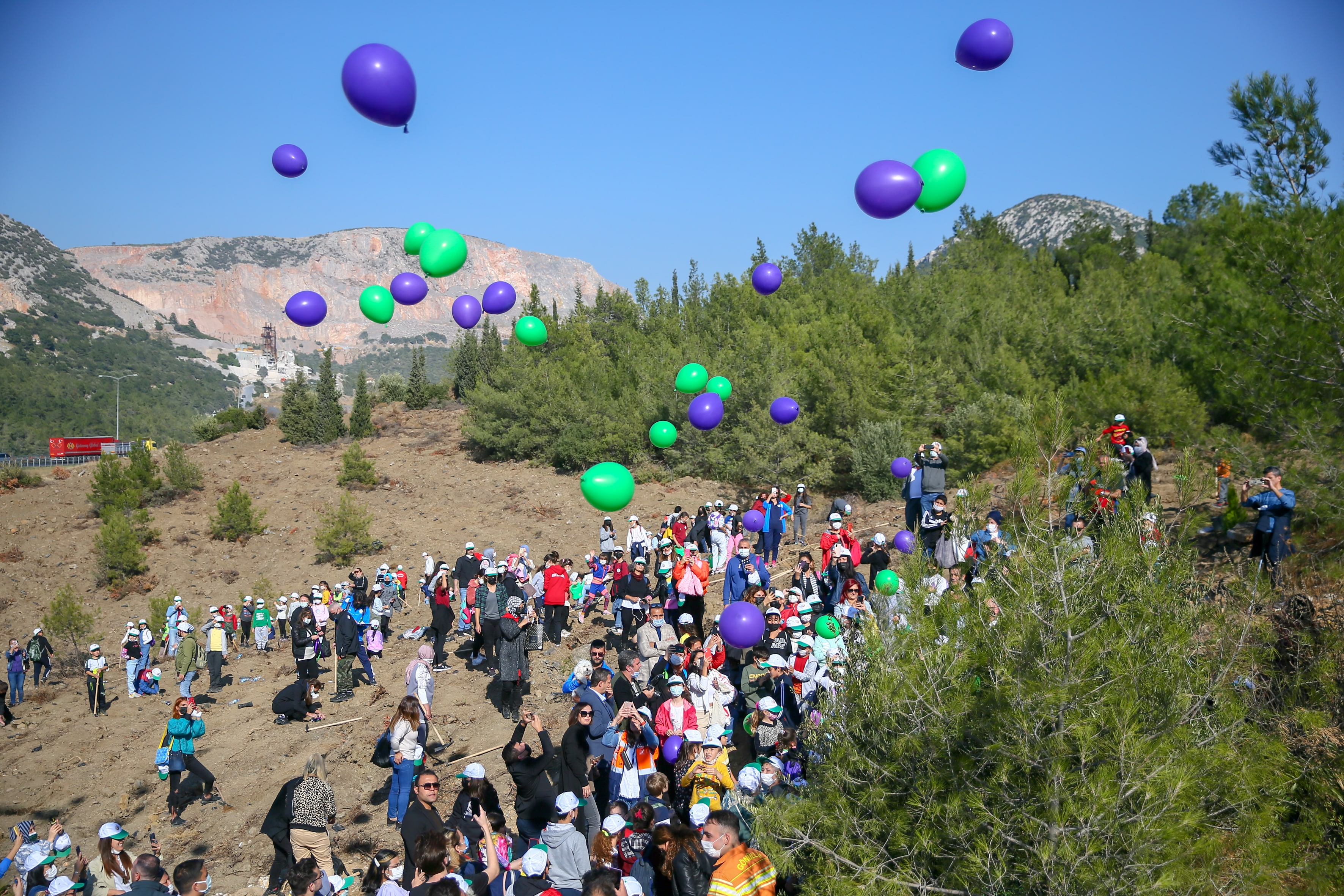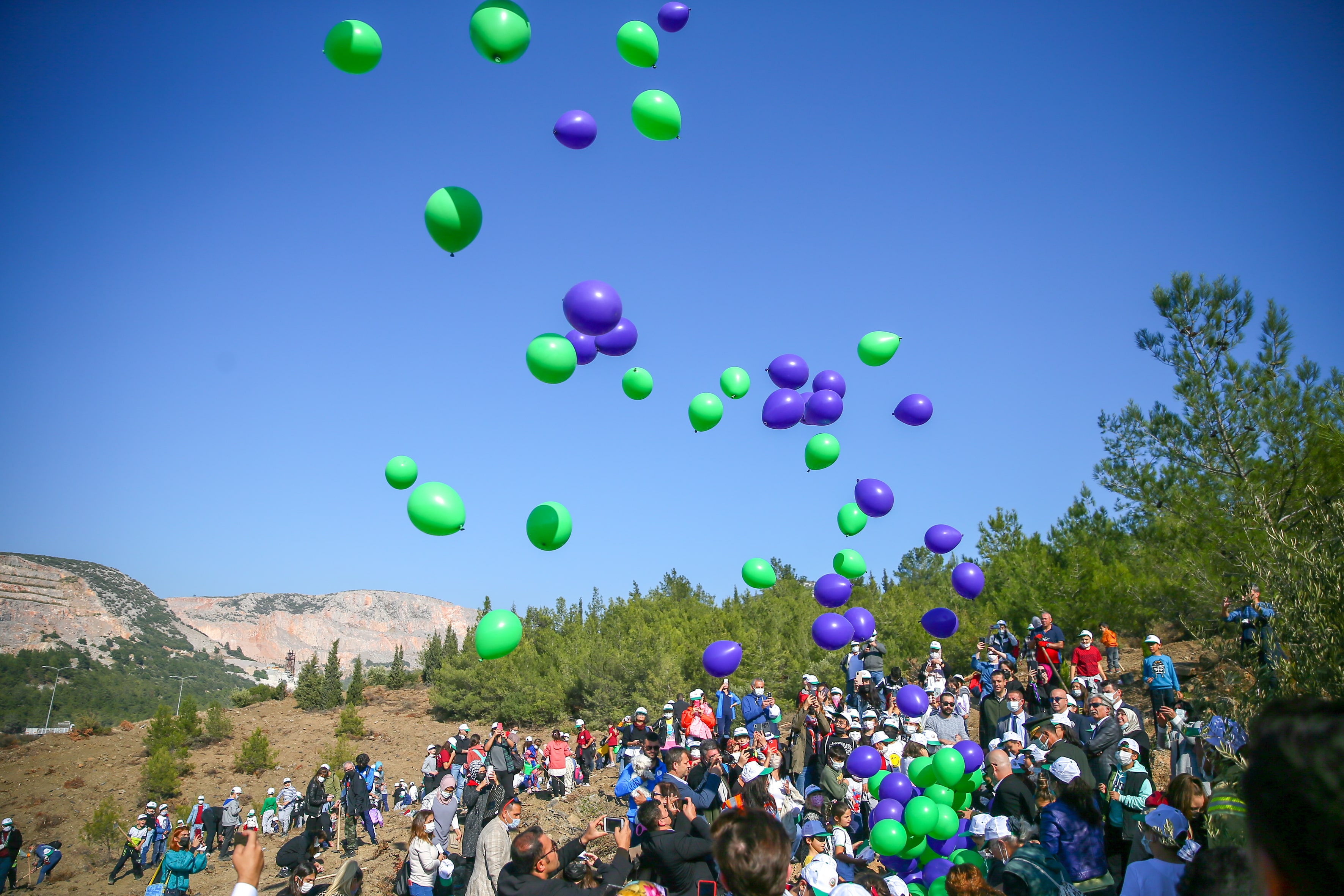 Bornova Kaymakamı Fatih Genel, Orman İşletme Müdürü Ersen Çetin ve diğer yetkililerin de katıldığı etkinlikte, gökyüzüne balonlar bırakıldı.