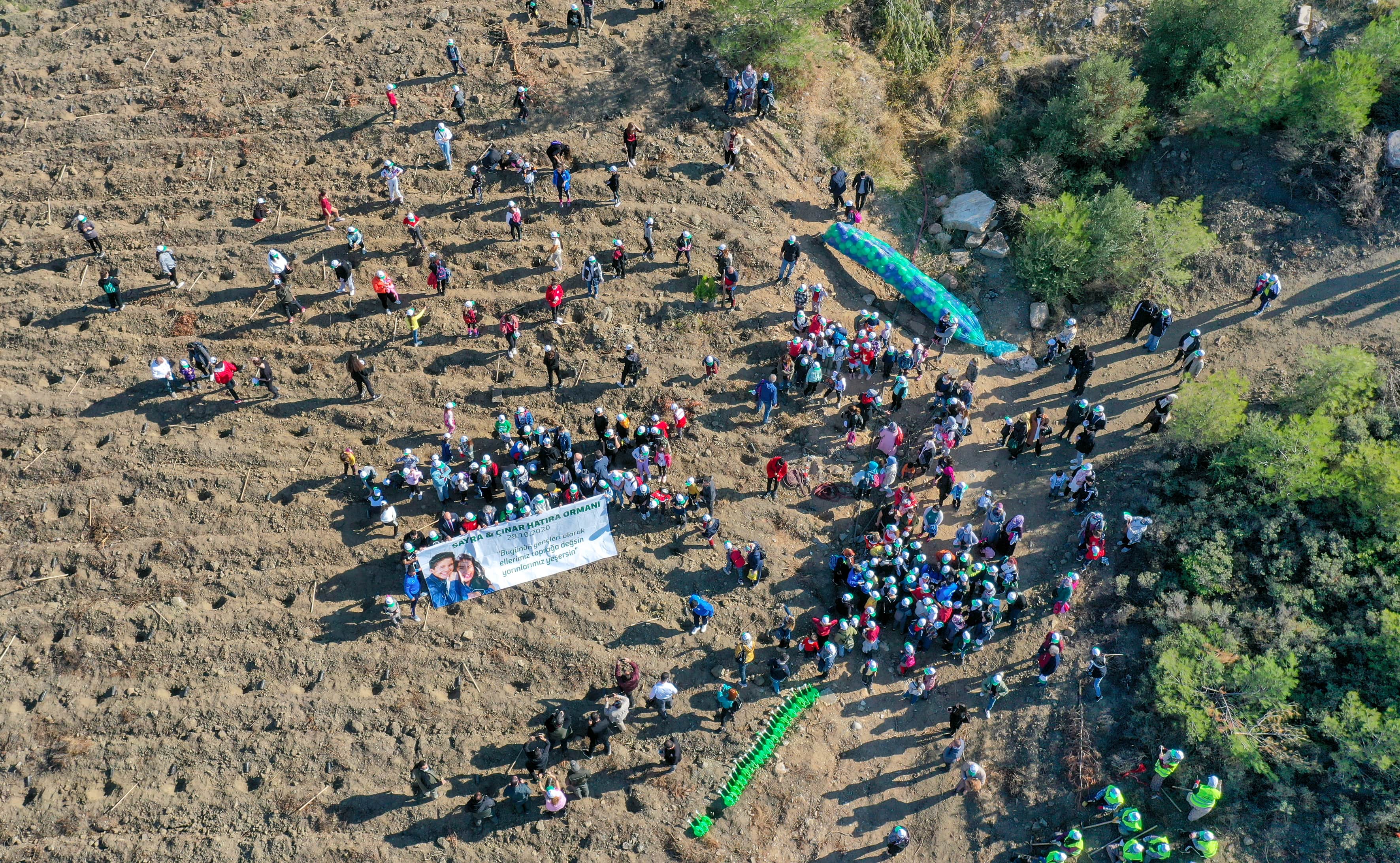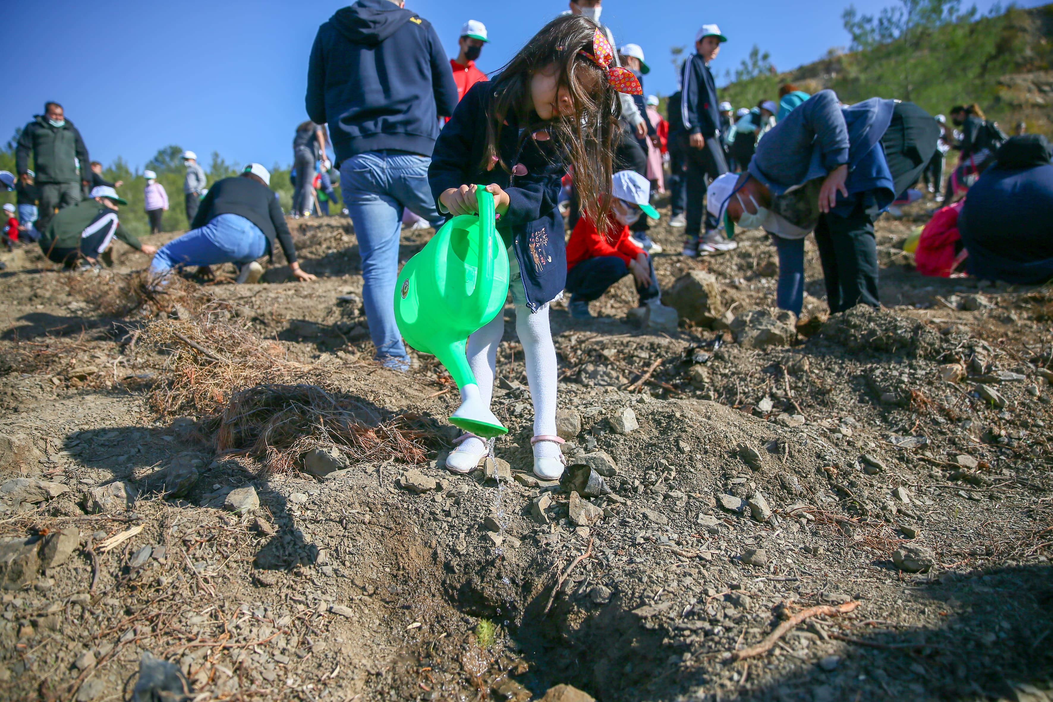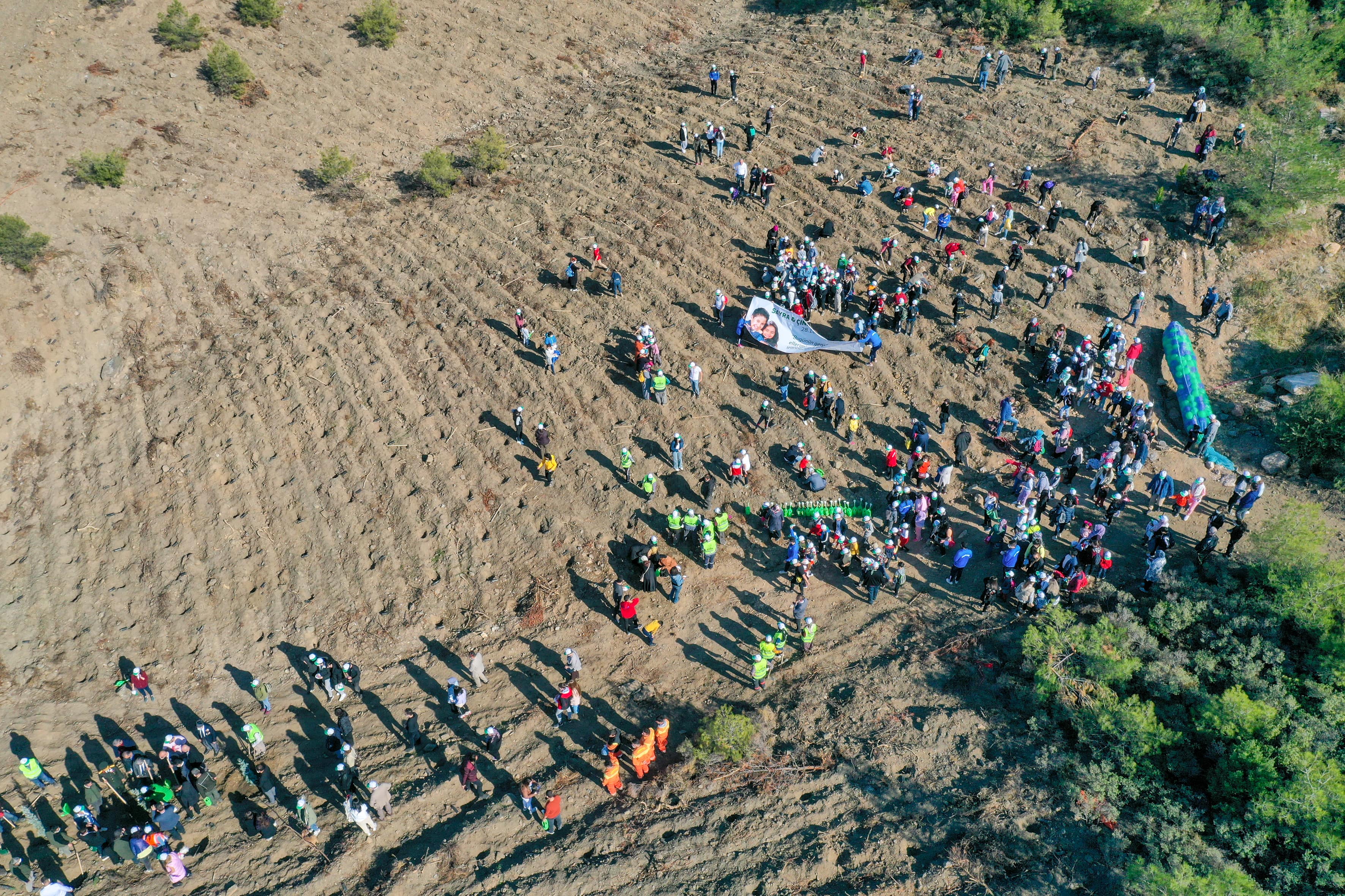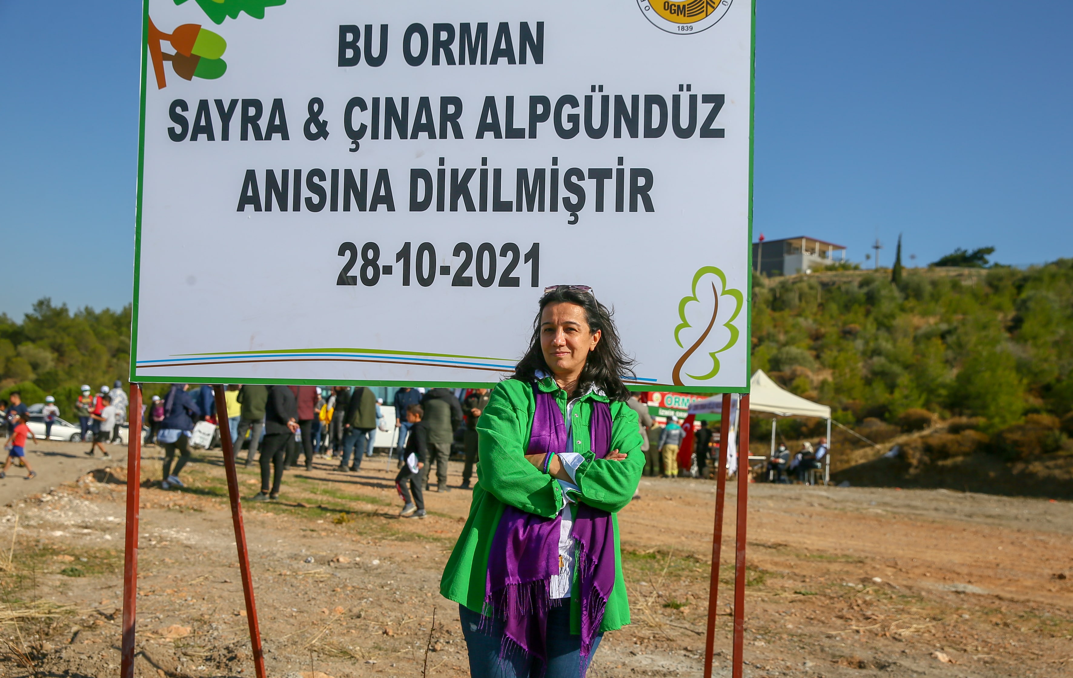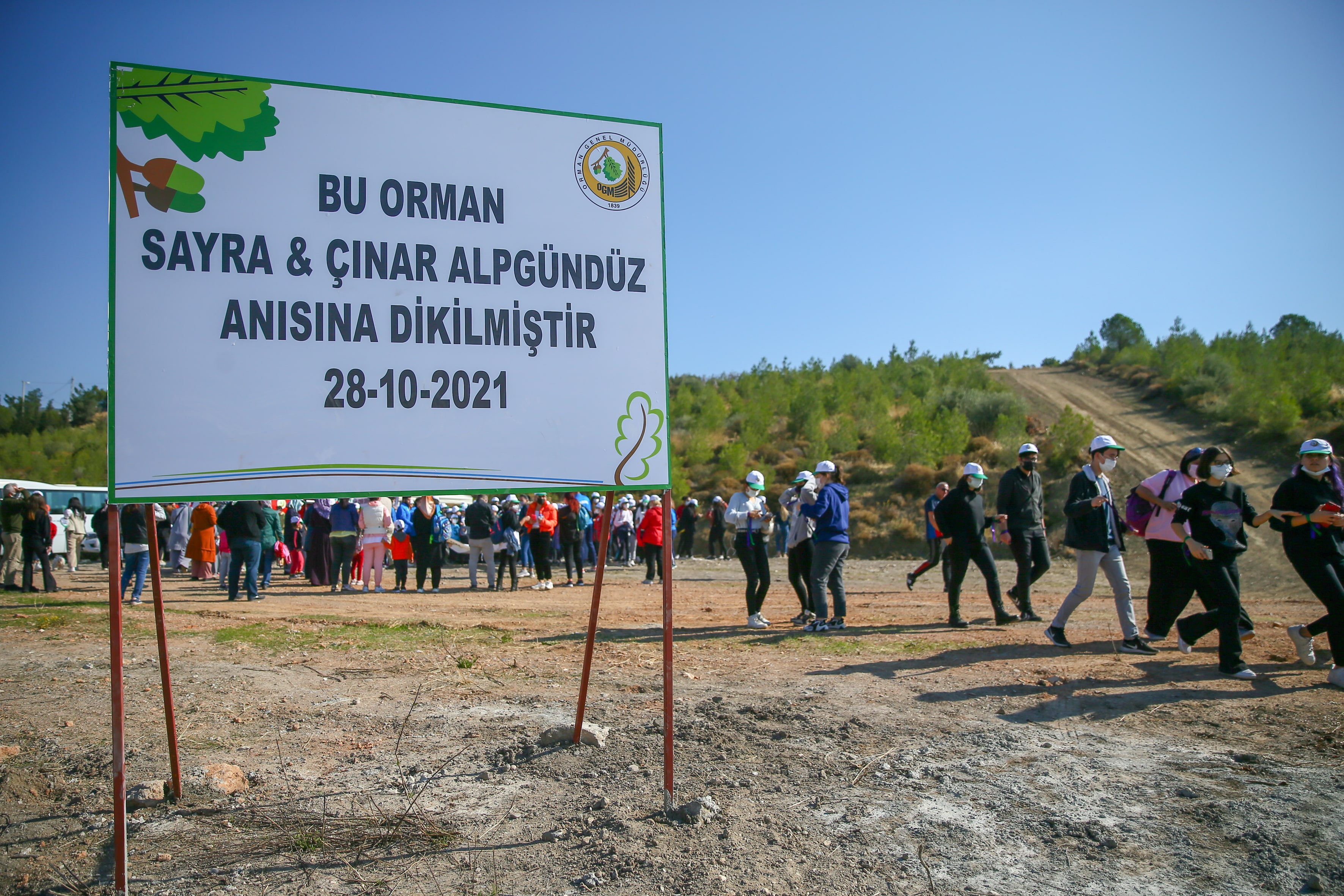 İzmir'de geçen yıl meydana gelen depremde Rıza Bey Apartmanı'nın enkazındaki arama kurtarma çalışmalarında 75 saat sonra cansız bedenlerine ulaşılan 15 yaşındaki ikizler Çınar ve Sayra Alpgündüz adına 1500 fidan dikildi.
