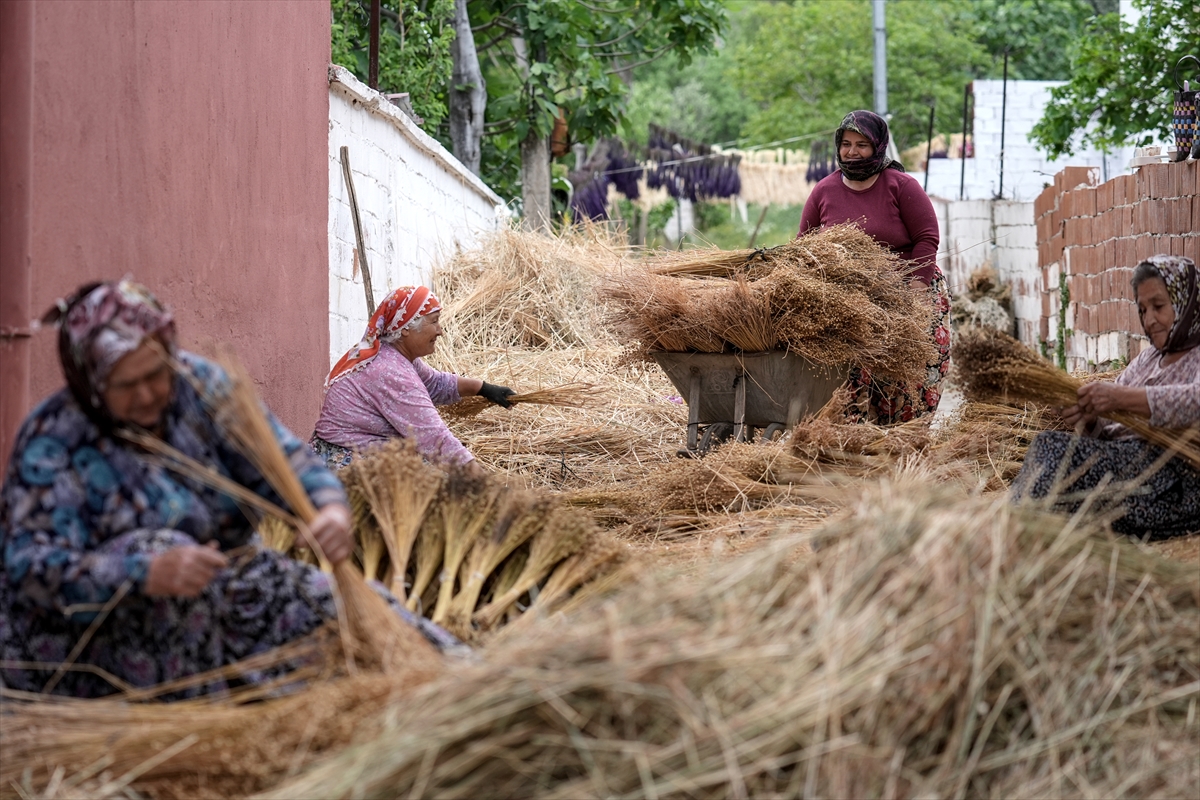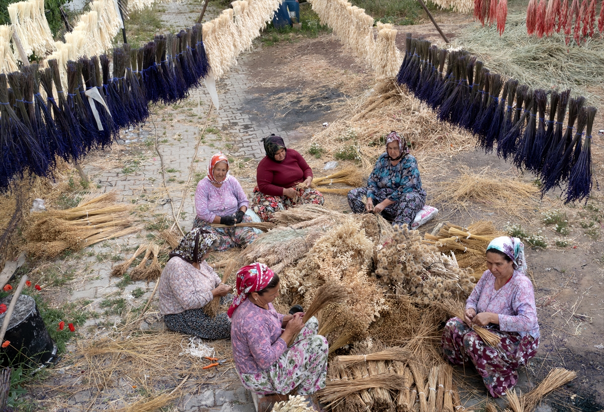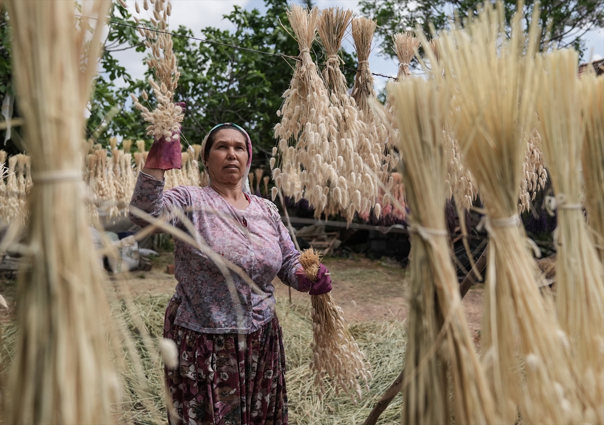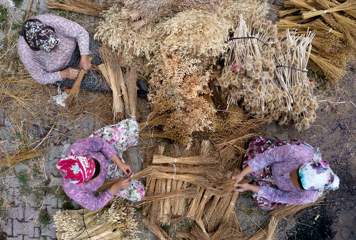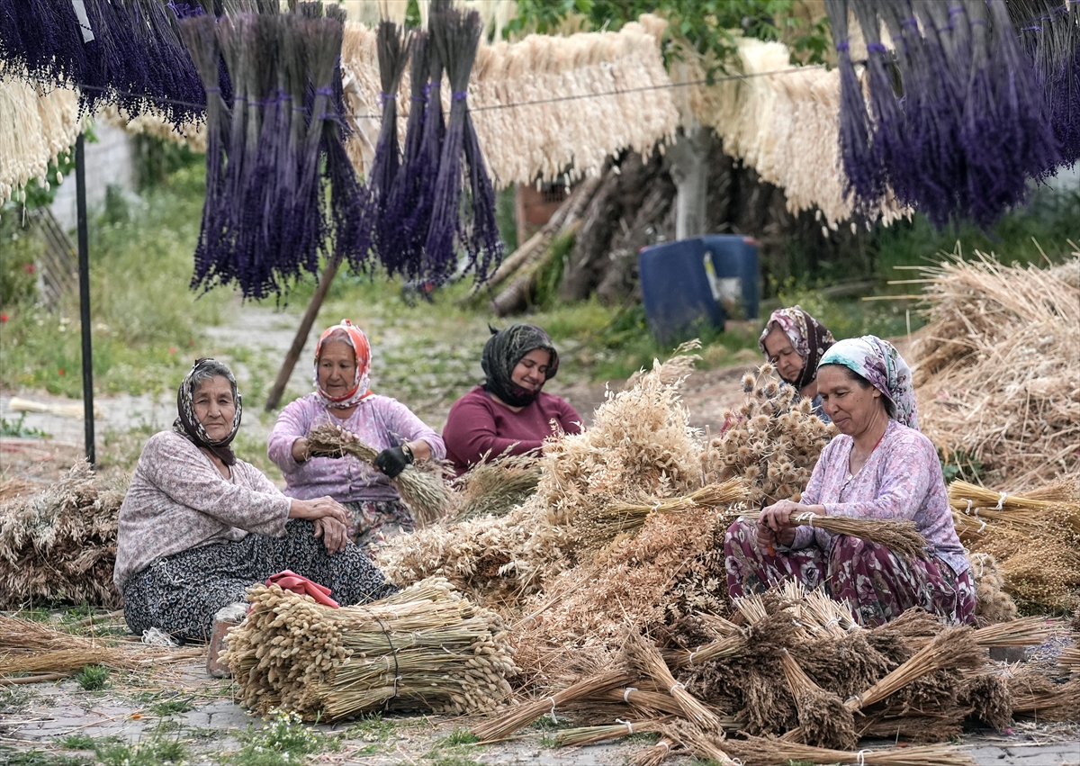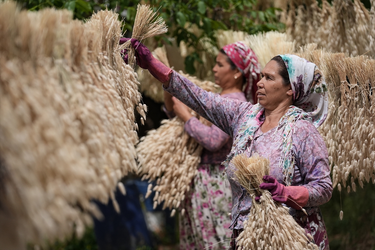 İzmir'in Bayındır ilçesinde kuru otları boyayarak süs bitkisi haline getiren mahalle sakinleri, ürünleri yurt dışına gönderiyor.
