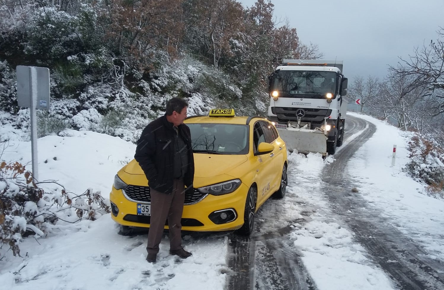 İzmir’de sabahın erken saatlerinden itibaren başlayıp etkisini arttıran kar yağışı nedeniyle İzmir Büyükşehir Belediyesi’ne bağlı ekipler yol açma ve tuzlama çalışmaları başlattı.