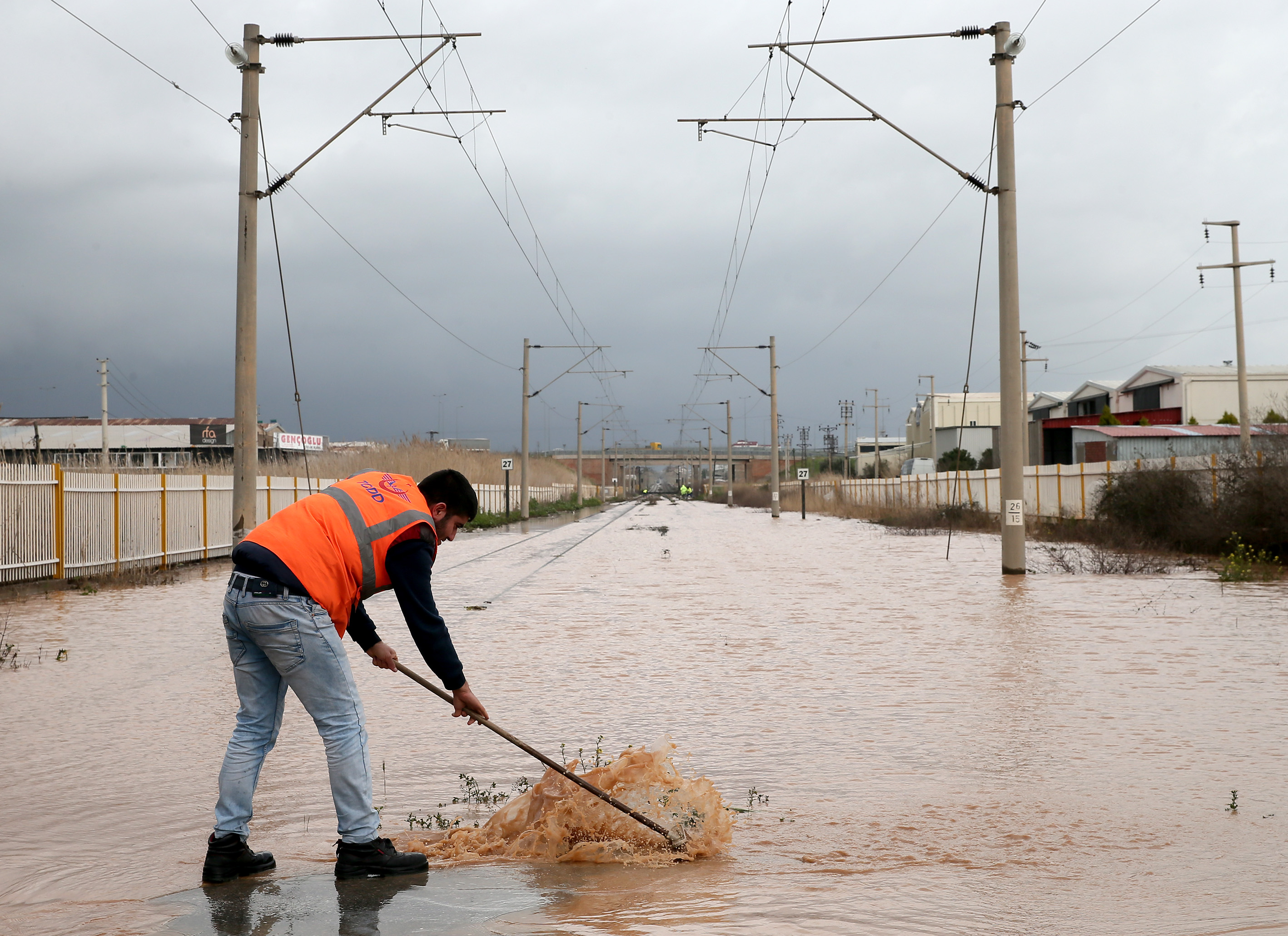 Çiğli'de etkili olan yağış nedeniyle banliyö tren hattı İZBAN'ın kullandığı Egekent 2 istasyonu yakınlarındaki demiryolunda su baskını yaşandı.