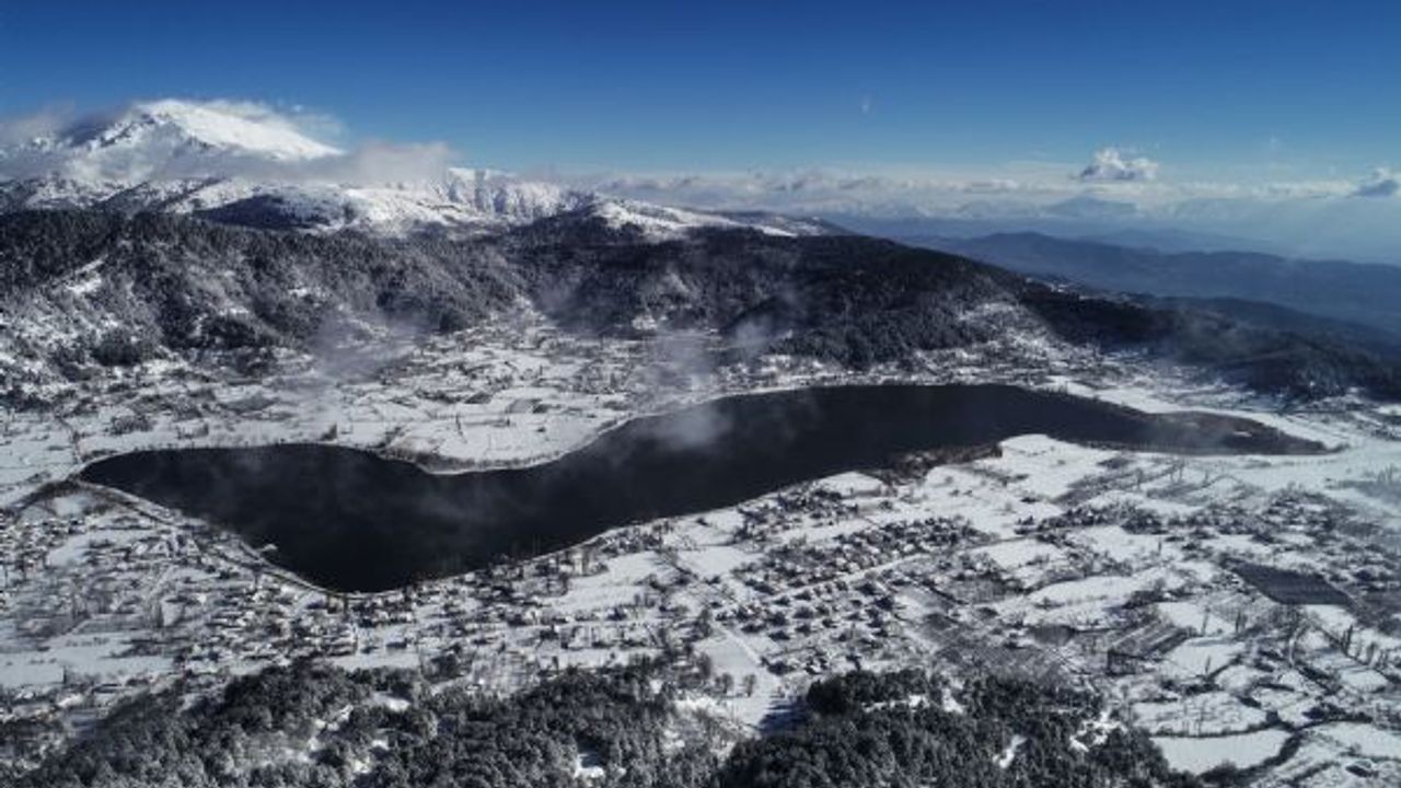 Bin 49 metre rakımlı yaylada ormanlık alan ve göl çevresinin karla kaplanması kartpostal tadında görüntüler oluşmasını sağladı.