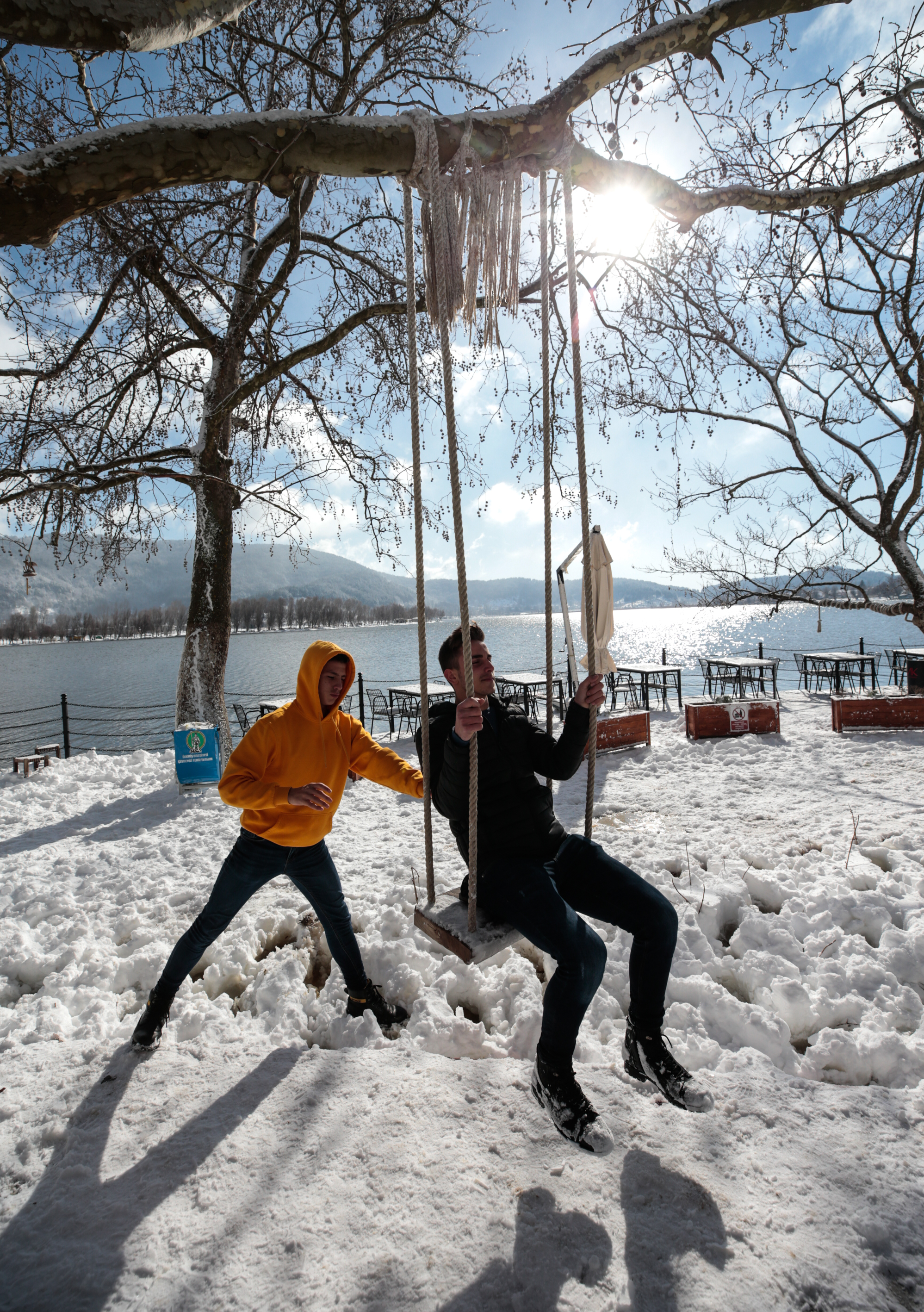 Göl, orman ve beyaz örtünün tadını çıkarmak isteyen İzmirliler bölgeyi gezdi, bu güzel manzarayı da çektikleri fotoğraflarla ölümsüzleştirdi.