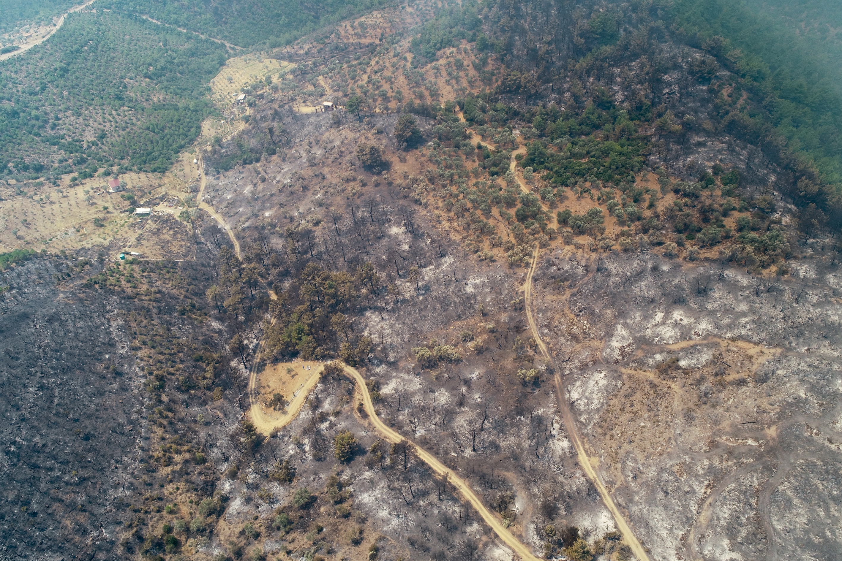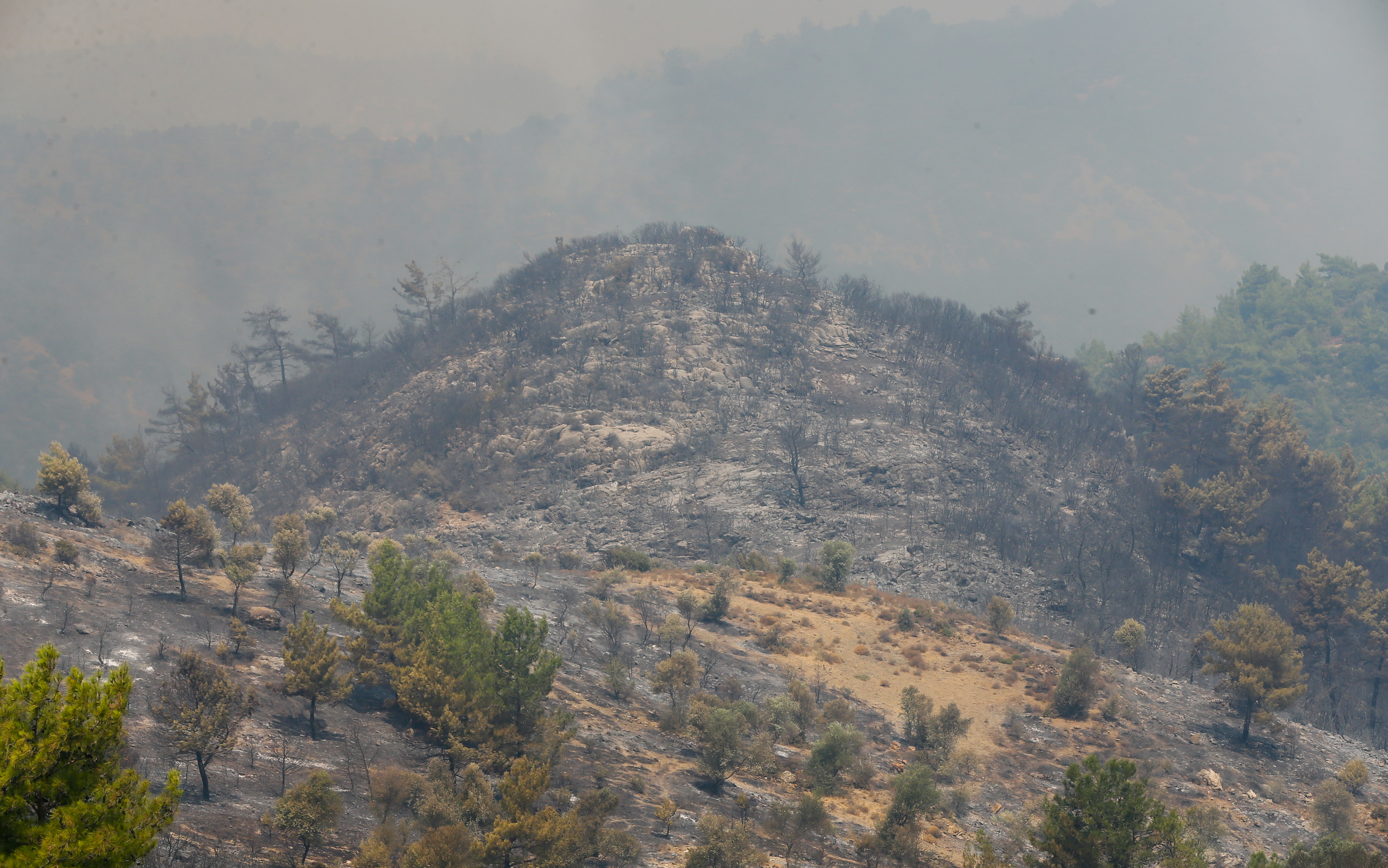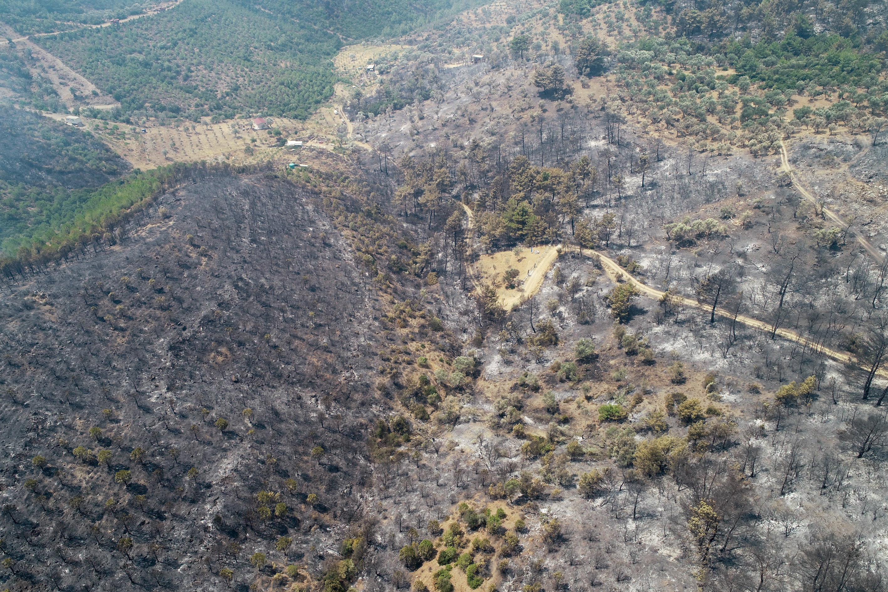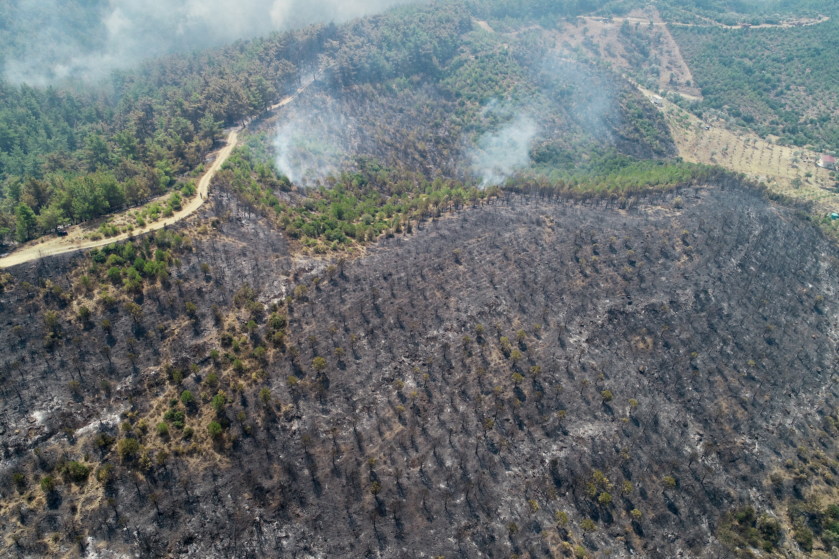 "Onun dışında en önemli şey ağaçlarımızın, bitki örtümüzün ve yaban hayatımızın kaybolmuş olması. Dün Cumhurbaşkanımızla da konuşurken aslında yangın büyüklüğü 50-100 hektar arasındayken 500 hektara kadar bir alanın yanabileceğini söylemiştim. Bugün kabaca yukarı çıktığımızda o 500 hektarı, kesin olarak hesaplamamakla birlikte 500 hektar gözüküyor. Burada şu var, sevindirici taraf şu, özellikle yaban hayatı için, hep bir parçalı şekilde yanmış yani tamamen yanan bir alan yok. Hep parça parça yanan alanlar var. Bu kısmi olarak bizi biraz teselli edebilir ama yanan alanın şu alanda aşağı yukarı 500 hektar civarında gözüküyor."