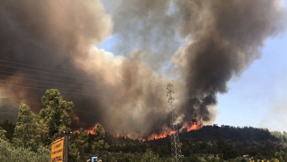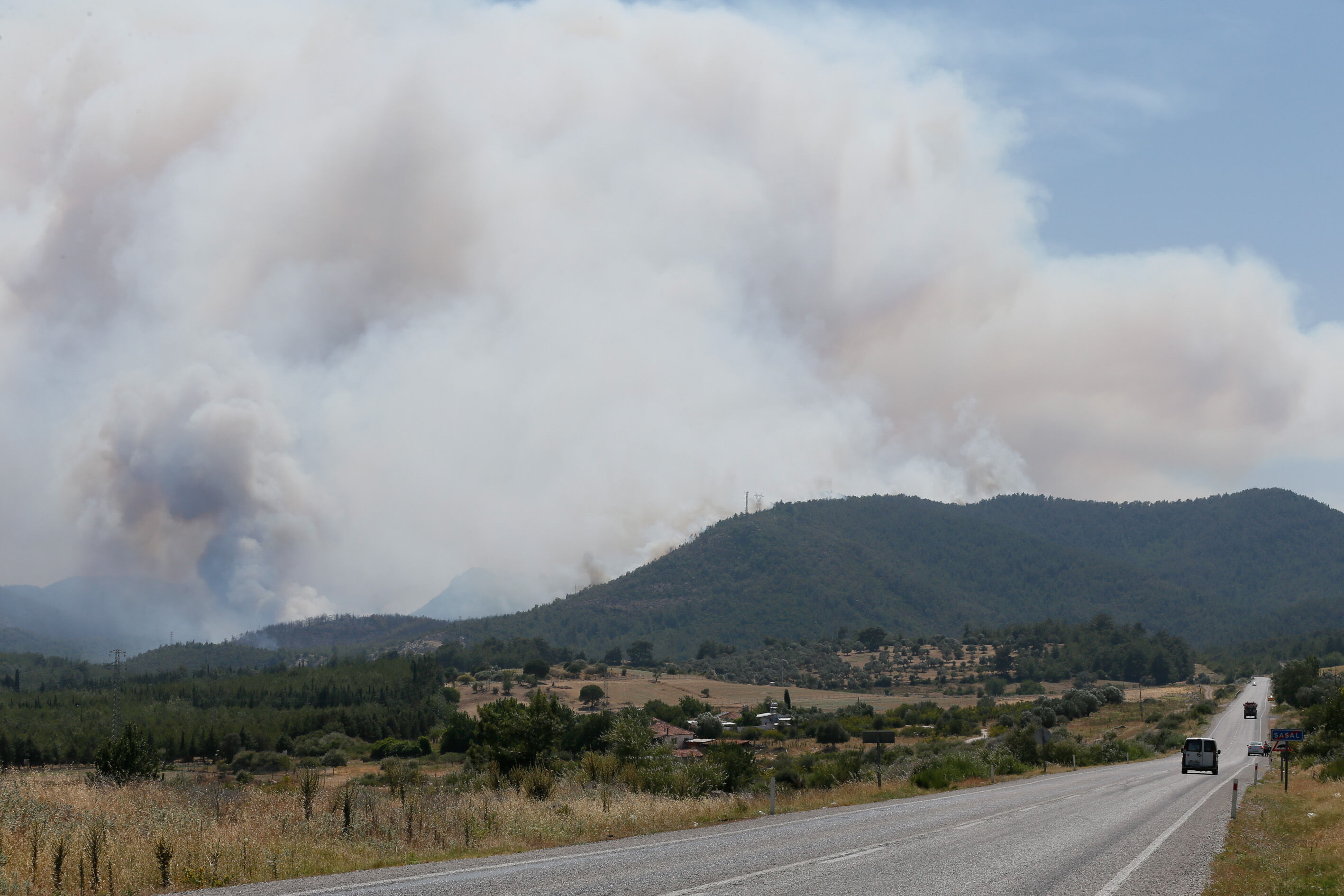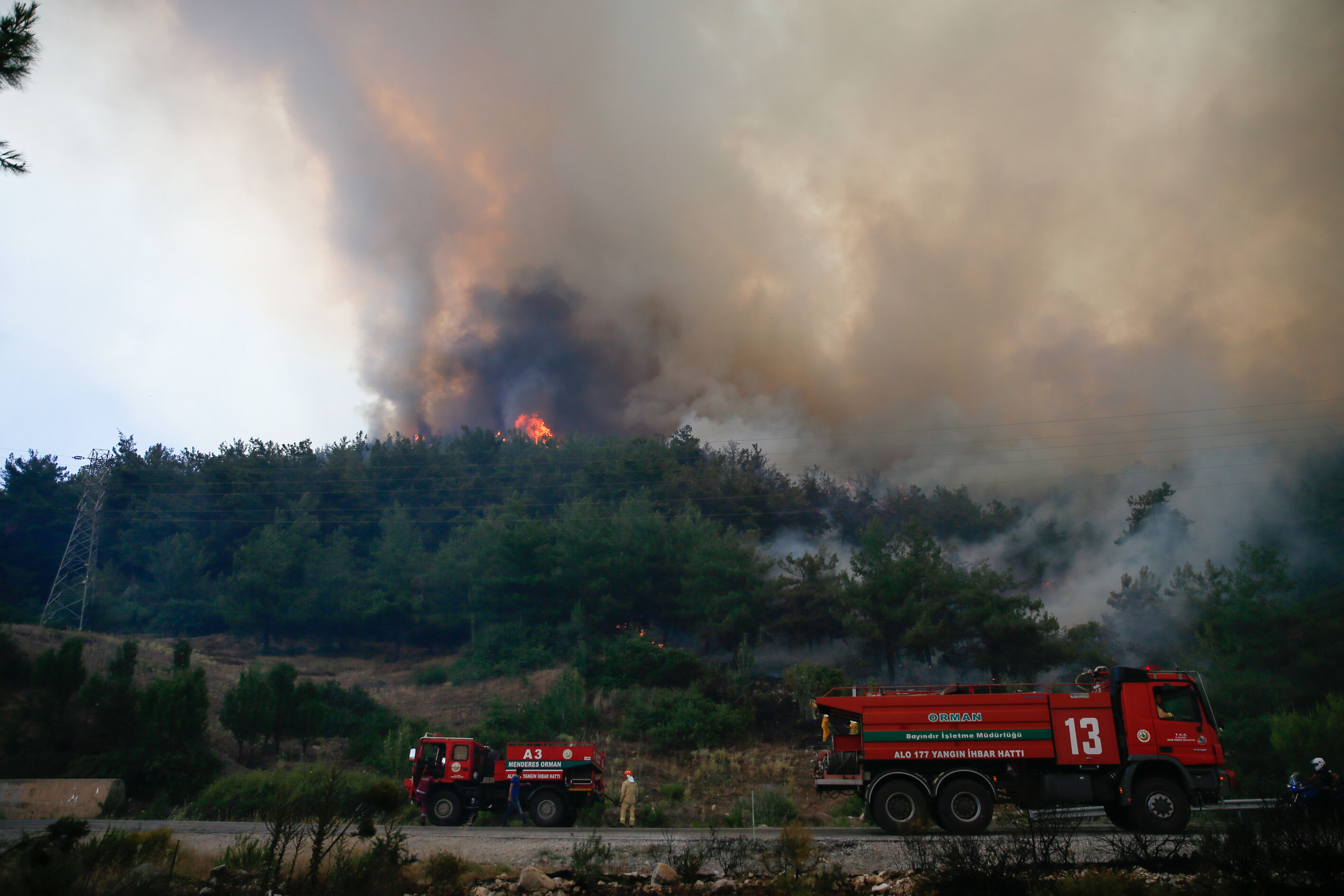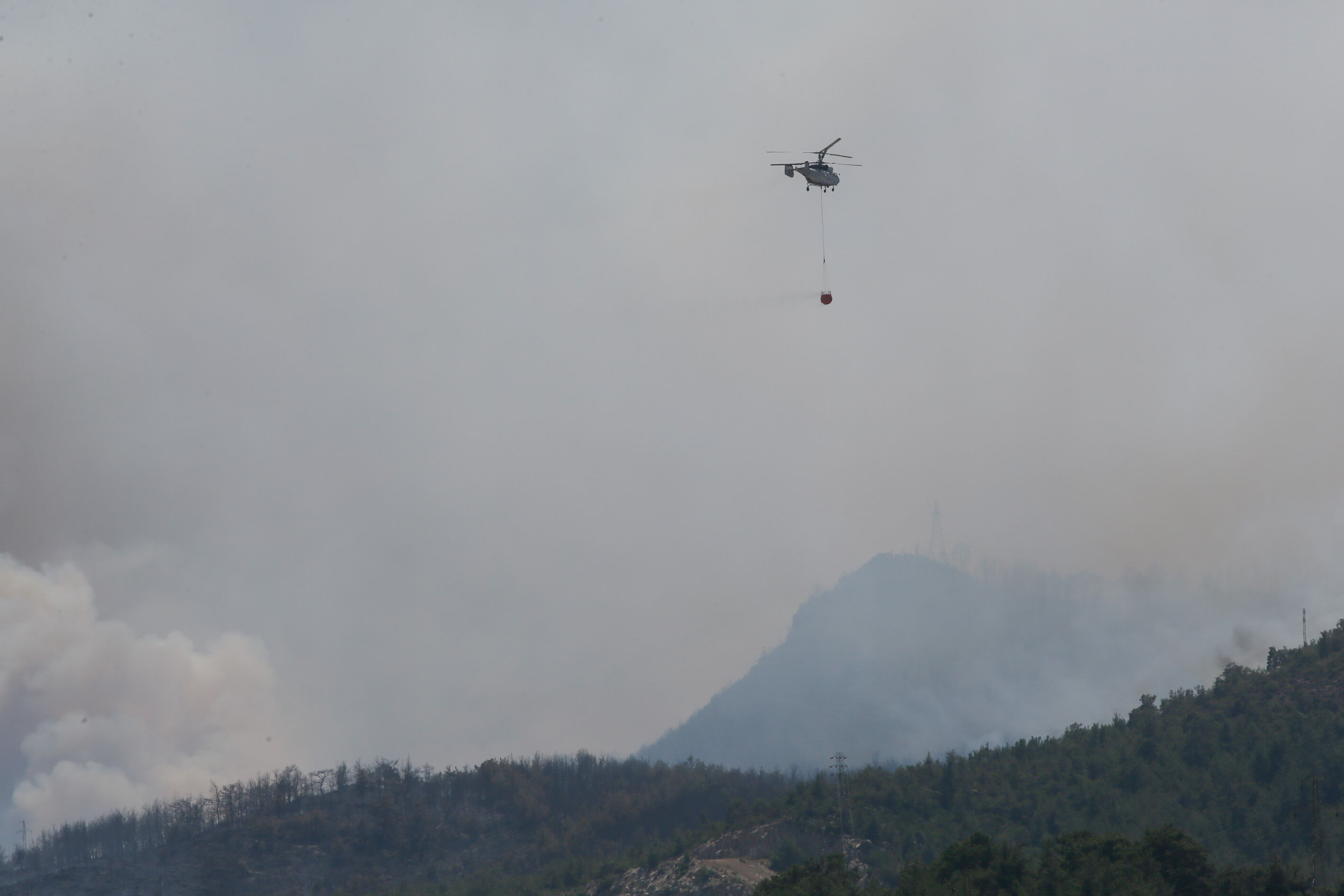 Alevlere 50 arazöz, 300 orman işçisi, 3 helikopter ve 2 uçak ile müdahale edilmeye başlandı. Yaklaşık 50 hektarlık bozuk orman ve ormanlık alanda etkili olduğu belirtilen yangını söndürme çalışmaları havadan ve karadan sürüyor.