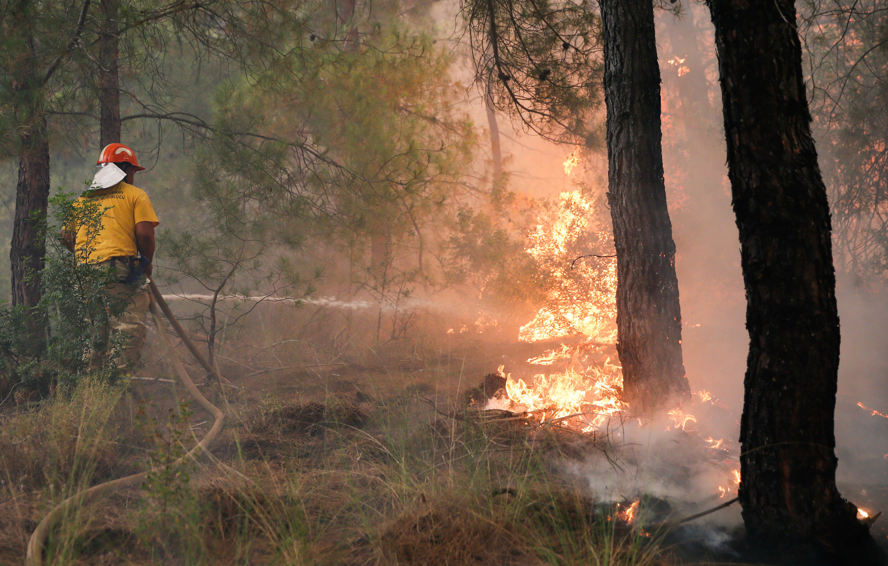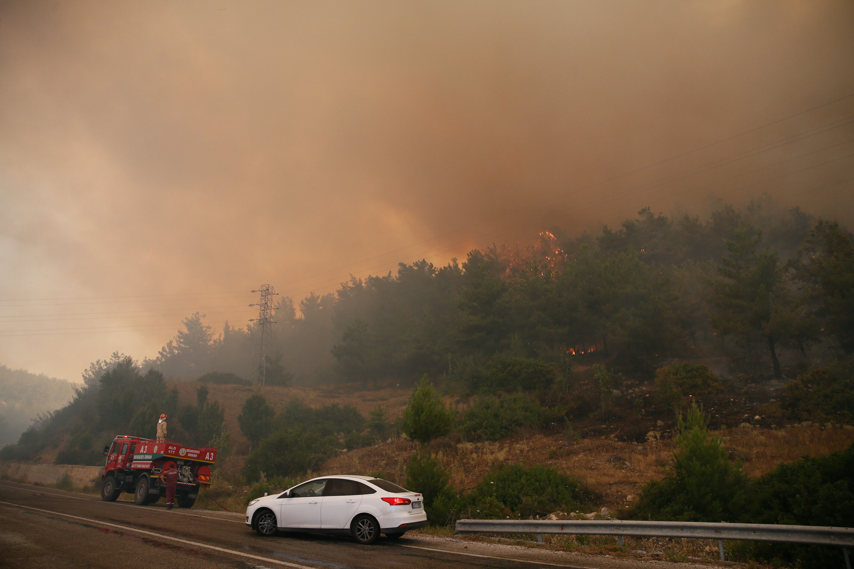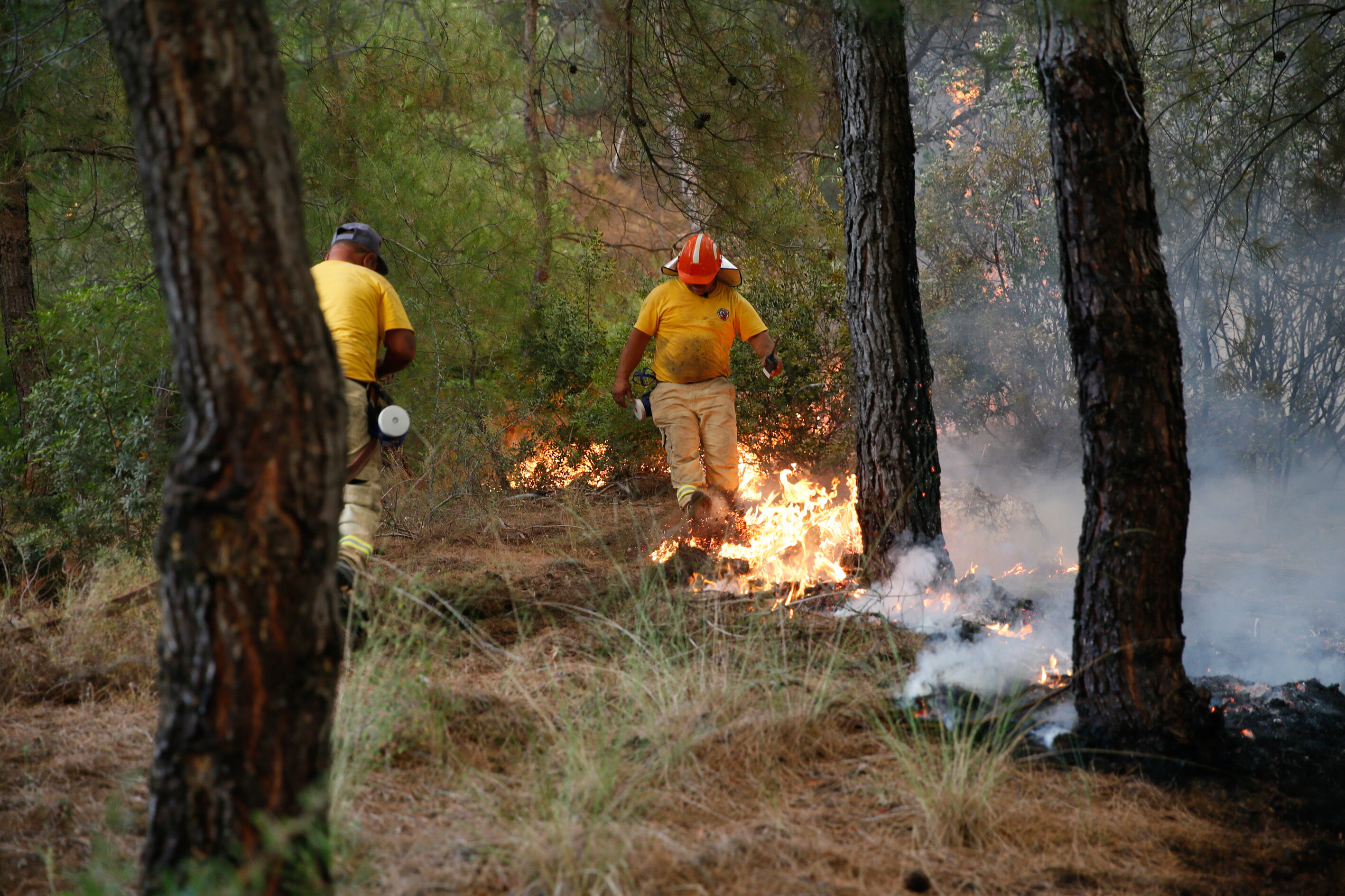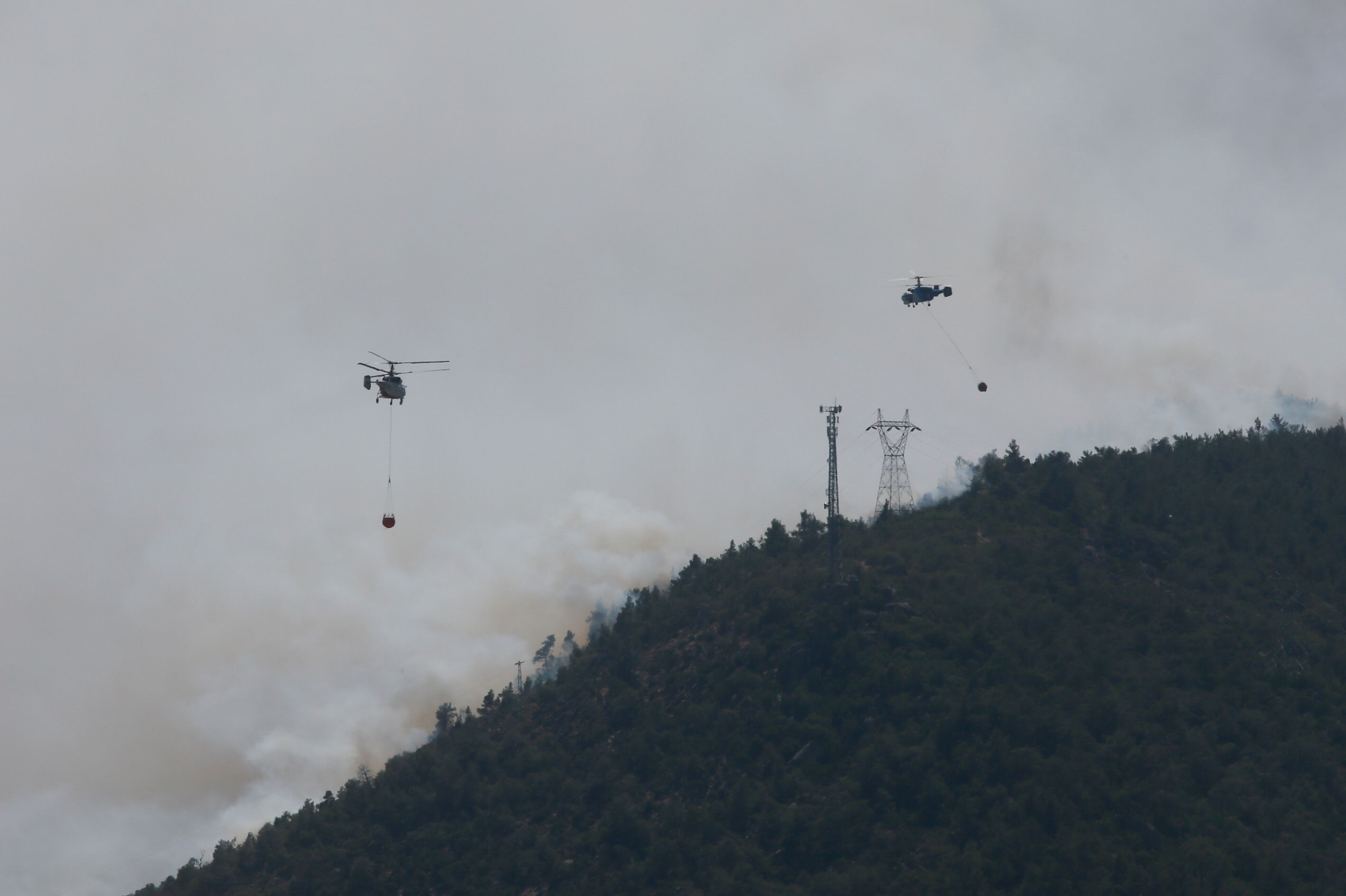 Alevlere 50 arazöz, 300 orman işçisi, 3 helikopter ve 2 uçak ile müdahale edilmeye başlandı. Yaklaşık 50 hektarlık bozuk orman ve ormanlık alanda etkili olduğu belirtilen yangını söndürme çalışmaları havadan ve karadan sürüyor.